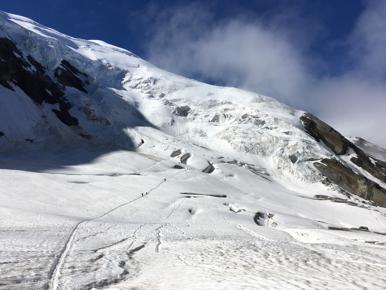 Information zur Wiederroute (Aufstieg zur Watzmann-Mittelspitze aus dem Watzmannkar): Es liegt auf dem ersten Band noch ein großes Schneefeld. Eventuell am linken Rand zu umgehen. Sonst braucht es möglicherweise Steigeisen. Auch weiter oben noch etwas Restschnee und auch beim Einstieg. Insgesamt dürfte es nochmals anspruchsvoller sein als auch schon. Eventuell besser noch einige Wochen warten, bis der Schnee ganz weg ist.