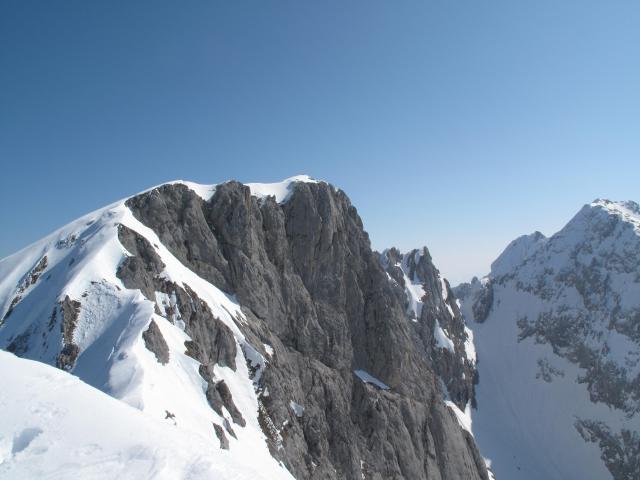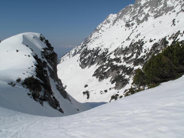 Gefahreneinschätzung: Gering, beim Abfahren auf kleine Gleitschneemäuler achten