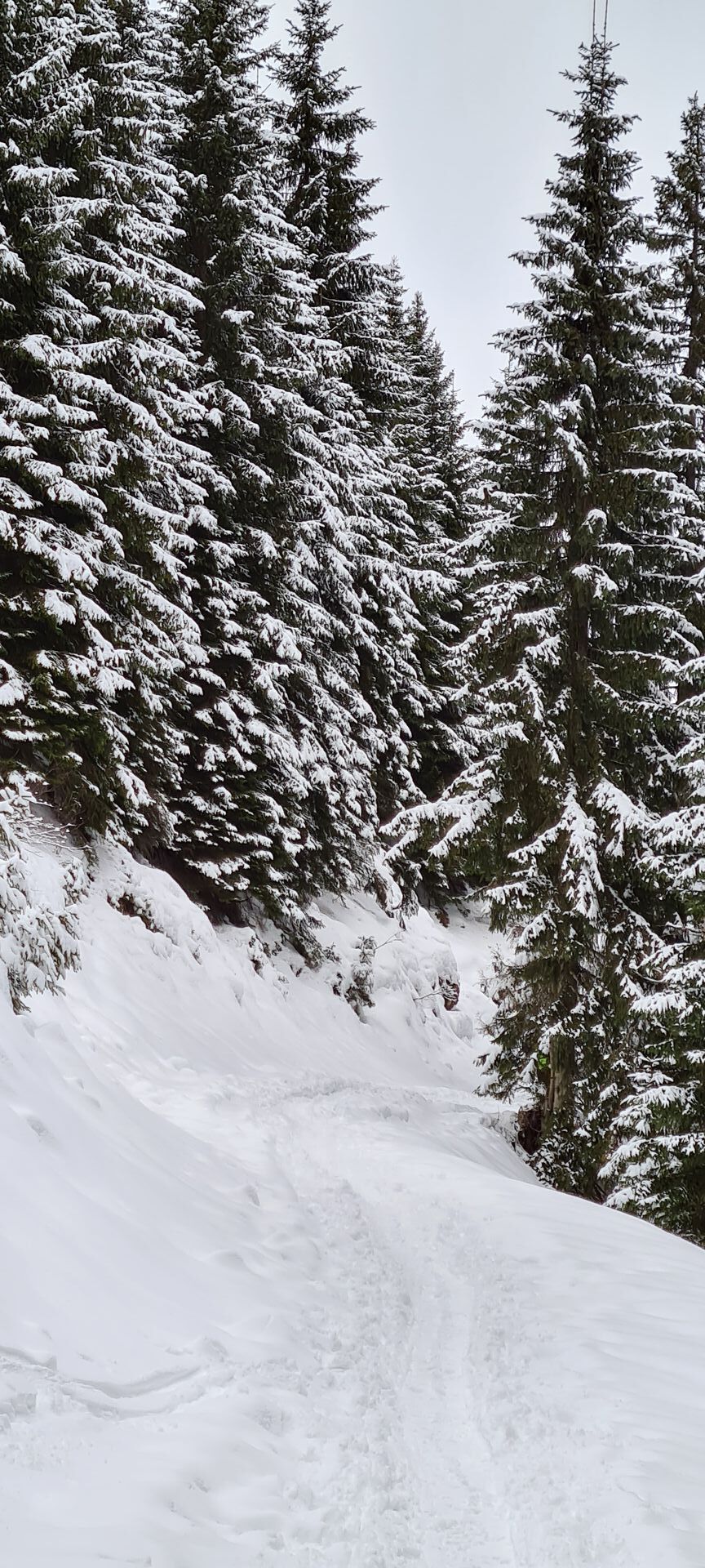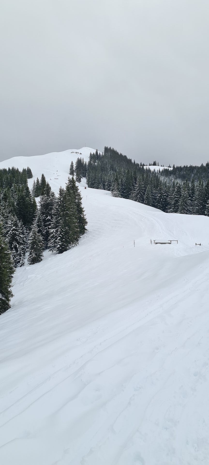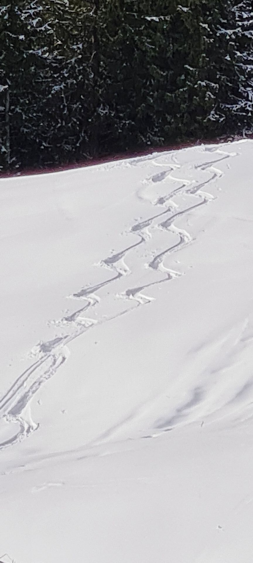 Grünseeroute: Durchwegs ausreichend Schnee für Aufstieg und Abfahrt. Runterfahren möchte ich aber dennoch nicht unbedingt, denn hier warten alle Schneearten aus dem Baumarkt: Beton, Glas, Styropor und an ganz wenigen Stellen auch ein wenig Bauschaum. Schon beim Aufstieg muss man (ohne Harscheisen) aufpassen, die etwas weicheren Zonen zu erwischen, denn stellenweise ist es sehr hart und glatt.