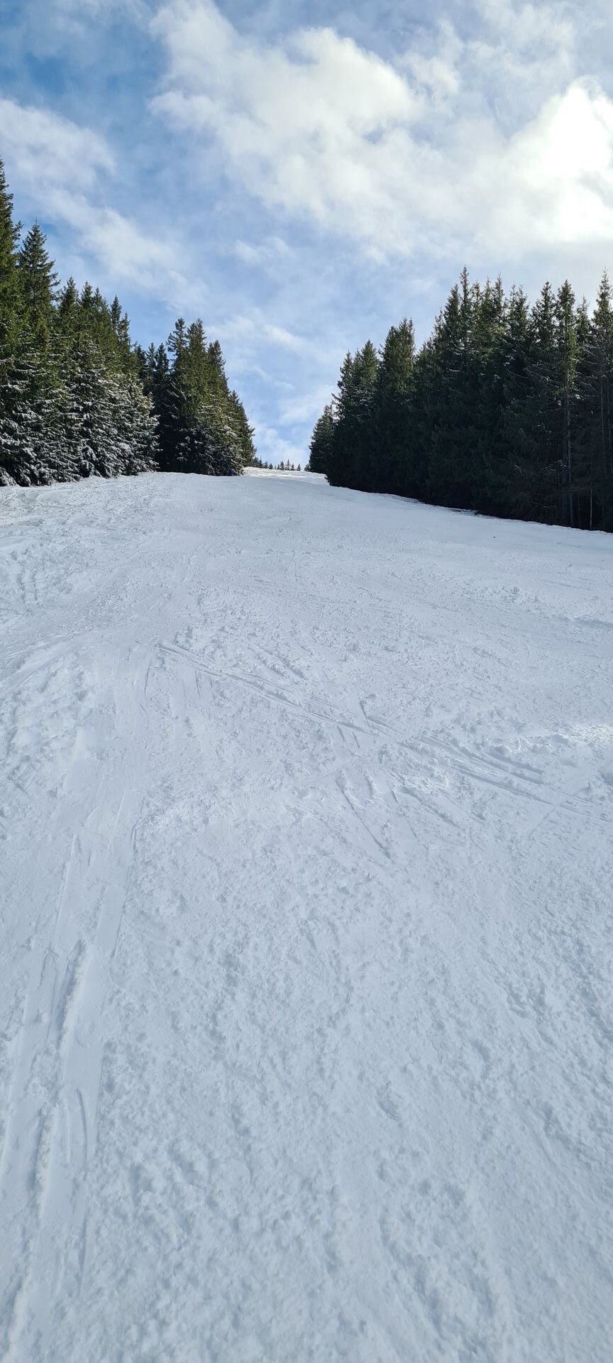 Die Abfahrt über die sonnenbeschienene Piste war dagegen sehr fein.