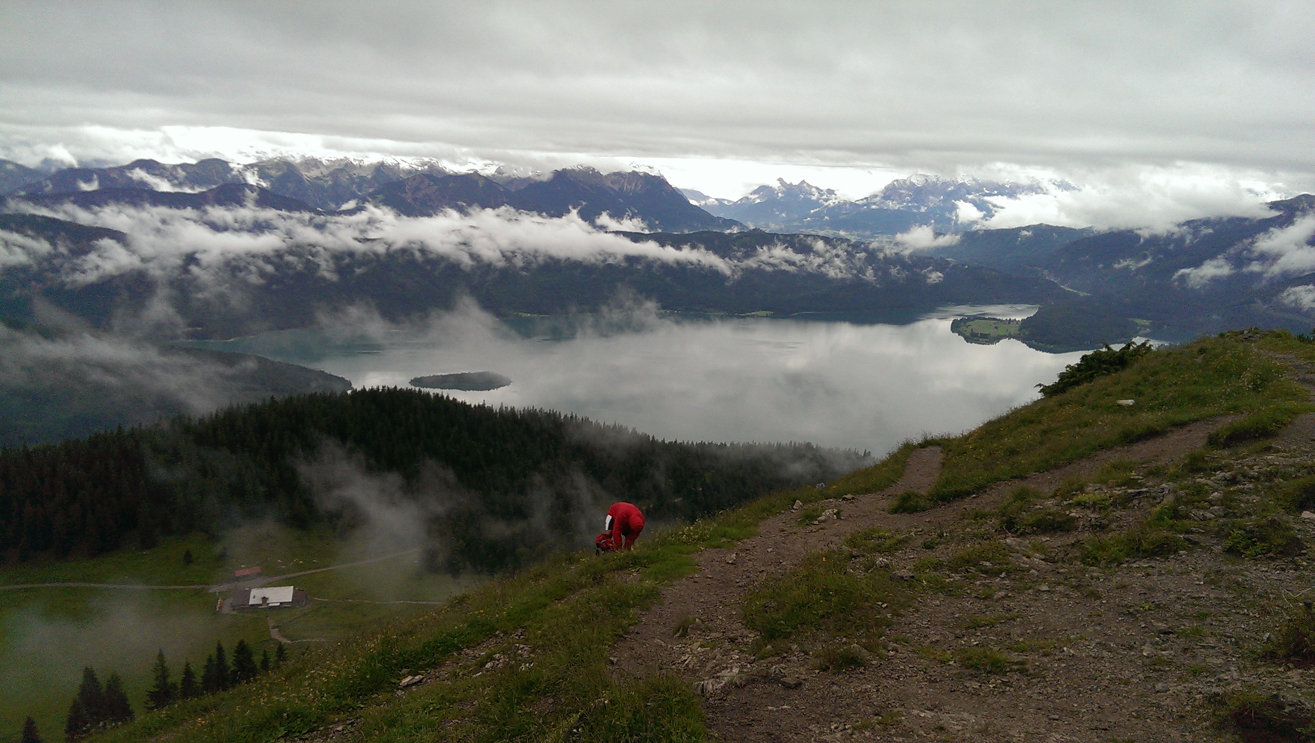 Wetter heute: Trotz nicht unfreundlichem Wettercharakter waren die höheren Gipfel heute Früh schon in dicken Wolken.
