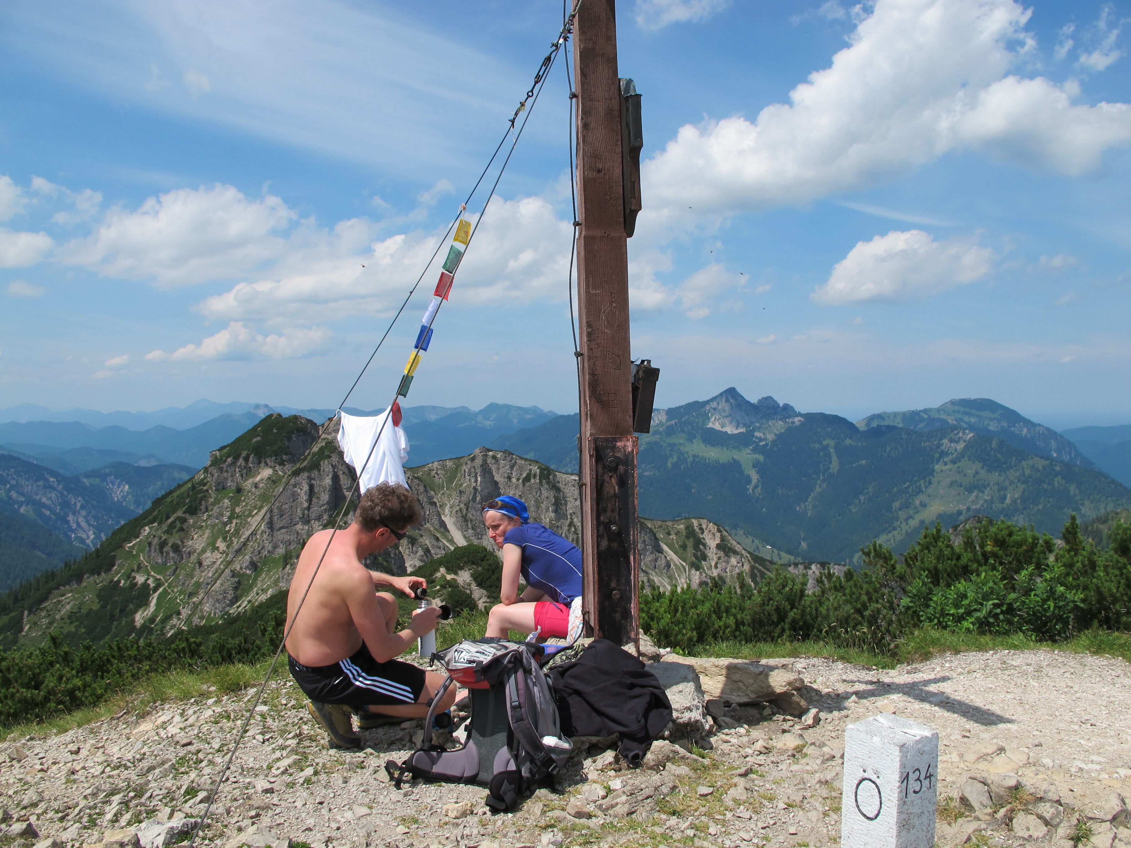 Tourenverhältnisse: Normalweg - Fast durchwegs sehr gut, nur einige Stellen vom nächstlichen Regen feucht, darunter jedoch auch die an sich schon glatte Schlüsselstelle (3+) durch den Kamin. Wetter in der Früh perfekt, am späten Vormittag bereits aufziehender Nebel und somit Eintrübung der höheren Gipfelregionen.