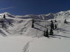 Tourenverhältnisse: Im Waldbereich feucht, aber nie batzing oder rutschig, oben trocken. Auch der weglose abstieg über die Gipfelwiese trocken und gut zu gehen. Tolles, angenehmes Wanderwetter!
