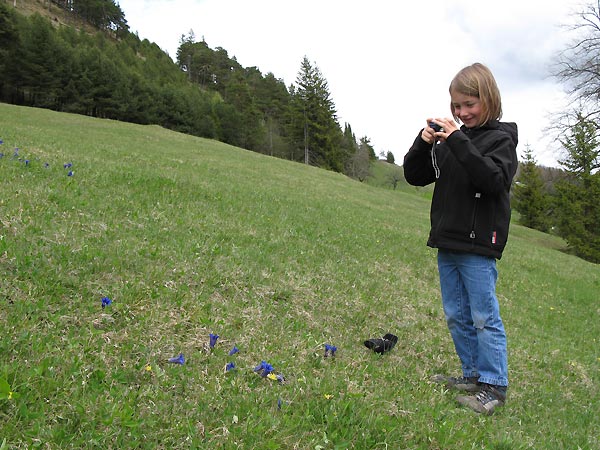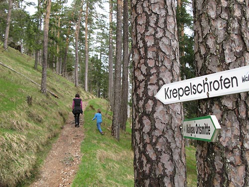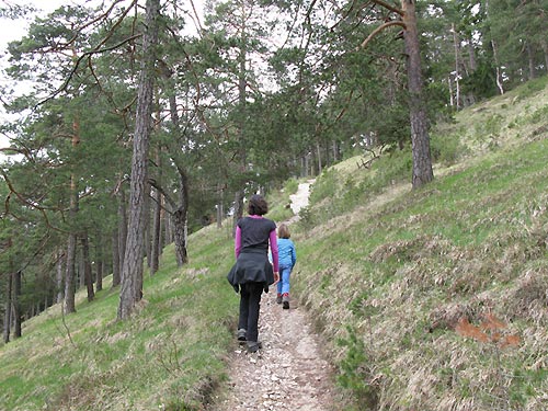 Tourenverhältnisse: Der Weg (Loipe) zum Eingang des Längentales ist schon großteils aper - auch in der steileren Stufe hinauf ins Längental liegt nur noch wenig Schnee, so dass es hier angenehmer ist die Ski über den bereits aperen Sommerweg (markierter Steig am rechten Rand) zu tragen (Bild 1). Ab der ersten Flachpassage (Bild 2) dann ausreichend Schnee und am Morgen zumindest oberflächlich gefroren und somit tragend (aber nicht durchgefroren, was sich in diesem Bereich bei der Abfahrt unangenehm bemerkbar macht!)