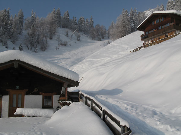 Tourenverhältnisse: In den höheren Lagen der Kitzbüheler Alpen hat es in den letzten Tagen insg. zwischen 40 und 50 cm Neuschnee gegeben. Unterhalb von 1400 m ist die Schneedecke immer noch recht dürftig, so dass unterhalb dieser Marke Fahrten durchs Gelände eher wenig Spaß machen. Die Forststraßen haben nun aber ausreichend Schnee - so kommt man oft ganz gut in die höheren Lagen hinauf und wieder hinunter. Auch über 1400 m ist es im Waldbereich oft noch knapp, jedoch das typische Kitzbüheler Almgelände bietet in diesen Höhenlagen jetzt ganz gute Verhältnisse. Wo es jedoch sehr viel Neuschnee (ca. 50 cm) hatte, war es mit dem Fahren gar nicht so einfach, trotz des lockeren Pulverschnees.