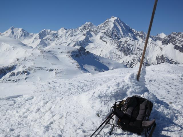 Gipfelhang hart; pistenmäßig eingefahren. Dann in leicht sulzigem Schnee weiter; gut zu fahren.