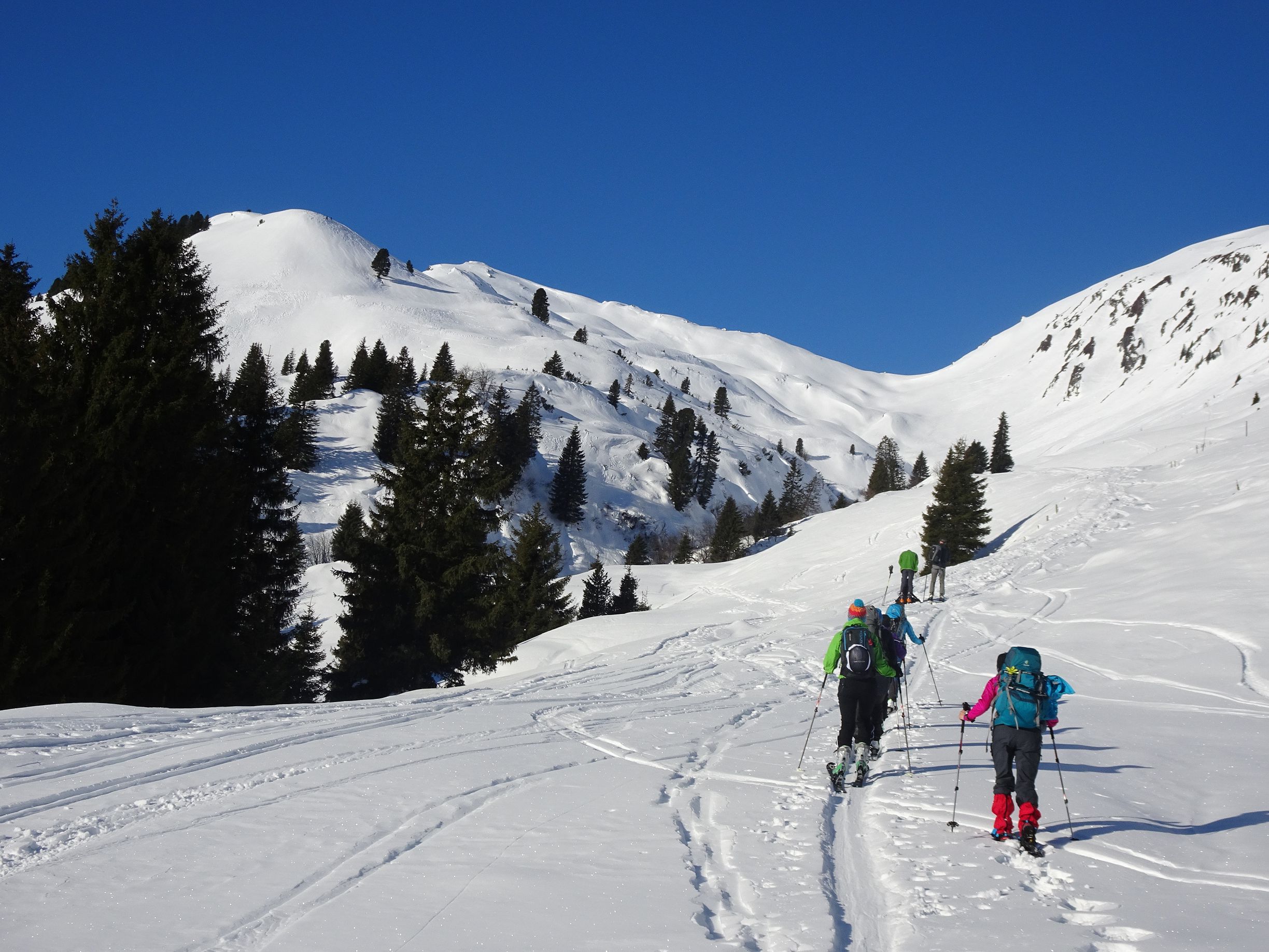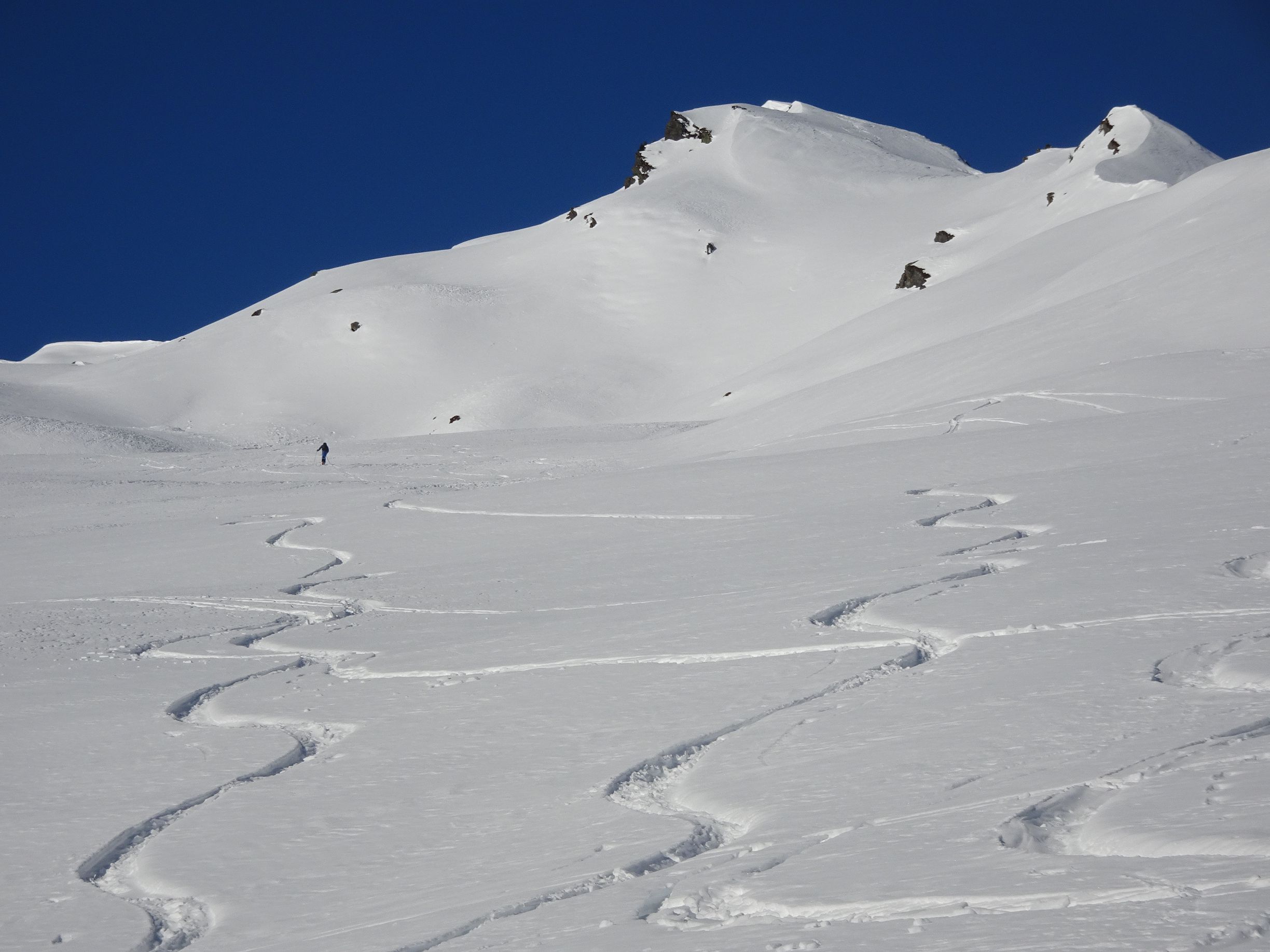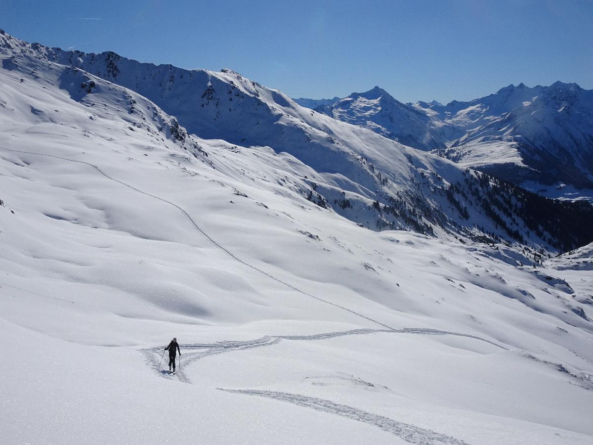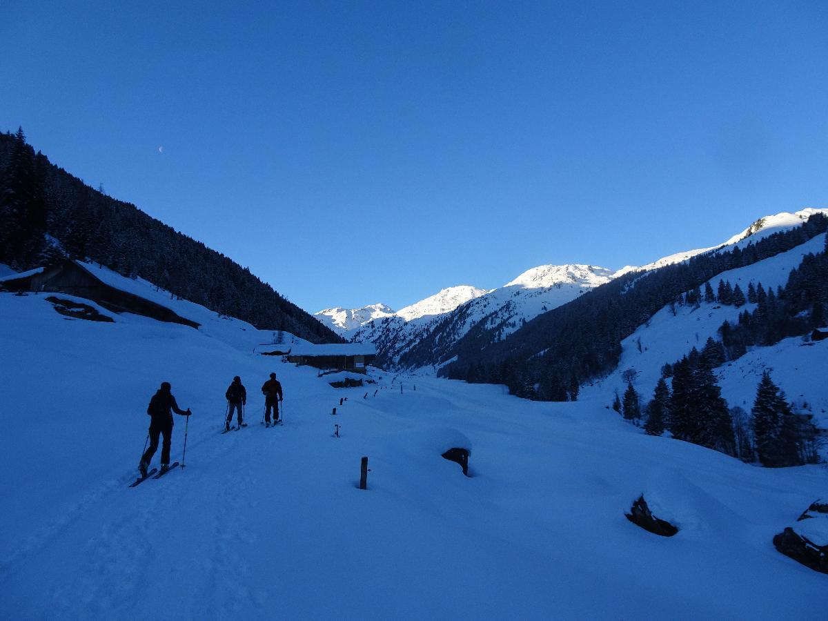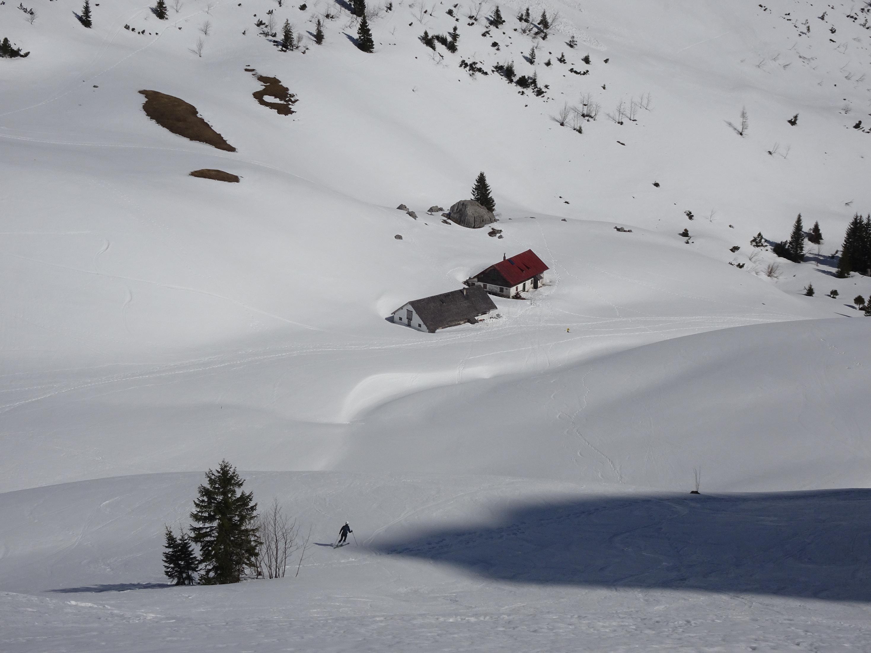 Auf der Jagahütt’n am Stümpfling hab ich zufällig eine Freundin getroffen, die ist die Suttenabfahrt mit Tourenski raufgegangen. Nach ihren Worten war das noch gut möglich.