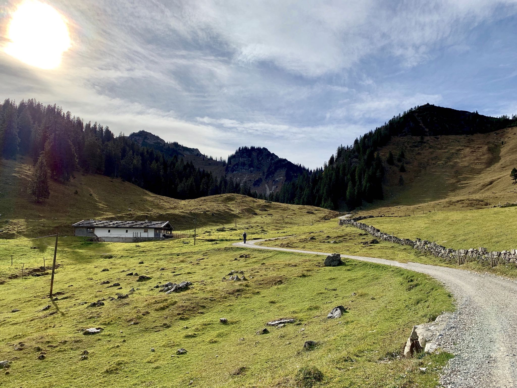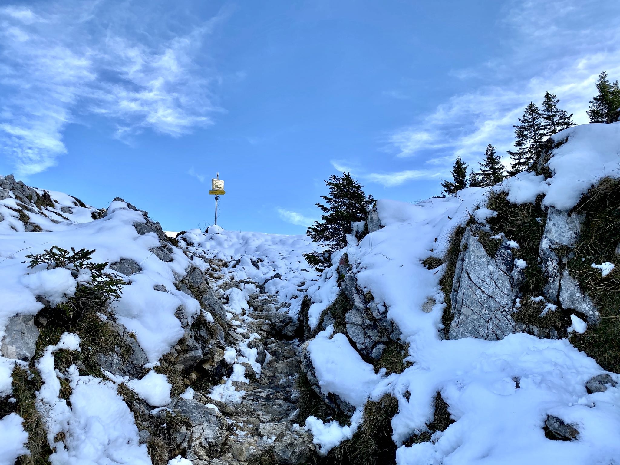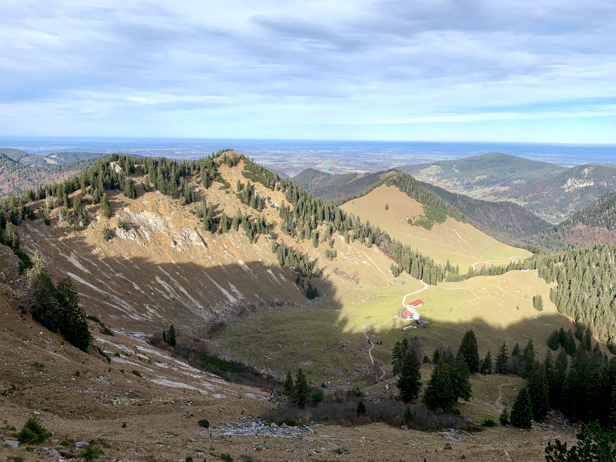 Sonstiges: Vom WP Hohenburg (725m) auf dem Sträßchen an Lasseln vorbei dem Wegweiser „Mariaeck“ folgend Richtung SO auf die Alpelwand zu. Südlich davon in einigen Kehren grob dem Alpelgraben Richtung O folgend zum aussichtsreich gelegenen Alpel (1206m) hinauf. Von dort Richtung SO zum Mariaeck, der Einsattelung zwischen Seekarkreuz im Norden und Schönberg im Süden. Westlich unterhalb davon Richtung SSW steil und teils eng zwischen einigen Felsen hindurch auf den kreuzlosen Schönberg (1621m) hinauf. Zurück wieder Richtung Mariaeck hinunter und, wo die Aufstiegsspur von NW heraufzieht, geradeaus Richtung NO auf das Mariaeck (1469m) und weiter auf der Zimmerleite Richtung NO zur Rauhalm (1400m) hinab. Die Richtung beibehaltend Richtung Brandkopf hinauf und unterhalb davon in weitem Linksbogen auf den NO-Rücken des Seekarkreuz und hinauf zum großen Gipfelkreuz (1601m). Runter Richtung N in den lichten Wald hinein und rechts haltend in den großen 35° Hang. An der Seekarstrasse (Forstweg) über den Sulzbach hinweg etwas nach NO und dann westlich des Stickelbergs durch die Lichtung Richtung WNW, nach einer weiteren Forststrasse immer Richtung WNW durch den Wald, bis wir unten in der Nähe des Sommerwegs den Forstweg treffen, der zum PP zurück führt.