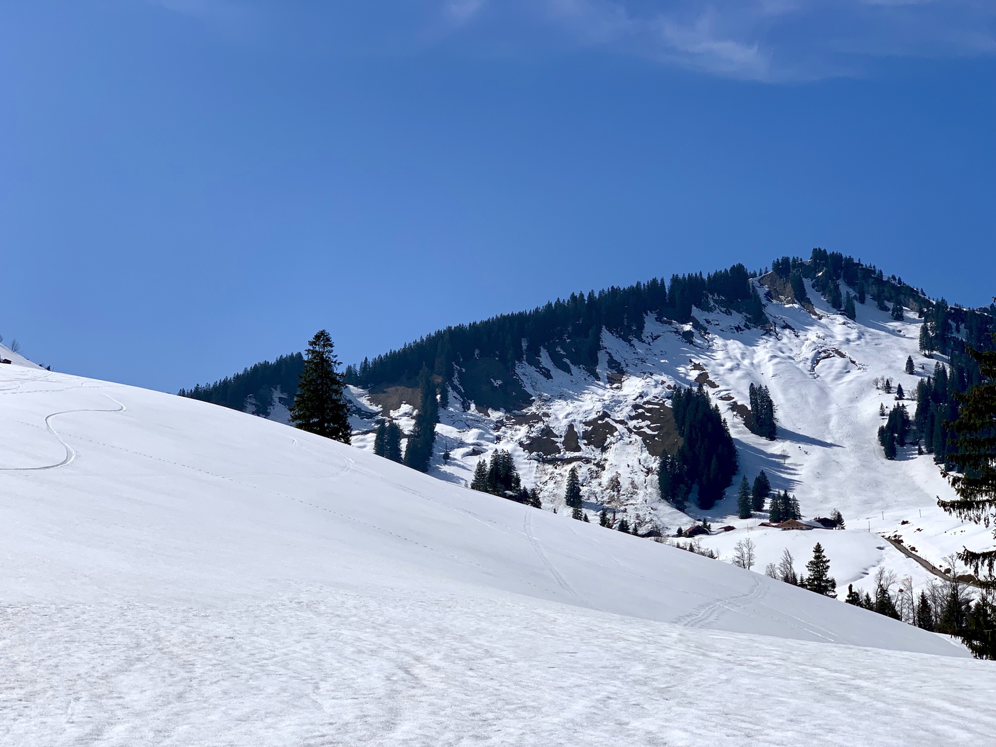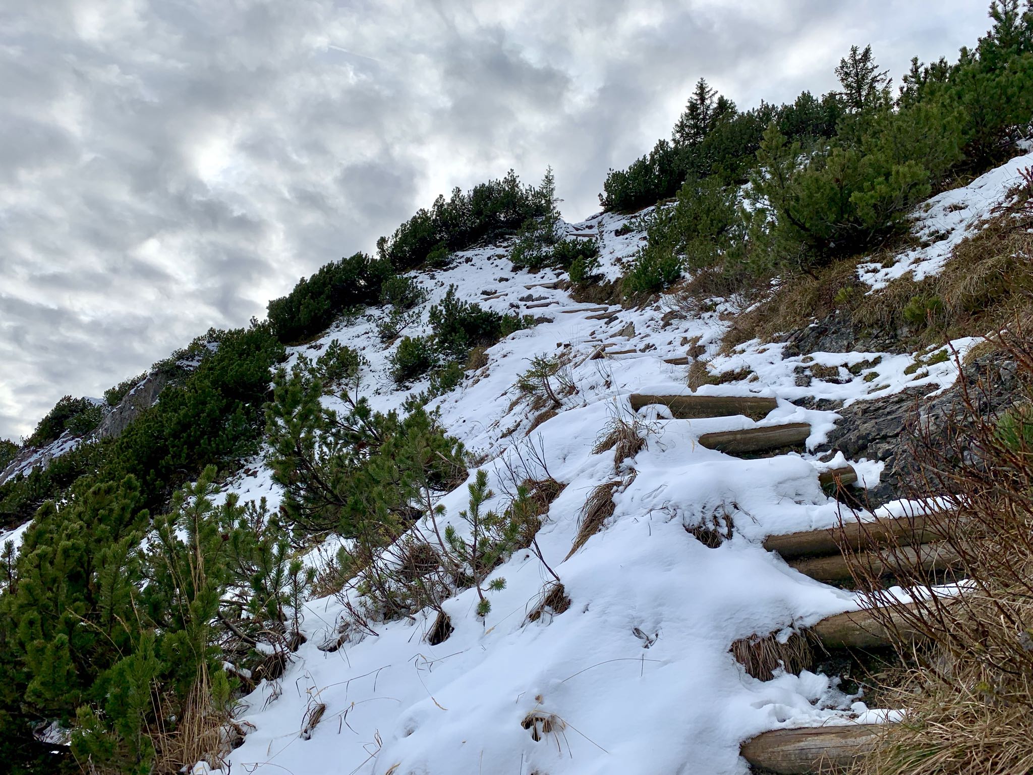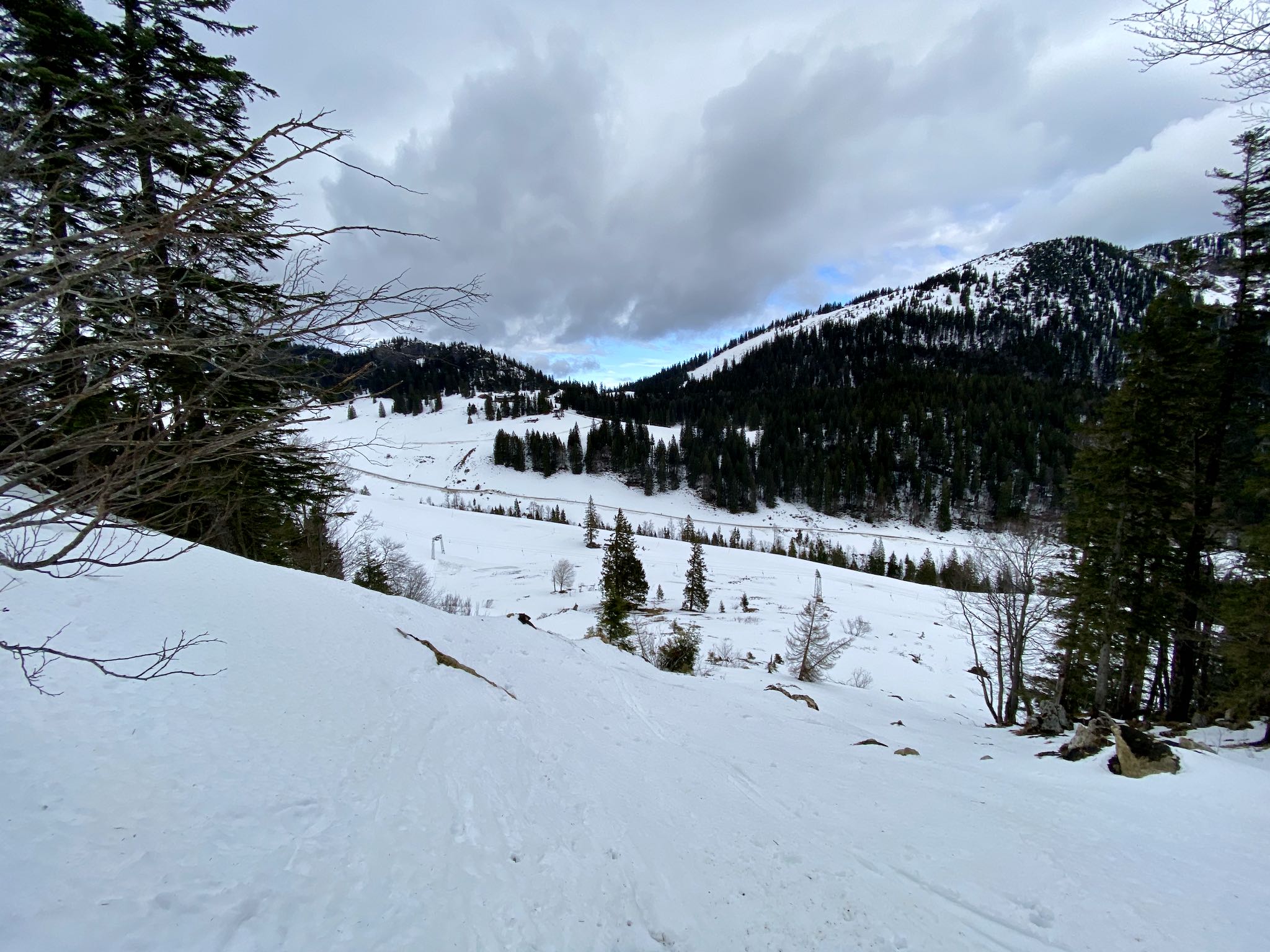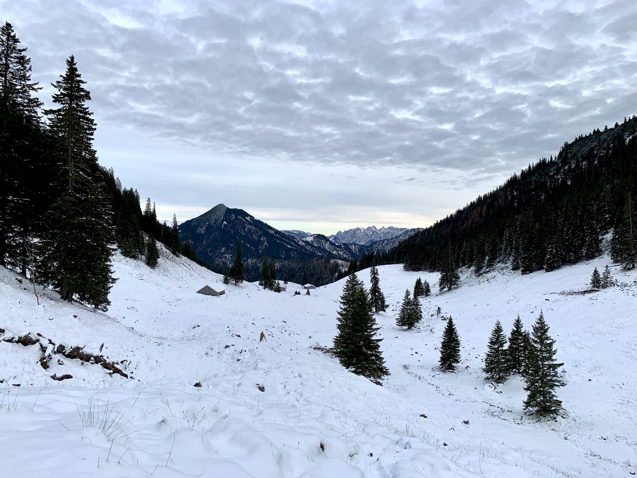 Tourenverhältnisse: -11°C, Strasse bis Lasseln geräumt, im Aufstieg zum Mariaeck unter den Bäumen harschig, Alpel pistenmäßig eingefahren, Schönberg zerfahren, östl. Mariaeck feiner Pulver fast spurlos, runter zur Rauhalm mit sporadischem Deckel, N-Hang vom Seekarkreuz unterhalb der Waldgrenze noch sehr gut zu fahren (oberhalb verblasen), unterhalb der Seekarstrasse dann schon schwerer Schnee