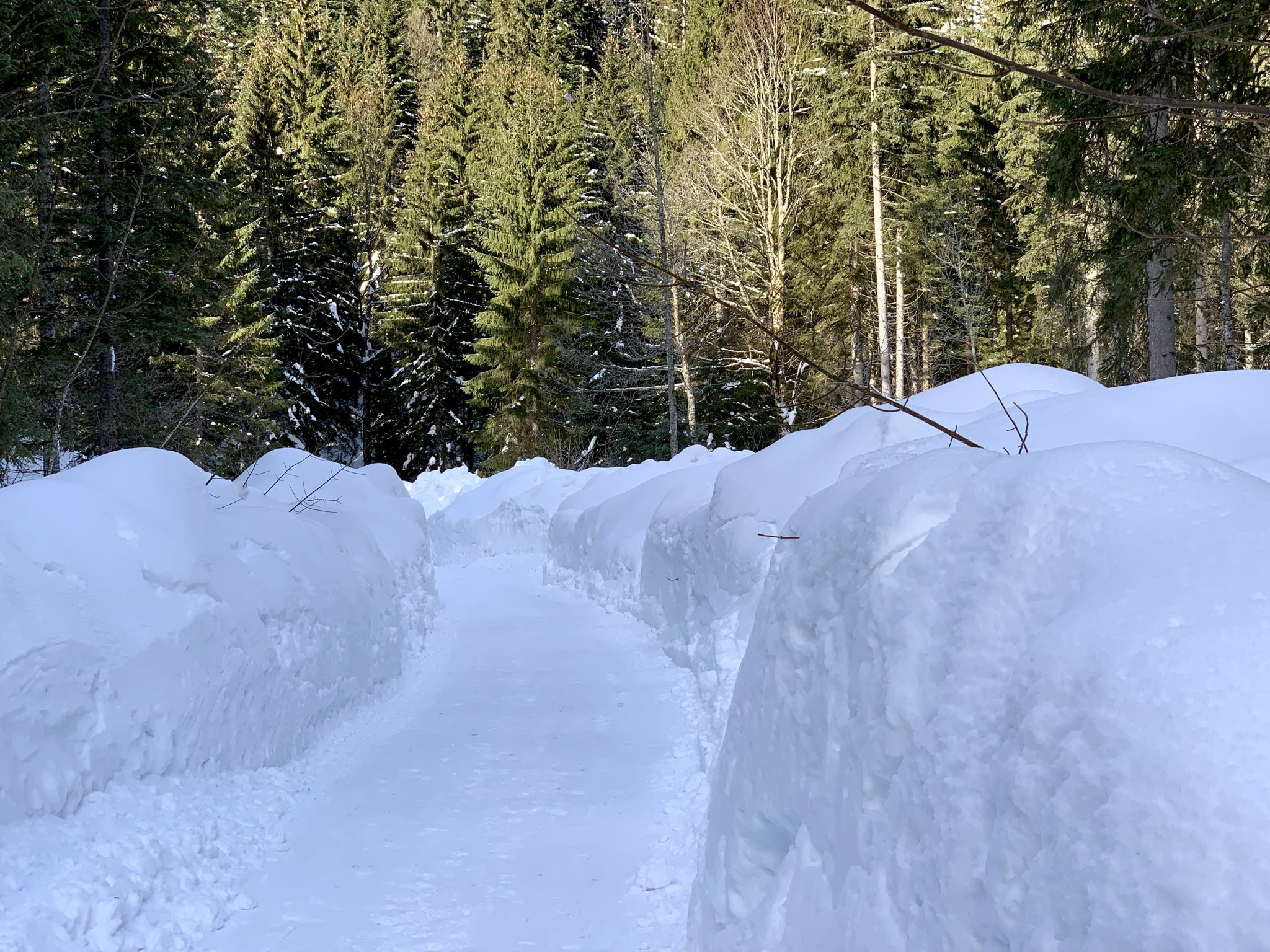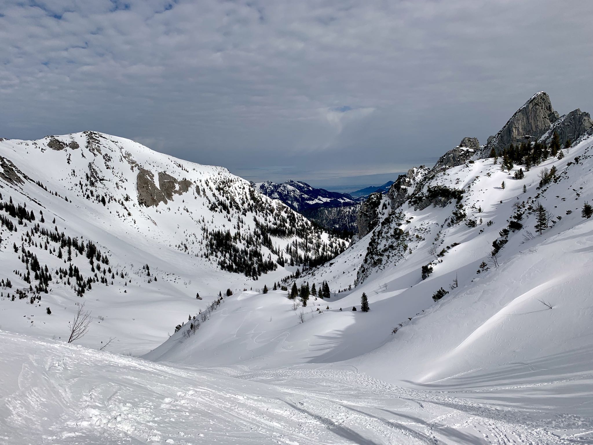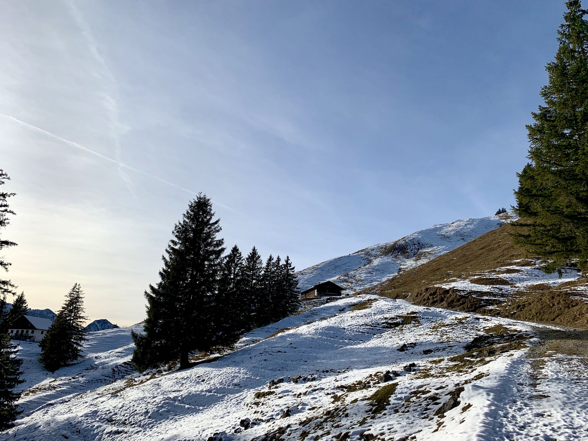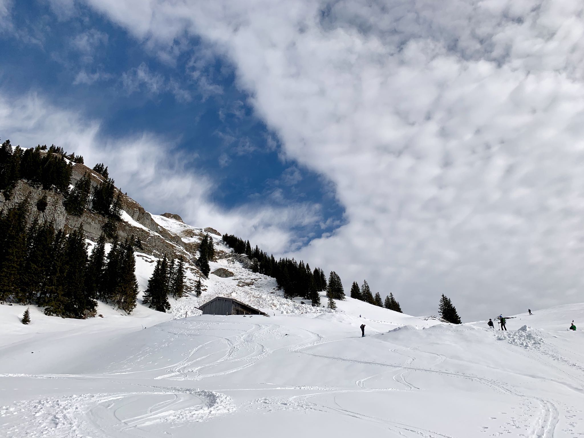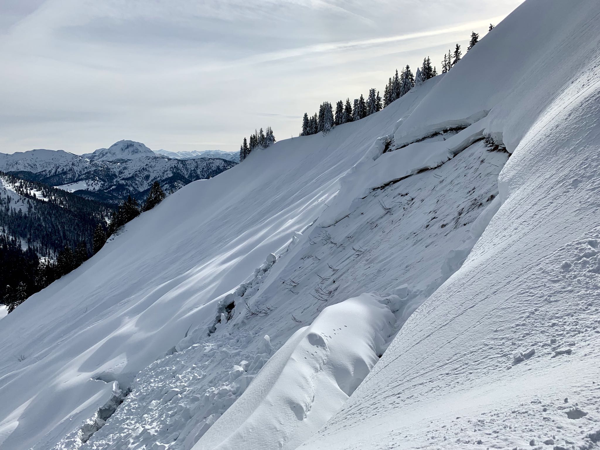 Tourenverhältnisse: -11°C, Strasse bis Lasseln geräumt, im Aufstieg zum Mariaeck unter den Bäumen harschig, Alpel pistenmäßig eingefahren, Schönberg zerfahren, östl. Mariaeck feiner Pulver fast spurlos, runter zur Rauhalm mit sporadischem Deckel, N-Hang vom Seekarkreuz unterhalb der Waldgrenze noch sehr gut zu fahren (oberhalb verblasen), unterhalb der Seekarstrasse dann schon schwerer Schnee
