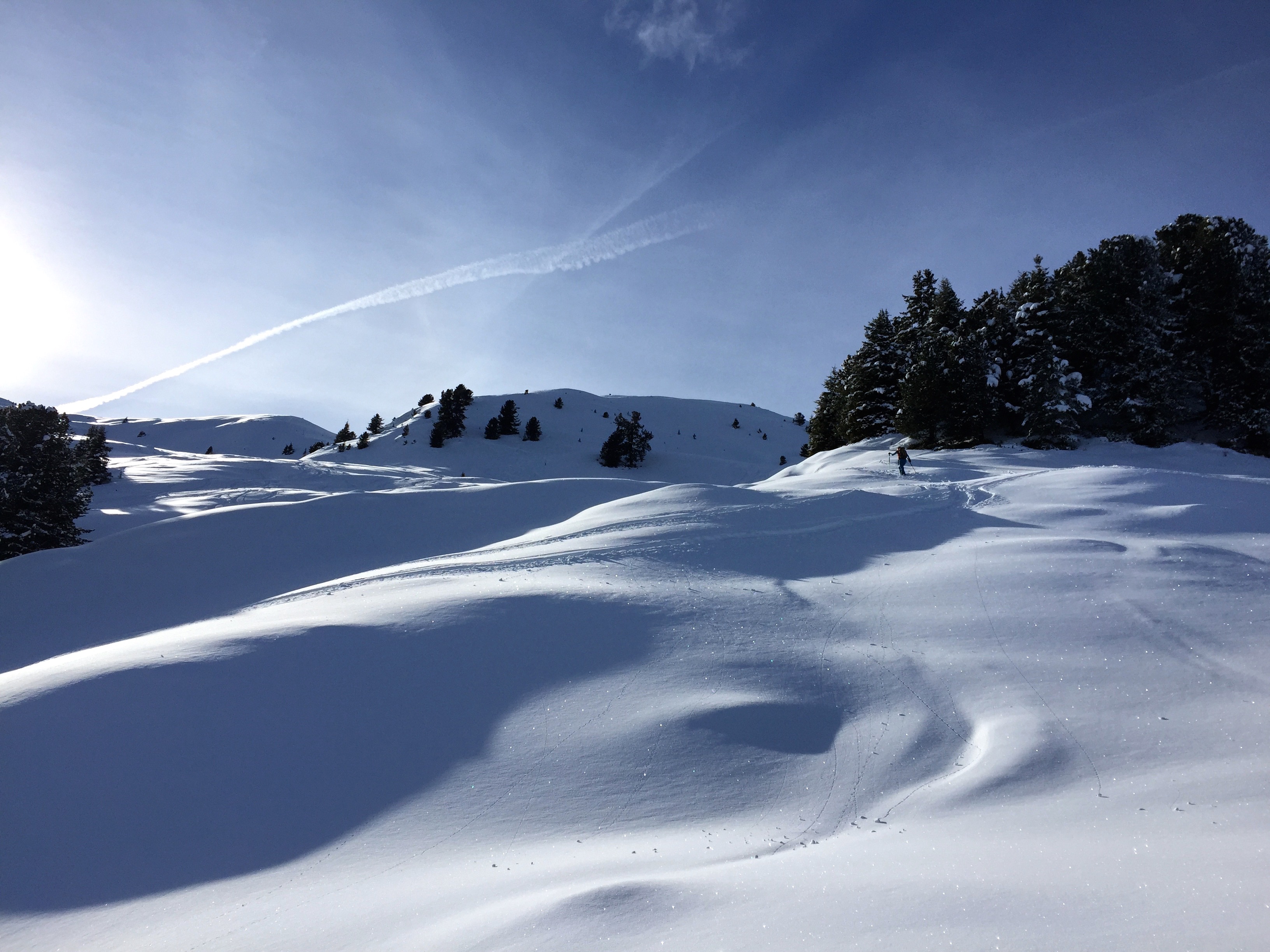 Tourenverhältnisse: In windgeschützten Bereichen pulvrig, sonst windgepresst oder abgeblasen
