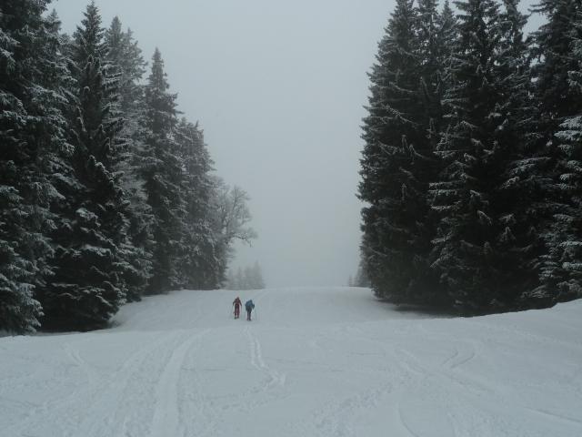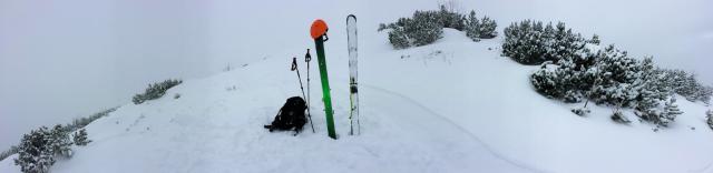 Sonstiges: Vom PP Hotel Tyrol (1010m) neben bzw. über die blaue 8b zur Bergstation der Grubig II Bahn (1320m). Dort rechts auf der roten Piste zur Wolfratshauser Hütte (1751m) und weiter zur Bergstation der Skihüttebahn (1920m). Von dort durch die Latschen etwas steiler in einigen Kehren zur Grubighütte (2050m). Weiter über den Osthang mit Ski zum Gipfel (2175m). Niemand oben… Runter wieder ohne Steinkontakt