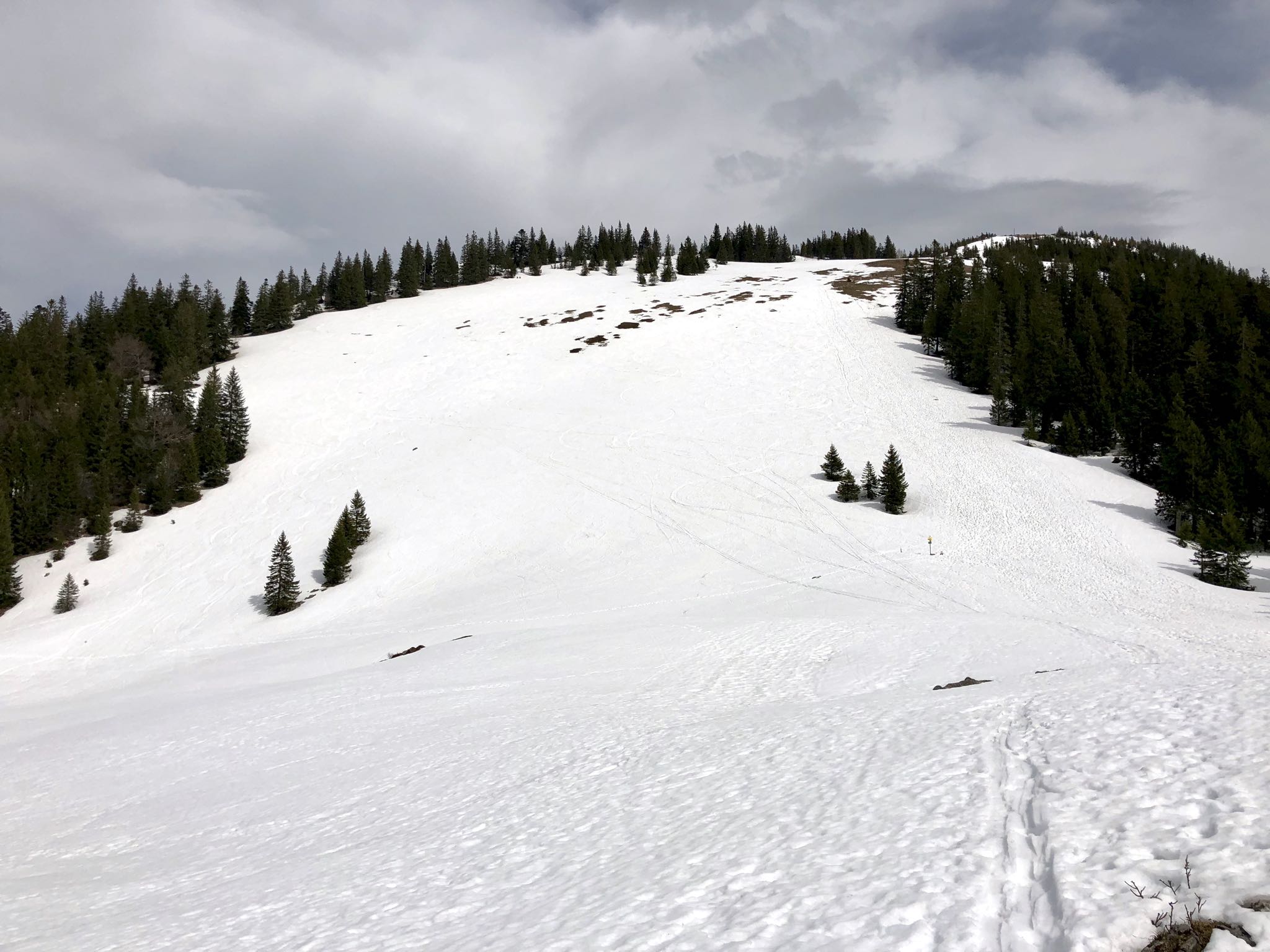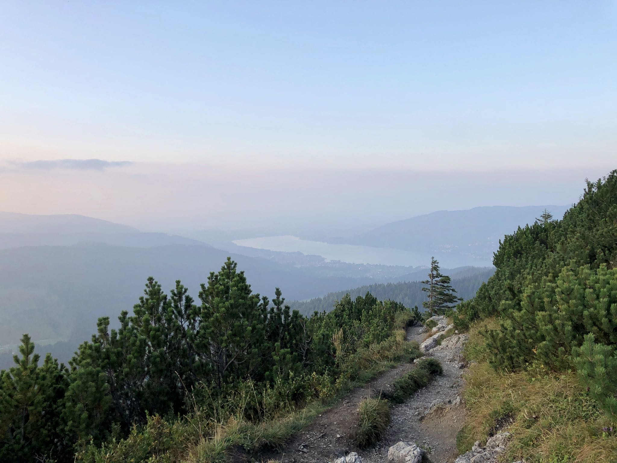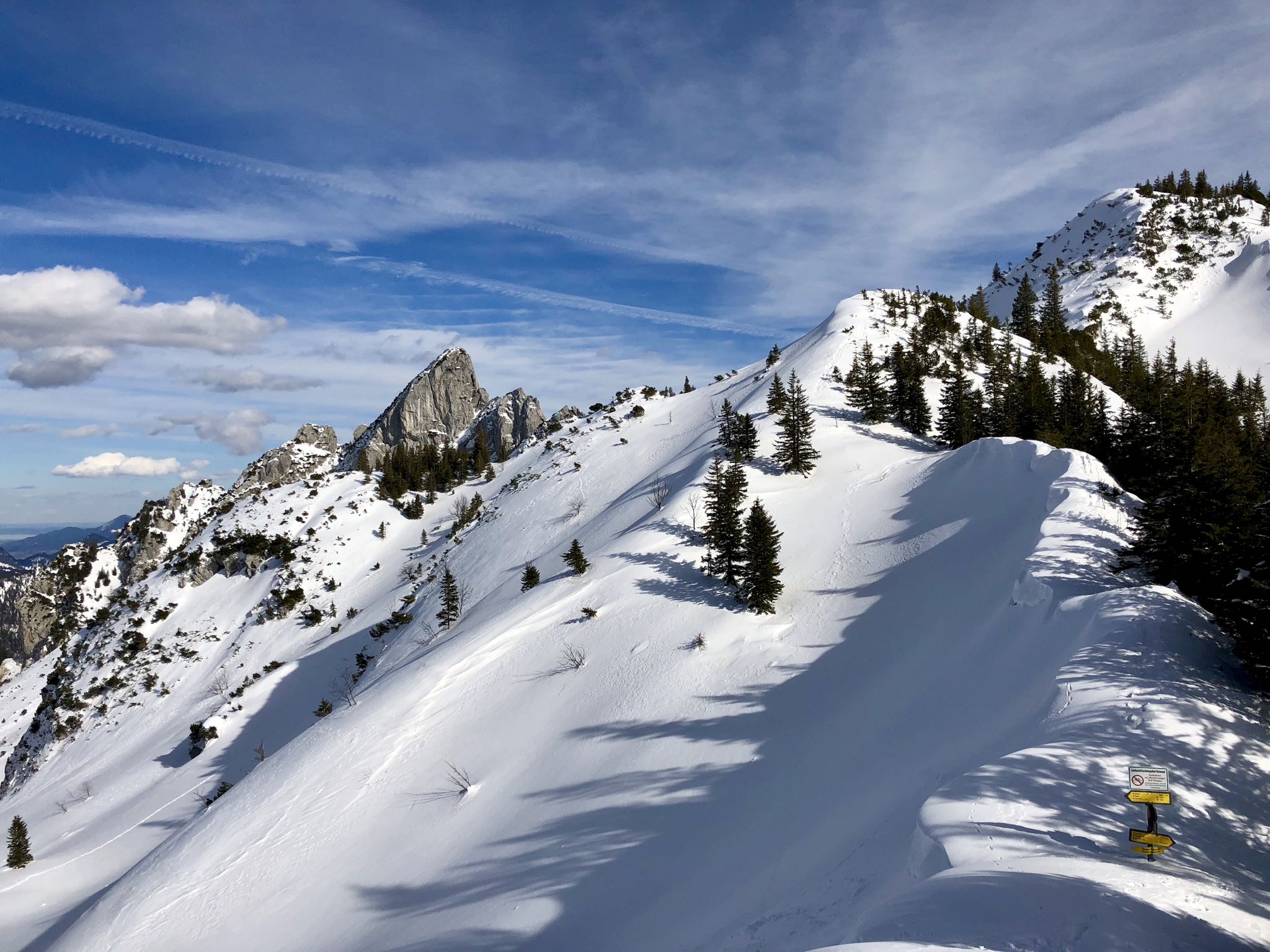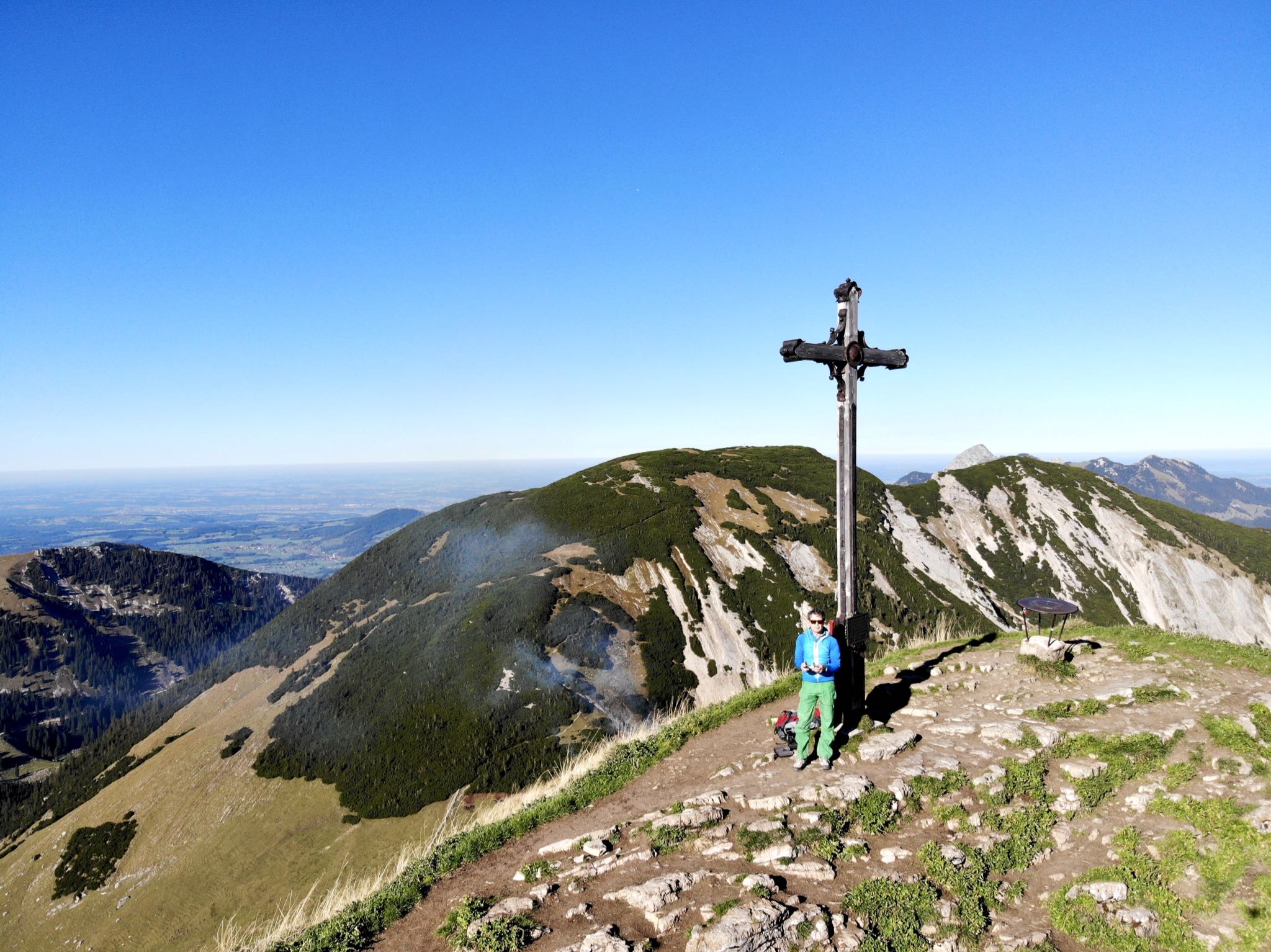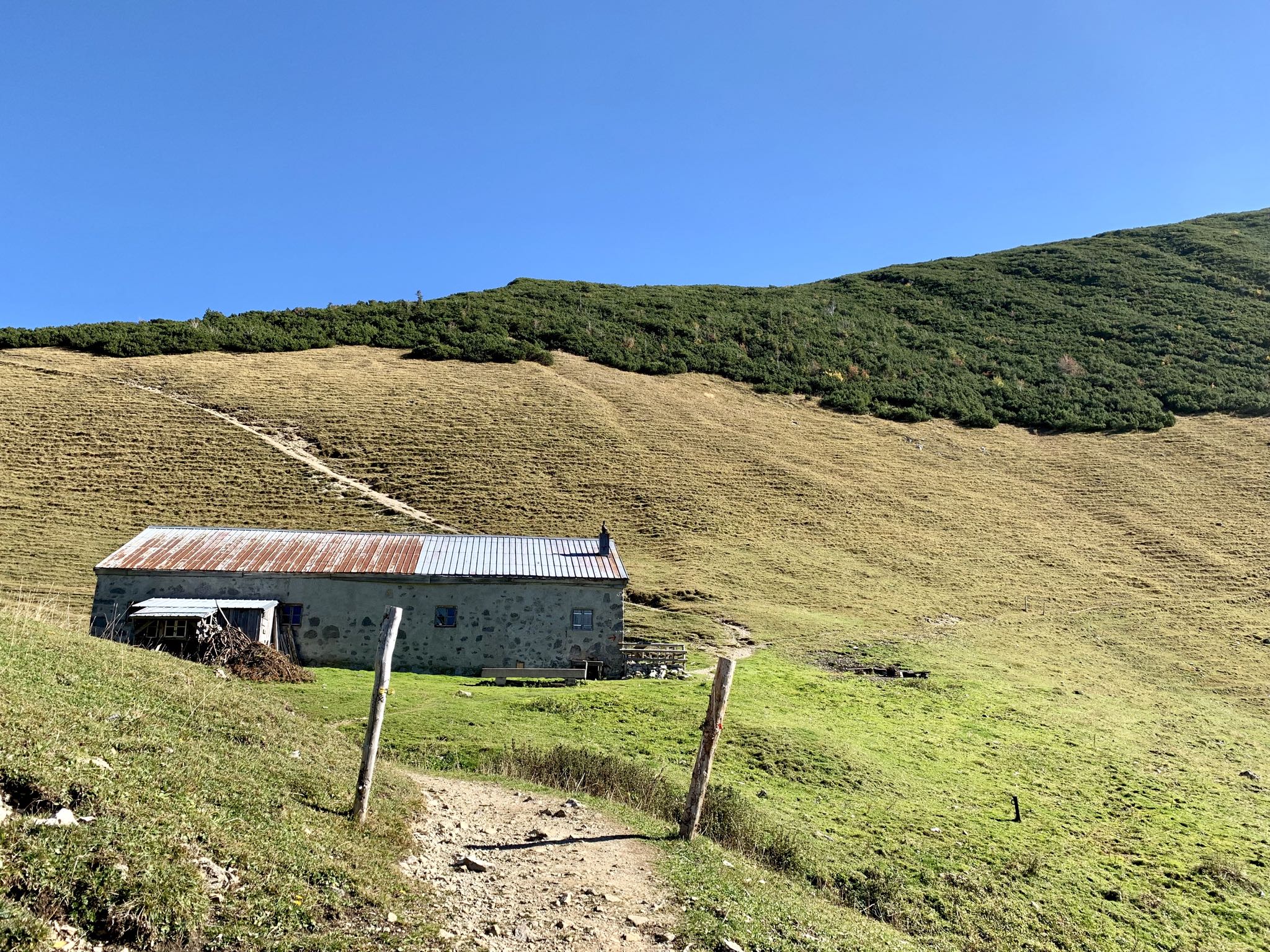 Sonstiges: Vom PP (5 €) am Spitzingsattel (1130m) beim Omnibuswendeplatz auf die Wiese und auf dem Pfad stets in Richtung NNO in den Wald hinein. Der Pfad verliert sich bald zu einer schmalen Pfadspur, aber nach 1km in immer derselben Richtung quert auf 1100m der 642er. Auf diesem felsigen Wanderweg geht es zügig, aber nicht zu steil durch etliche Kehren Richtung OSO, zuletzt Richtung SSW hinauf in den Kessel unterhalb des Jägerkamp. Dort links zur Jägerbauernalm (1540m) und diese links liegen lassend Richtung NO sausteil zum Nordgrat hinauf und diesem folgend durch die Latschen zum hölzernen Gipfelkreuz des Jägerkamp (1745m) hinauf. Von dort Richtung SO unterm Benzigspitz leicht abschüssig querend zum Wegekreuz und ab hier auf dem 643er Richtung SW zur Oberen Schönfeldalm (1450m) und weiter zur Unteren Schönfeldalm mit der Schönfeldhütte (1410m) hinab. An dieser rechts vorbei und in einem weiten Rechtsbogen zuletzt Richtung NW zum 644er hinab (1300m). Auf diesem in den Wald hinein und über Stock und ganz viel Stein bergab. An der Wiese oberhalb des Sattels darf die Konzentration nachlassen, in wenigen Minuten ist der Ausgangspunkt erreicht.