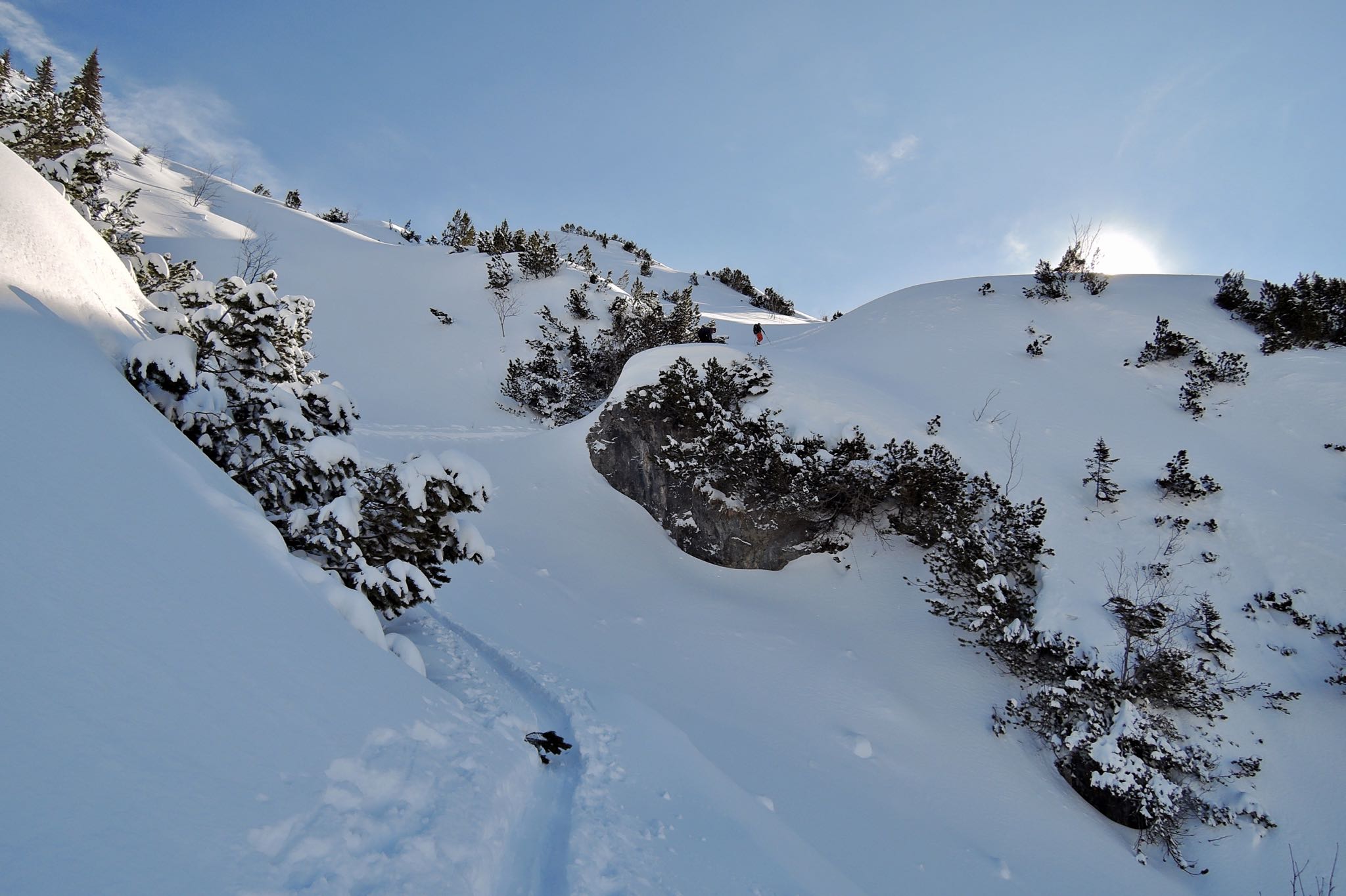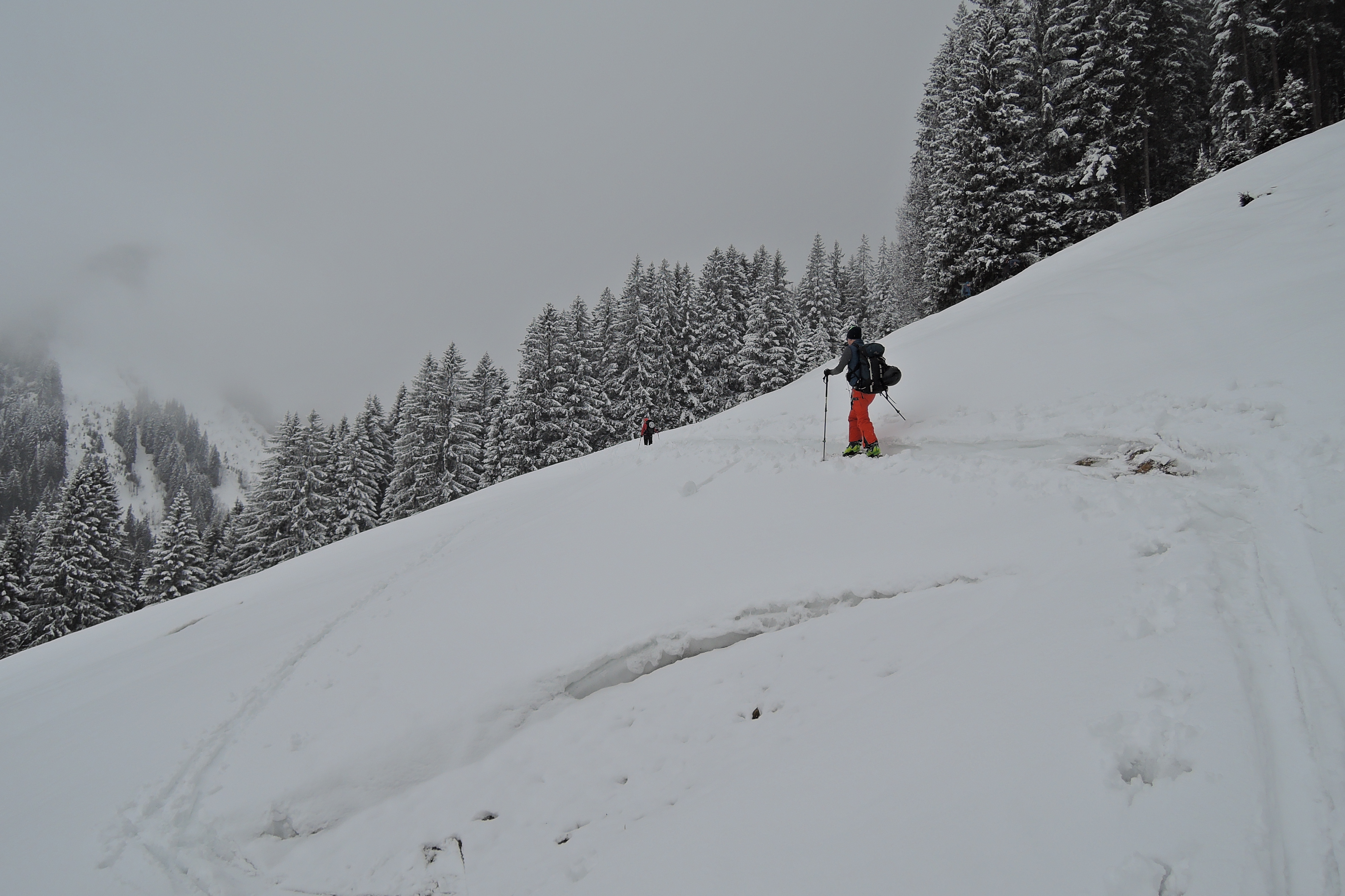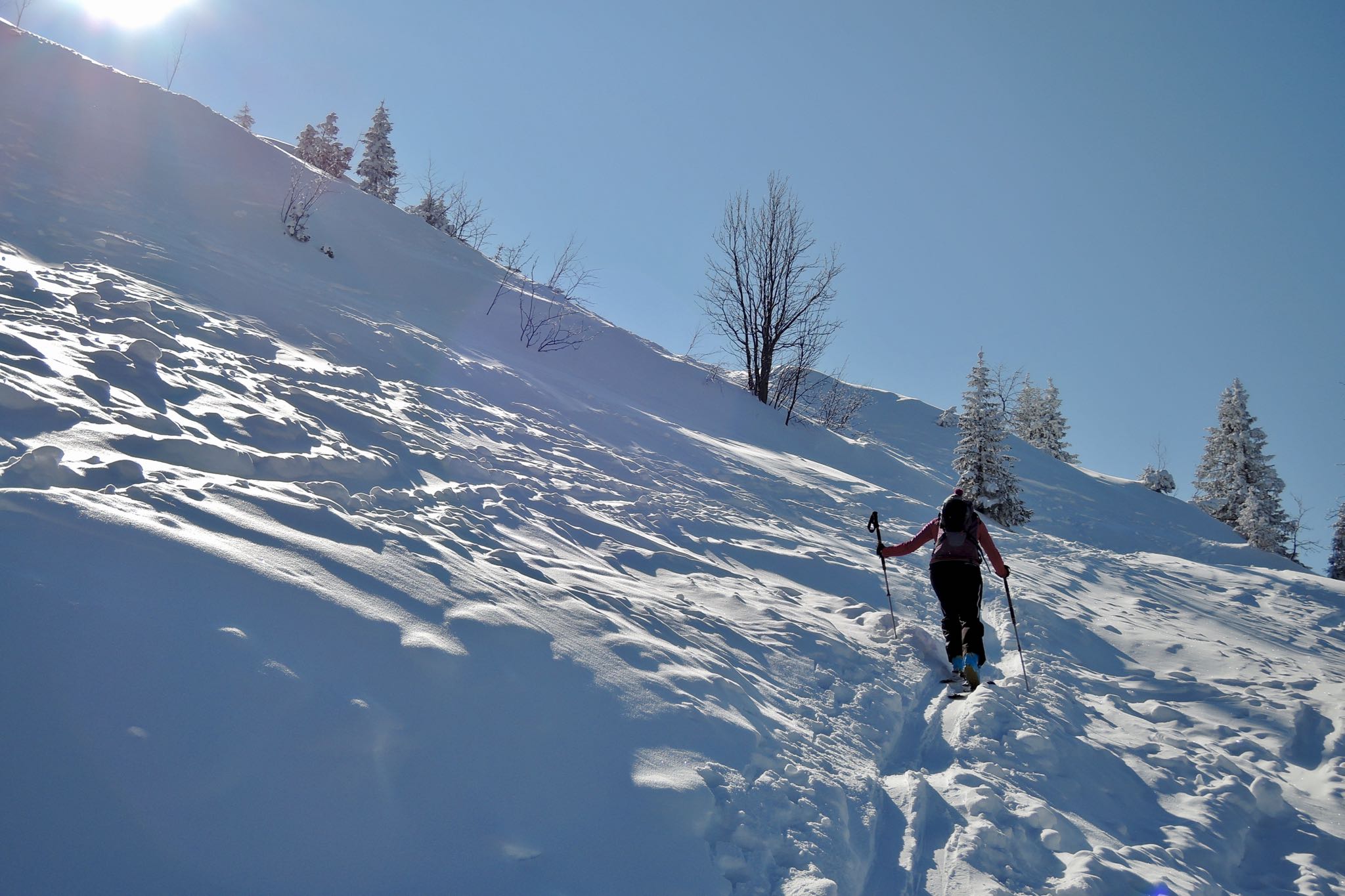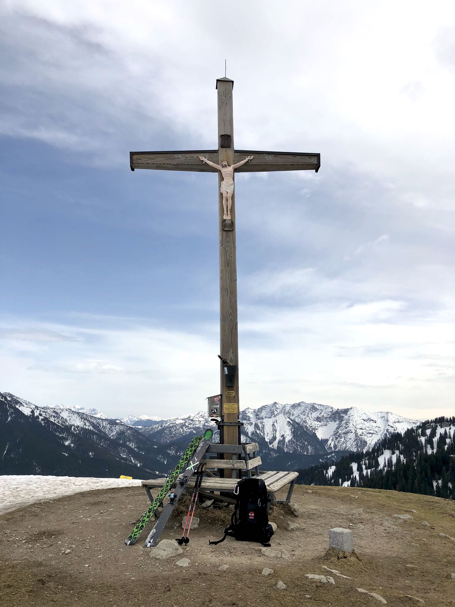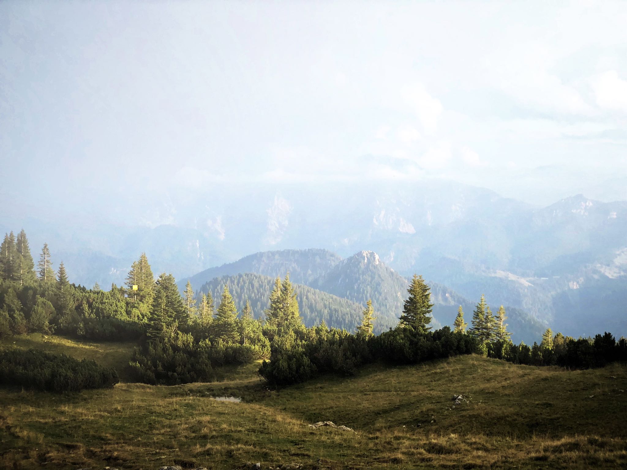 Sonstiges: Vom PP (5 €) am Spitzingsattel (1130m) beim Omnibuswendeplatz auf die Wiese und auf dem Pfad stets in Richtung NNO in den Wald hinein. Der Pfad verliert sich bald zu einer schmalen Pfadspur, aber nach 1km in immer derselben Richtung quert auf 1100m der 642er. Auf diesem felsigen Wanderweg geht es zügig, aber nicht zu steil durch etliche Kehren Richtung OSO, zuletzt Richtung SSW hinauf in den Kessel unterhalb des Jägerkamp. Dort links zur Jägerbauernalm (1540m) und diese links liegen lassend Richtung NO sausteil zum Nordgrat hinauf und diesem folgend durch die Latschen zum hölzernen Gipfelkreuz des Jägerkamp (1745m) hinauf. Von dort Richtung SO unterm Benzigspitz leicht abschüssig querend zum Wegekreuz und ab hier auf dem 643er Richtung SW zur Oberen Schönfeldalm (1450m) und weiter zur Unteren Schönfeldalm mit der Schönfeldhütte (1410m) hinab. An dieser rechts vorbei und in einem weiten Rechtsbogen zuletzt Richtung NW zum 644er hinab (1300m). Auf diesem in den Wald hinein und über Stock und ganz viel Stein bergab. An der Wiese oberhalb des Sattels darf die Konzentration nachlassen, in wenigen Minuten ist der Ausgangspunkt erreicht.