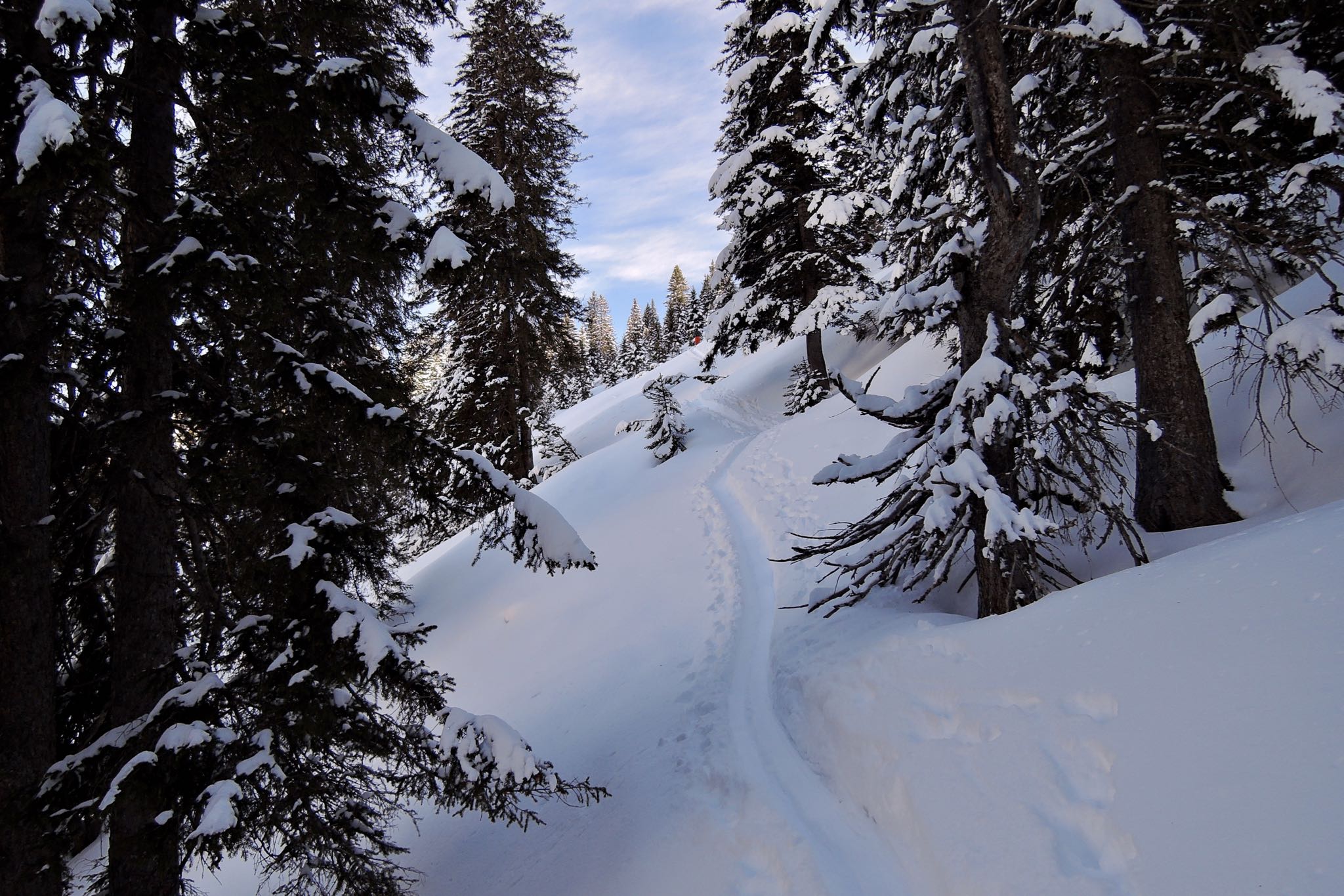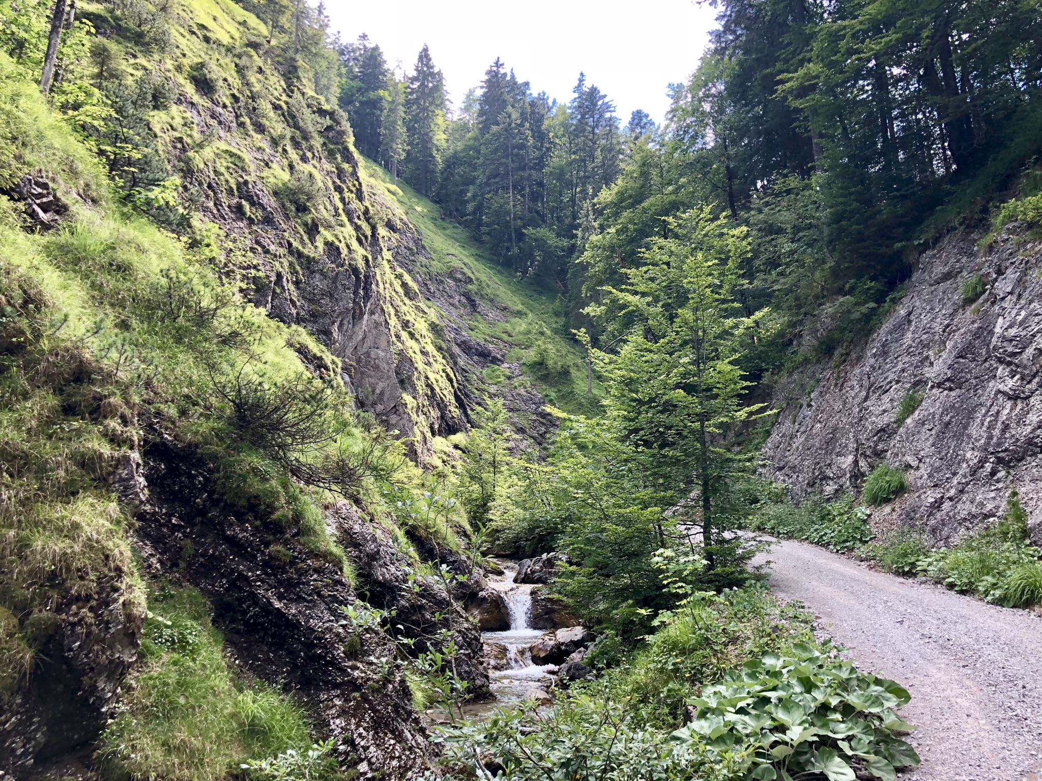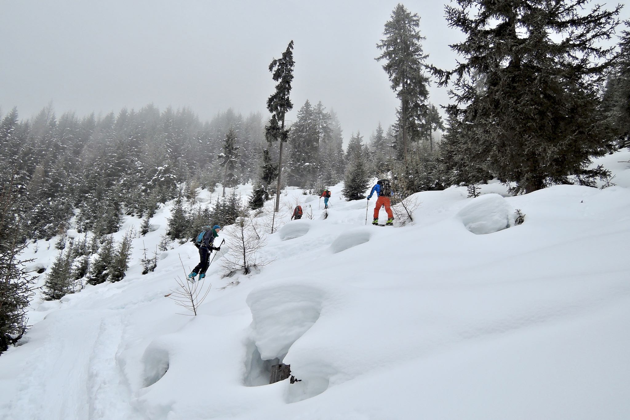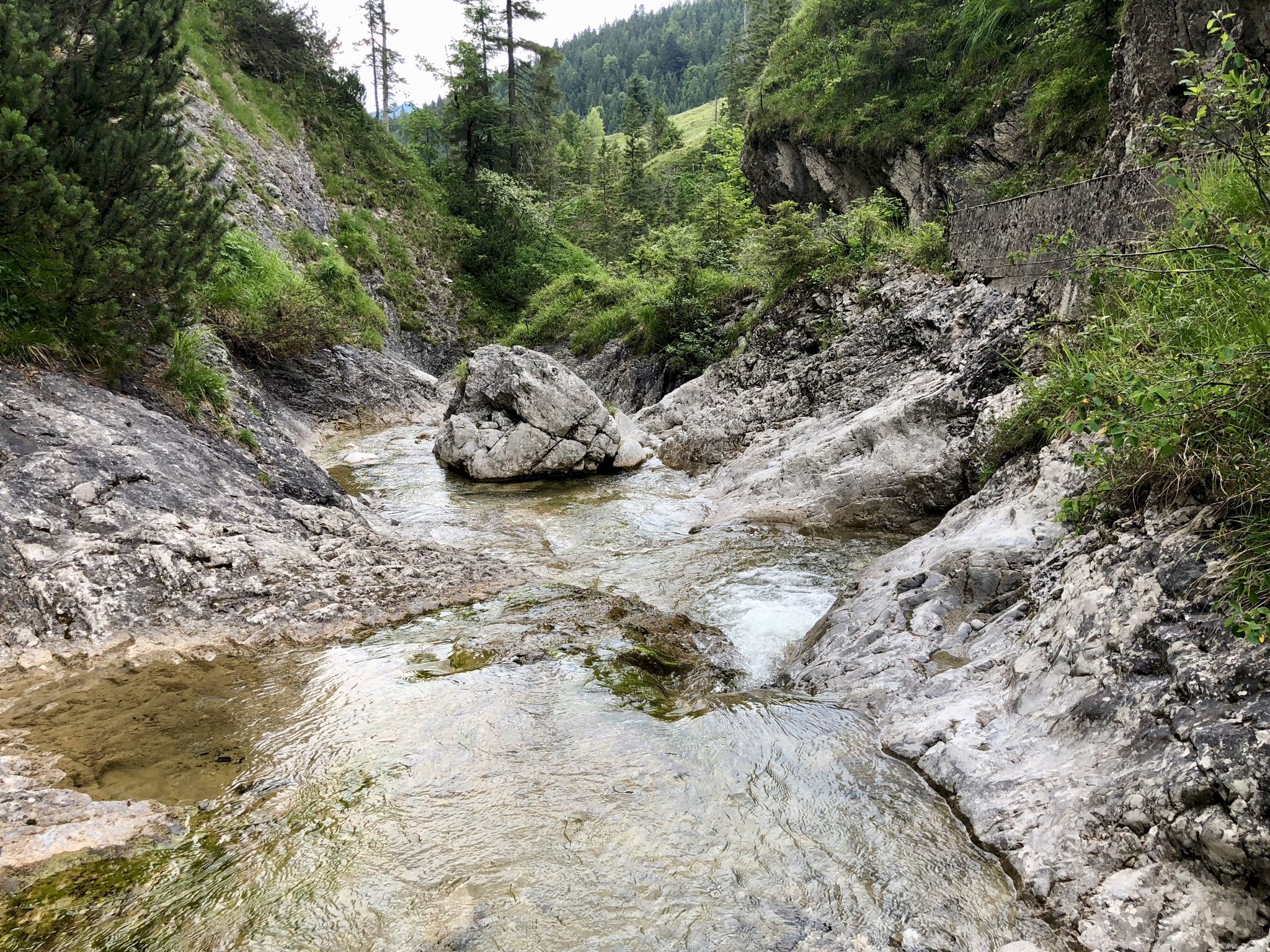 Sonstiges: Vom PP (5 €) am Spitzingsattel (1130m) beim Omnibuswendeplatz auf die Wiese und auf dem Pfad stets in Richtung NNO in den Wald hinein. Der Pfad verliert sich bald zu einer schmalen Pfadspur, aber nach 1km in immer derselben Richtung quert auf 1100m der 642er. Auf diesem felsigen Wanderweg geht es zügig, aber nicht zu steil durch etliche Kehren Richtung OSO, zuletzt Richtung SSW hinauf in den Kessel unterhalb des Jägerkamp. Dort links zur Jägerbauernalm (1540m) und diese links liegen lassend Richtung NO sausteil zum Nordgrat hinauf und diesem folgend durch die Latschen zum hölzernen Gipfelkreuz des Jägerkamp (1745m) hinauf. Von dort Richtung SO unterm Benzigspitz leicht abschüssig querend zum Wegekreuz und ab hier auf dem 643er Richtung SW zur Oberen Schönfeldalm (1450m) und weiter zur Unteren Schönfeldalm mit der Schönfeldhütte (1410m) hinab. An dieser rechts vorbei und in einem weiten Rechtsbogen zuletzt Richtung NW zum 644er hinab (1300m). Auf diesem in den Wald hinein und über Stock und ganz viel Stein bergab. An der Wiese oberhalb des Sattels darf die Konzentration nachlassen, in wenigen Minuten ist der Ausgangspunkt erreicht.