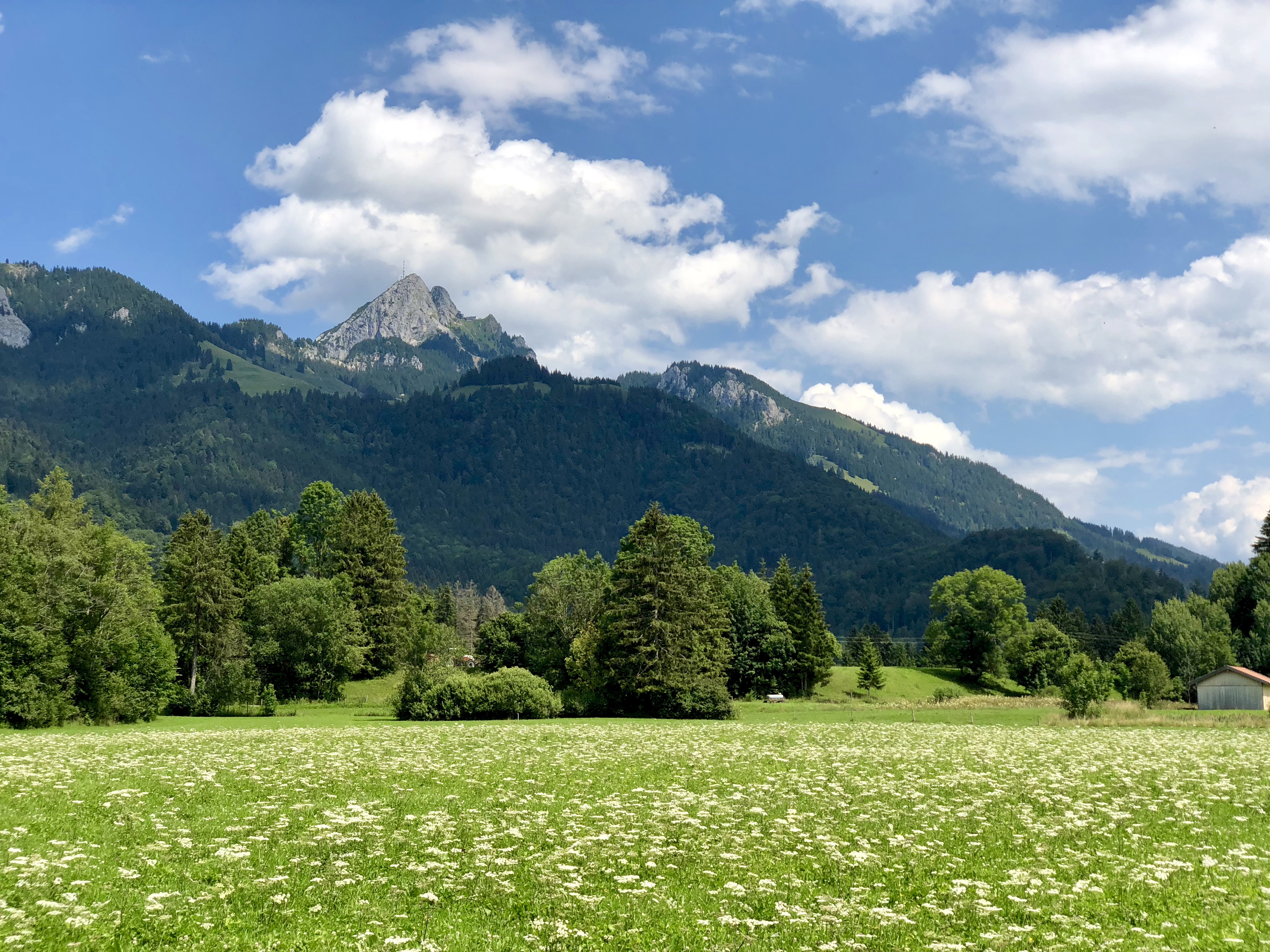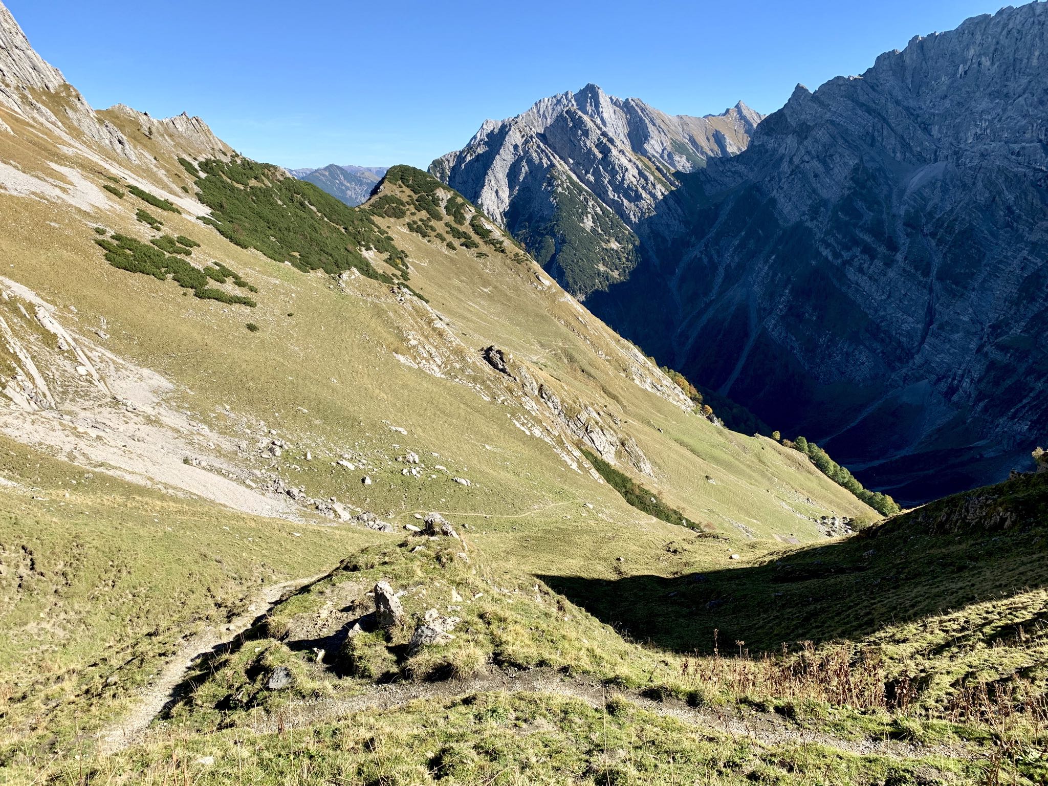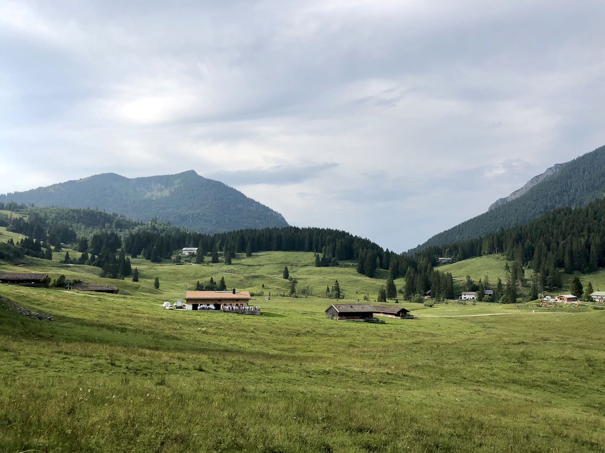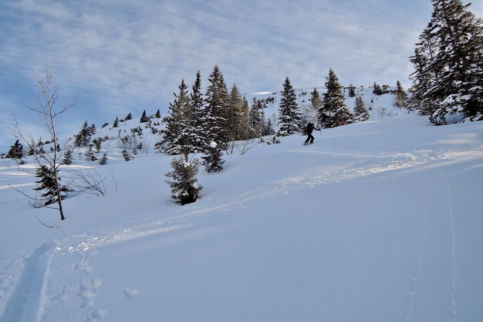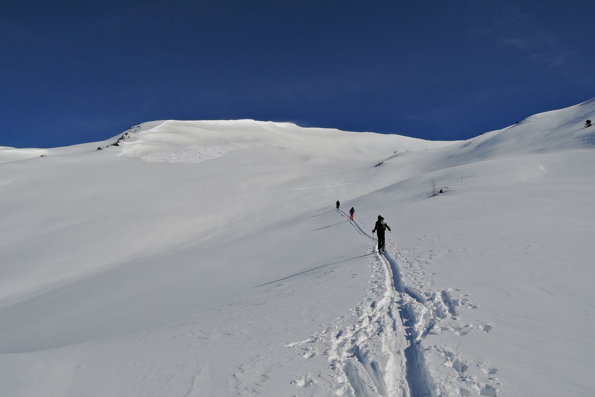 Sonstiges: Vom PP (5 €) am Spitzingsattel (1130m) beim Omnibuswendeplatz auf die Wiese und auf dem Pfad stets in Richtung NNO in den Wald hinein. Der Pfad verliert sich bald zu einer schmalen Pfadspur, aber nach 1km in immer derselben Richtung quert auf 1100m der 642er. Auf diesem felsigen Wanderweg geht es zügig, aber nicht zu steil durch etliche Kehren Richtung OSO, zuletzt Richtung SSW hinauf in den Kessel unterhalb des Jägerkamp. Dort links zur Jägerbauernalm (1540m) und diese links liegen lassend Richtung NO sausteil zum Nordgrat hinauf und diesem folgend durch die Latschen zum hölzernen Gipfelkreuz des Jägerkamp (1745m) hinauf. Von dort Richtung SO unterm Benzigspitz leicht abschüssig querend zum Wegekreuz und ab hier auf dem 643er Richtung SW zur Oberen Schönfeldalm (1450m) und weiter zur Unteren Schönfeldalm mit der Schönfeldhütte (1410m) hinab. An dieser rechts vorbei und in einem weiten Rechtsbogen zuletzt Richtung NW zum 644er hinab (1300m). Auf diesem in den Wald hinein und über Stock und ganz viel Stein bergab. An der Wiese oberhalb des Sattels darf die Konzentration nachlassen, in wenigen Minuten ist der Ausgangspunkt erreicht.