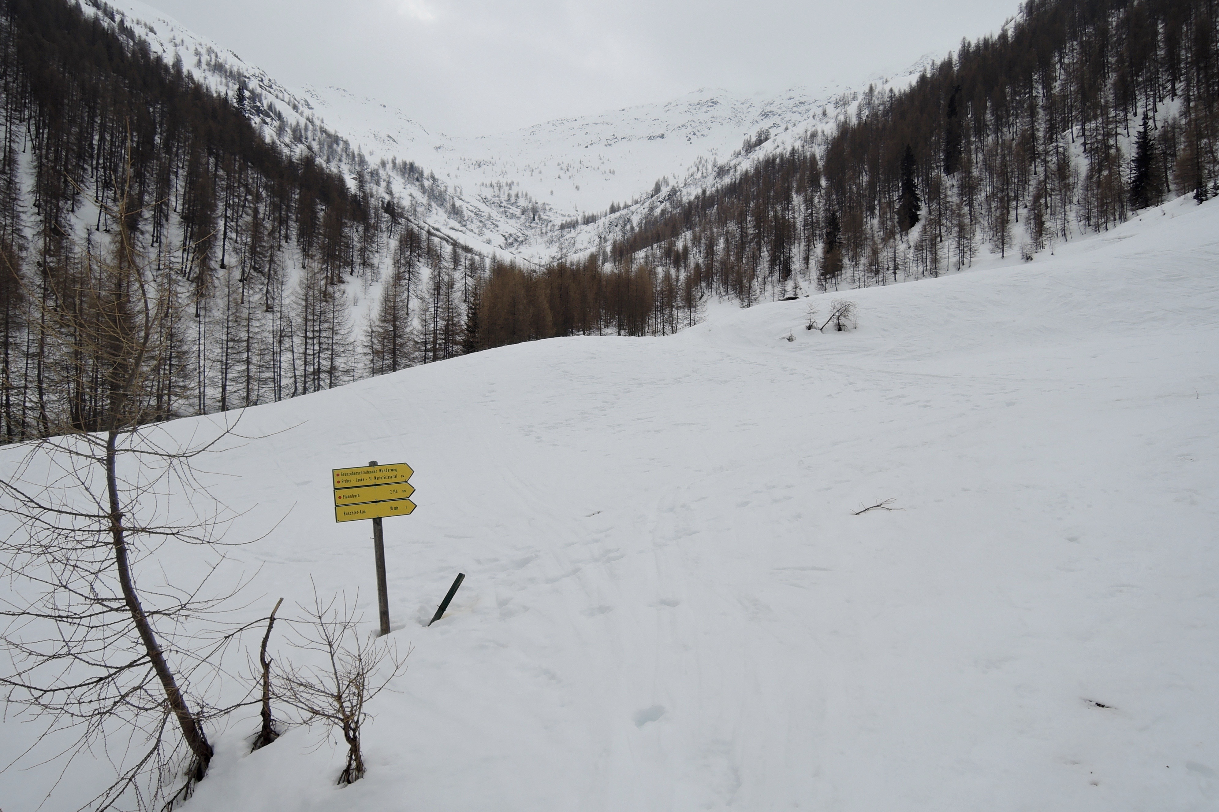 Sonstiges: Von den Alfenalmen (1700m) talein, am Bankerl dann Richtung SO durchs Marchental. Auf 2020m die Rinnen Richtung SW steil, zuletzt sehr steil zum Verbindungsgrat von Marchkinkele und Sasso Planca hinauf. Auf 2366m aber dann für heute genug gespurt.