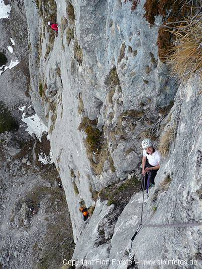 Am So. 25.4. mit geschätzten 20 weiteren Seilschaften am Ross- und Buchstein gewesen. Am Buchstein das "Südwandschmankerl" 6- geklettert, schöne Genusskletterei. Zustieg bis auf Sonnbergquerung schneefrei, alle Kletterrouten südseitig trocken, auch nordseitig sollte schon einiges gehen. Auch viele Wanderer unterwegs, NUR: die Tegernseer Hütte hatte noch nicht offen...