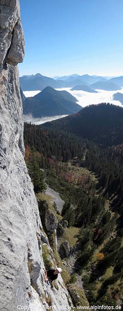 Am So. in der Morgendämmerung gemütlich zur Buchstein Südwand. Um 9 Uhr bereits T-Shirt Wetter mit traumhafter Fernsicht. Das "Sahnestückchen" geklettert, 5 SL (6, 7-, 6-, 5, 5-), sehr schöne Kletterei mit perfekter Absicherung. Vor 12 Uhr bereits an der Tegernseer Hütte, dort schon Vollbetrieb...Zurück zu den Rucksäcken. Dann in Roßsteinnadel Südwand eingestiegen, steile und "kraftige" Klassiker-Kletterei, mein Nachsteiger "veweigerte" dann die zweite Seillänge, also wieder abseilen, und die SW-Kante geklettert, 2 SL bis 6-. Abseilen und flotter Abstieg zum Auto. Wie bei dem Wetter zu erwarten war, viele Leute unterwegs, aber immer wieder schön am Roß- und Buchstein...