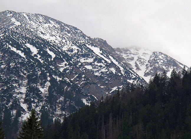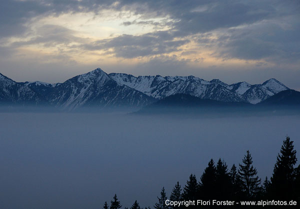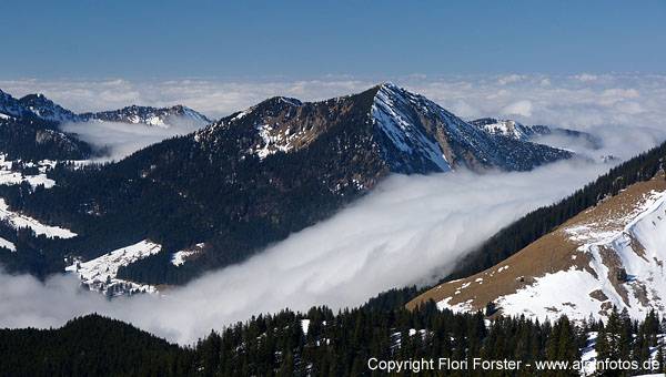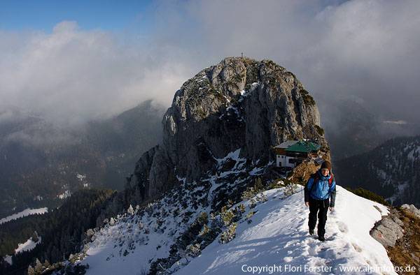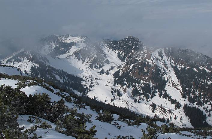 Heute von Bayerwald auf den Roßstein. Weg überwiegend schneefrei, in der Querung vor der Sonnbergalm und auf der Sonnberg Nordseite Trittschnee, Klettersteig frei. Tolle Wolkenstimmung.