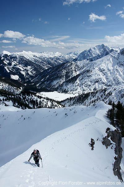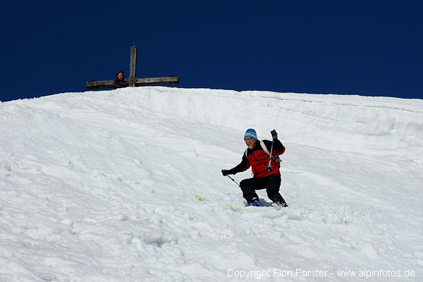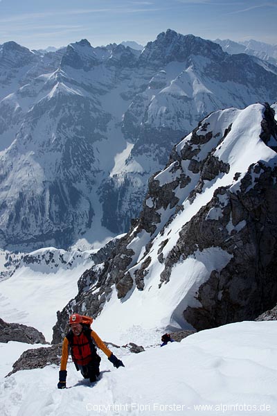 Am 15.4. von Feichten im Kaunertal über die Fahrstraße zur Verpeilhütte. Weiter in den Talboden und über steile Hänge (kurze Tragepassage) zum Schweikertferner. Über diesen bis auf ca. 3000m, Skidepot. Von dort über steile Schneerampe(kurz 60°) in die eigentliche Eisrinne und diese (bis 42°) zu Schulter und über Schneegrat auf die Rofelewand. 2100 Hm, knapp 6 Std.. Zum Glück hatte ich die Ski mitgenommen, die Eisrinne war super zu fahren, stürzen sollte man aber nicht, die Rinne selbst endet in Felsabbrüchen...Die weitere Abfahrt bis zur Verpeilalm hatte aufgrund der Westlage ab 13 Uhr perfekt aufgefirnt. Auf der Straße gings mit kurzen Unterbrechungen noch bis zum Auto.