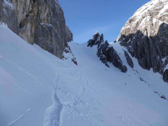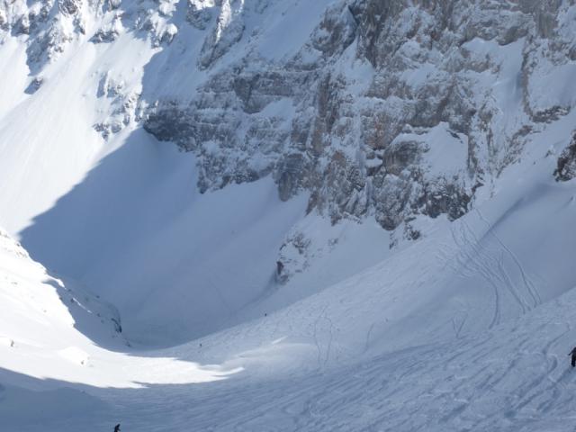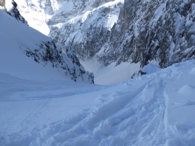 Gefahreneinschätzung: Die Osthänge in den Mitterer Graben sind immer ein Risiko trotz Lawinenwarnstufe 2