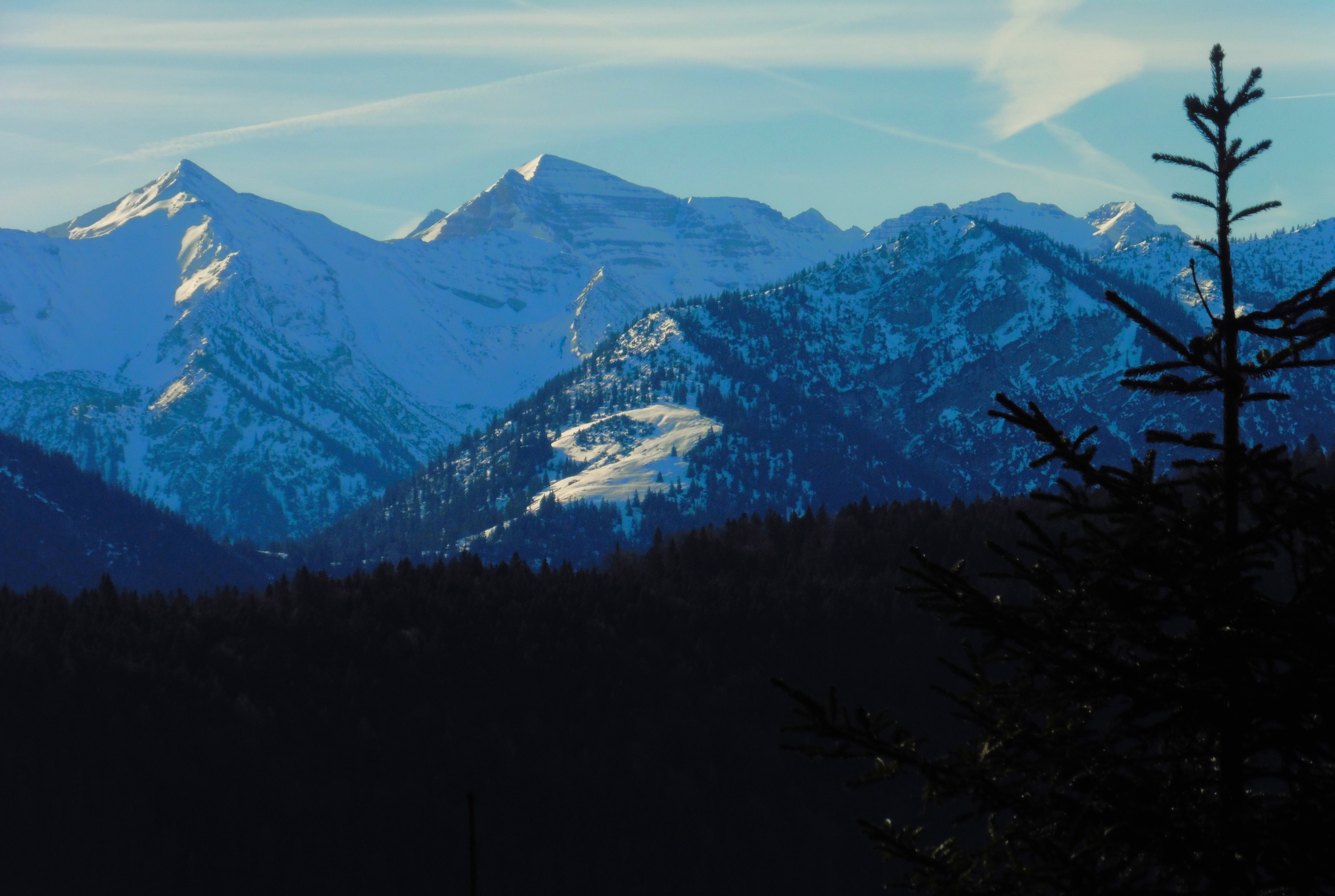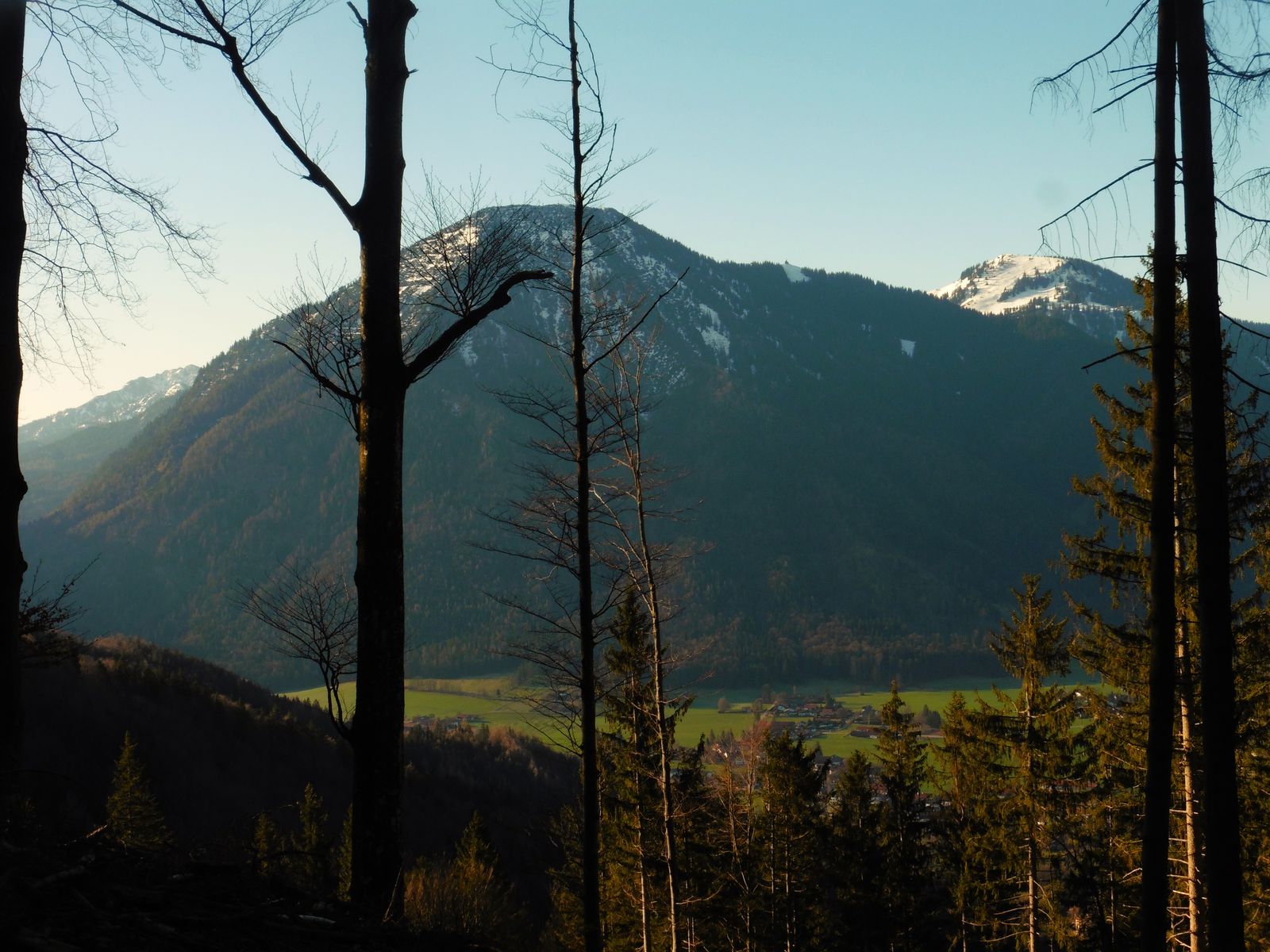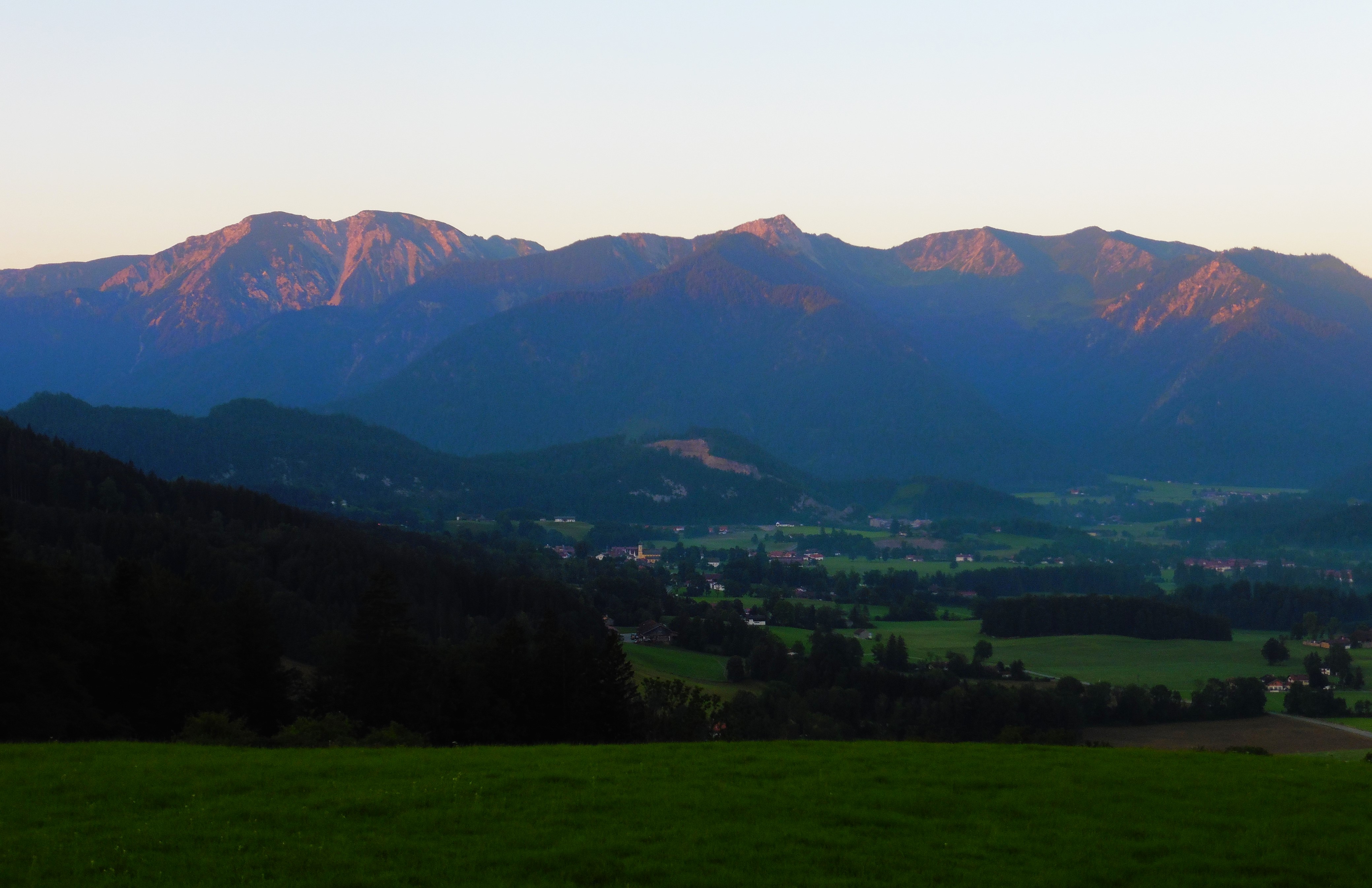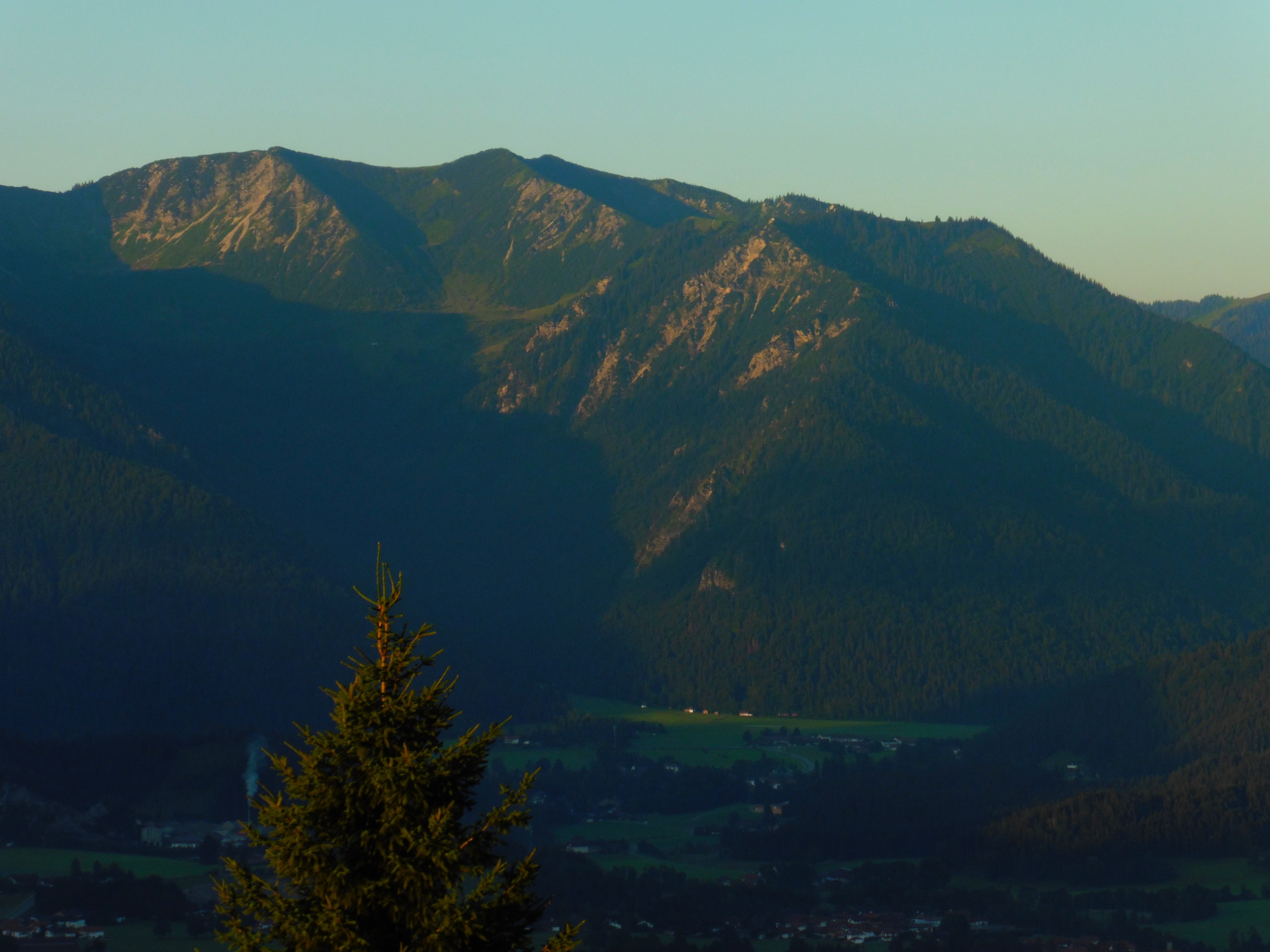 Bild 1: Kampenwand und Scheibenwand frühmorgens noch im Schatten;