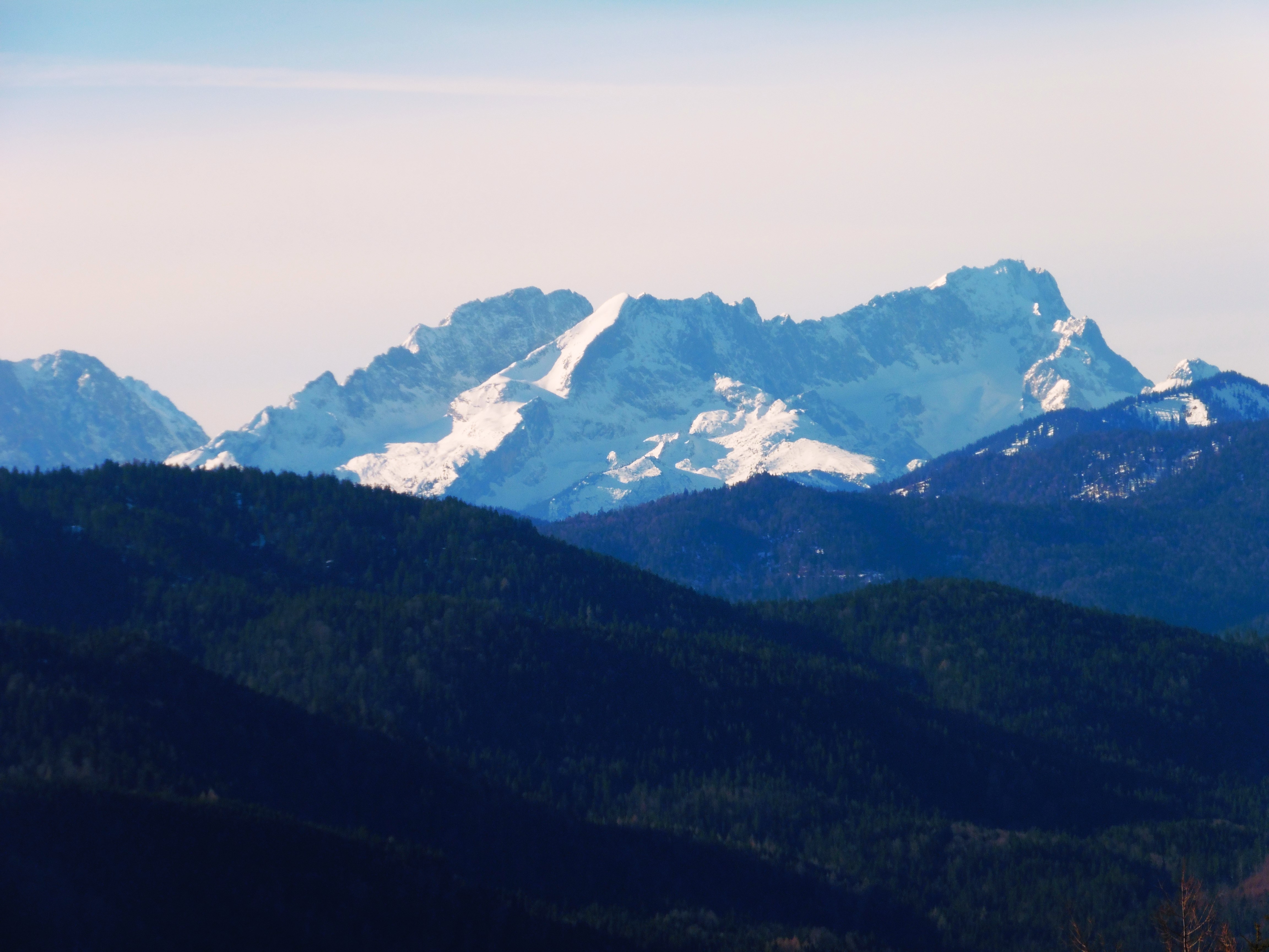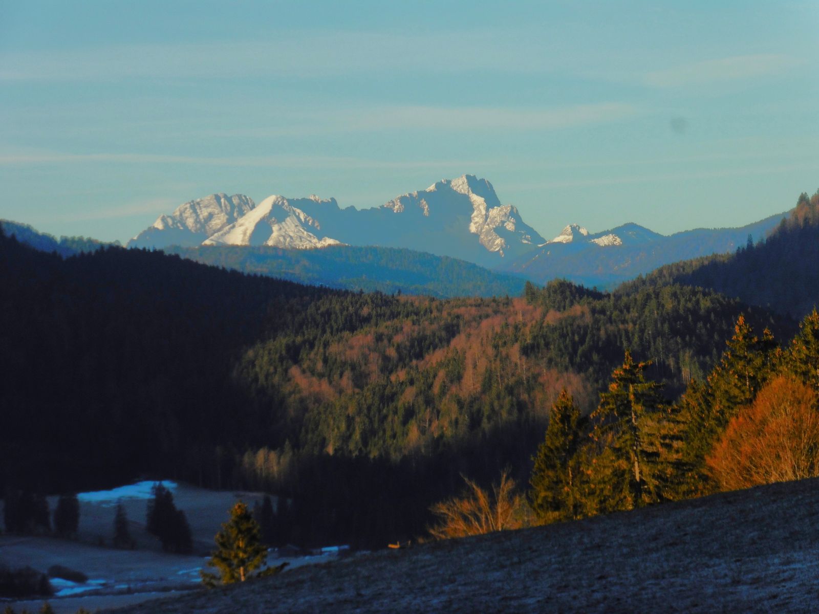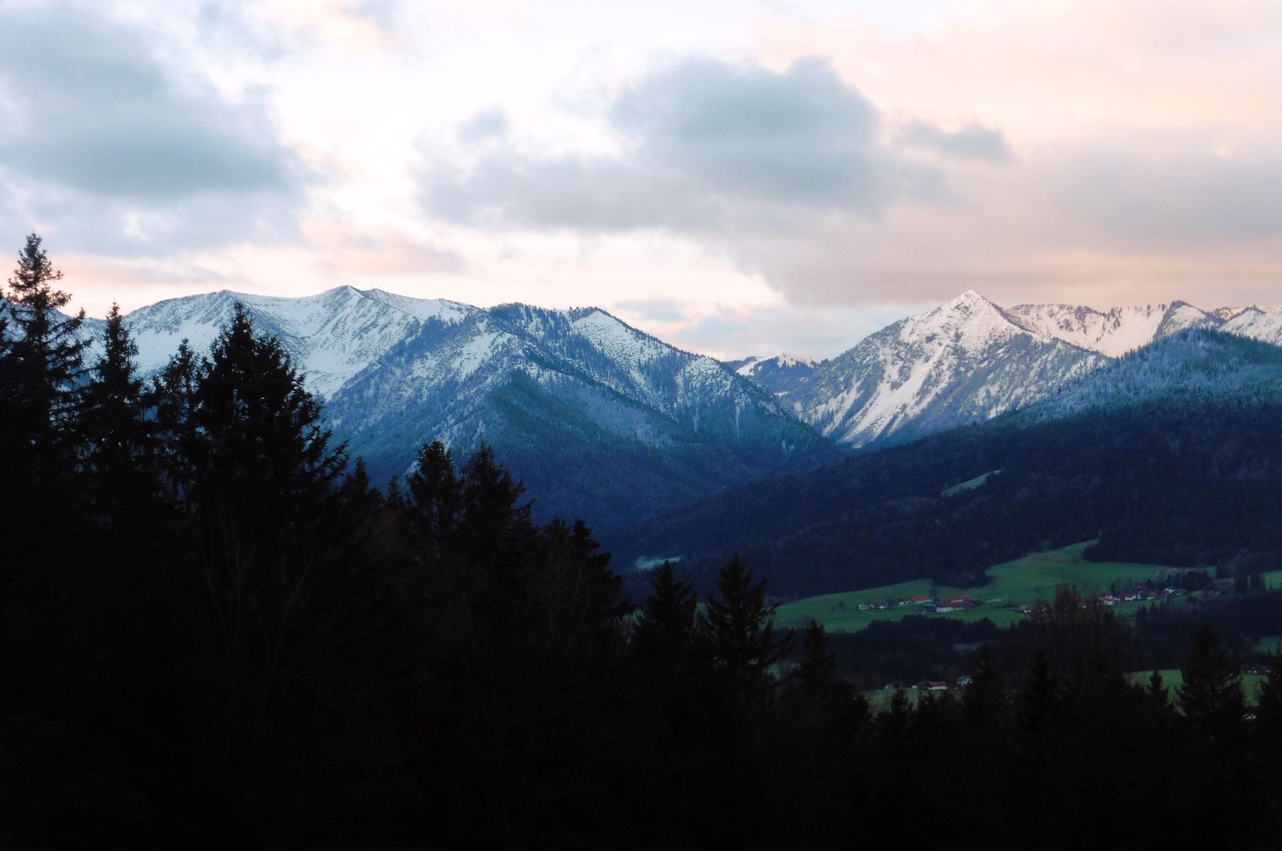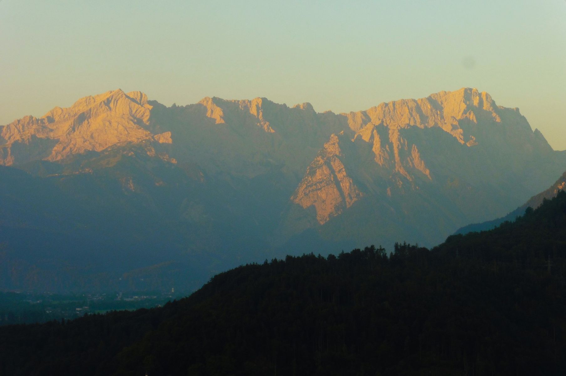 Bild 1: Kampenwand und Scheibenwand frühmorgens noch im Schatten;