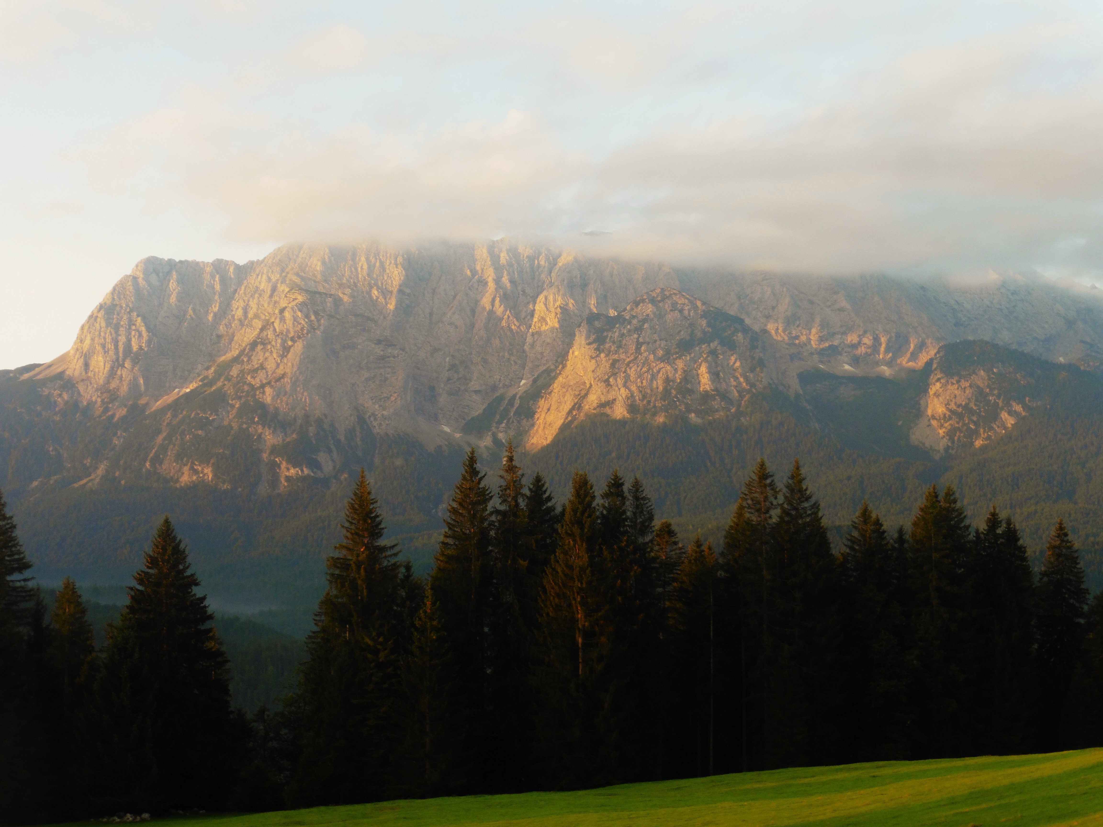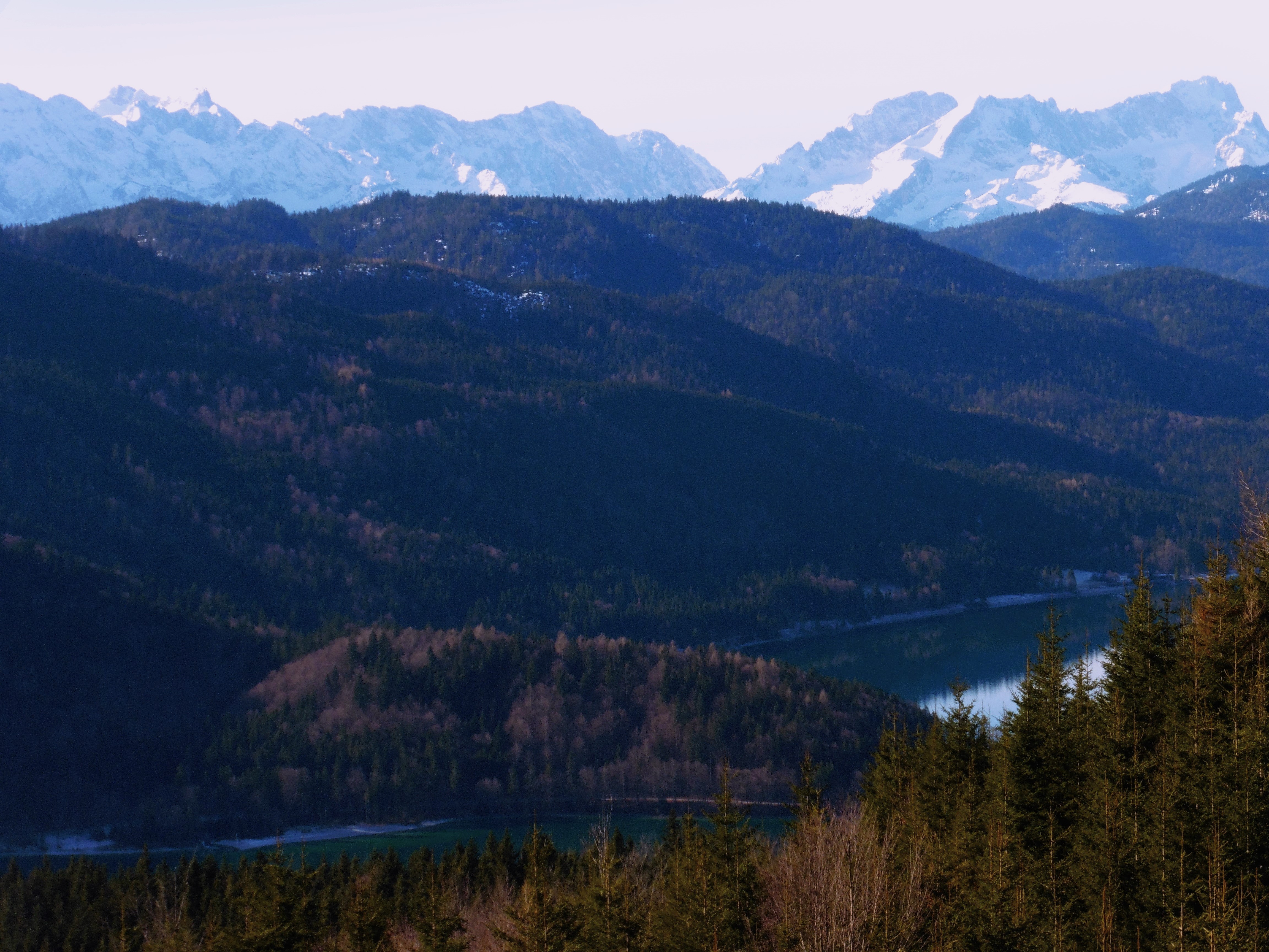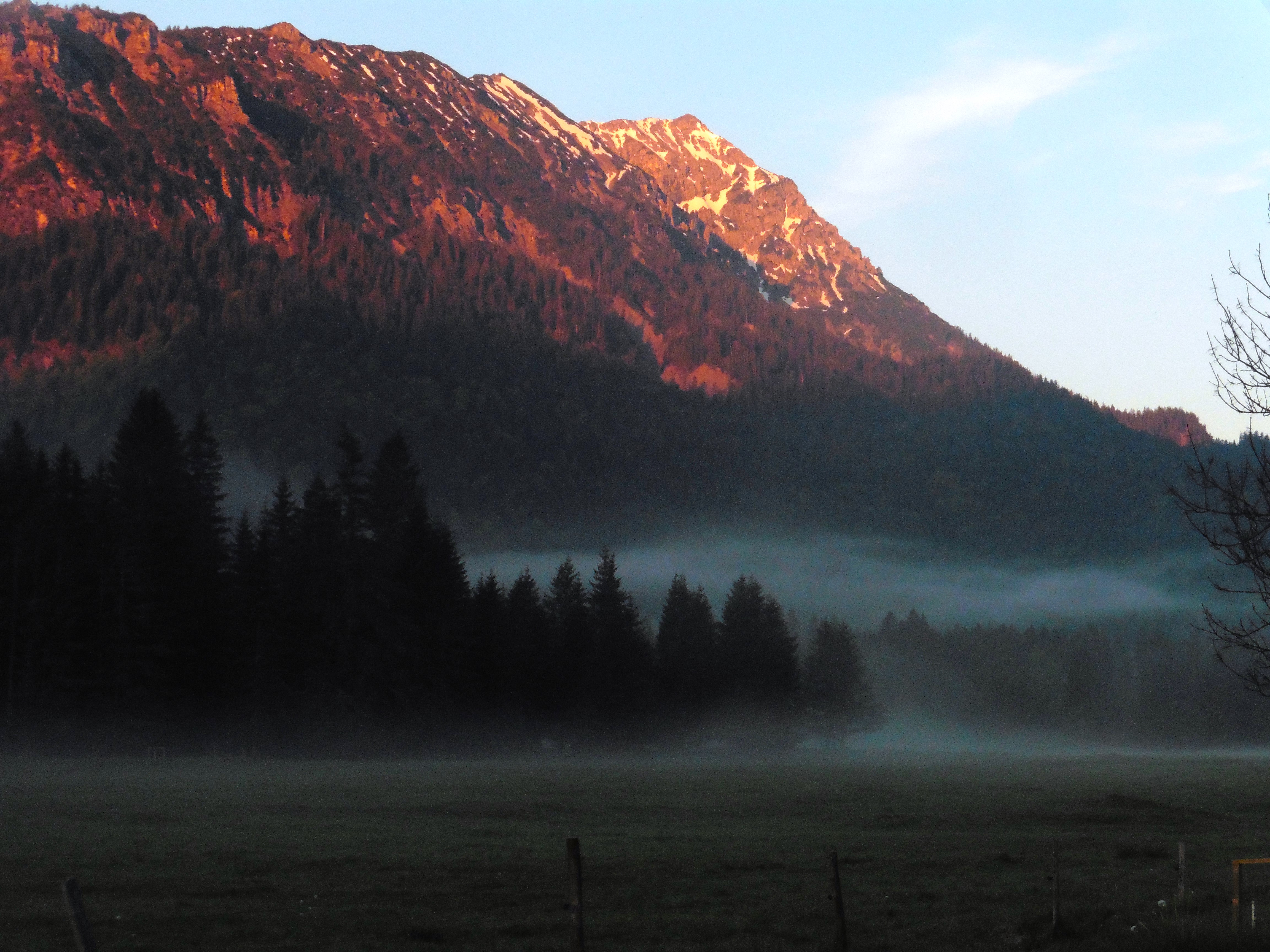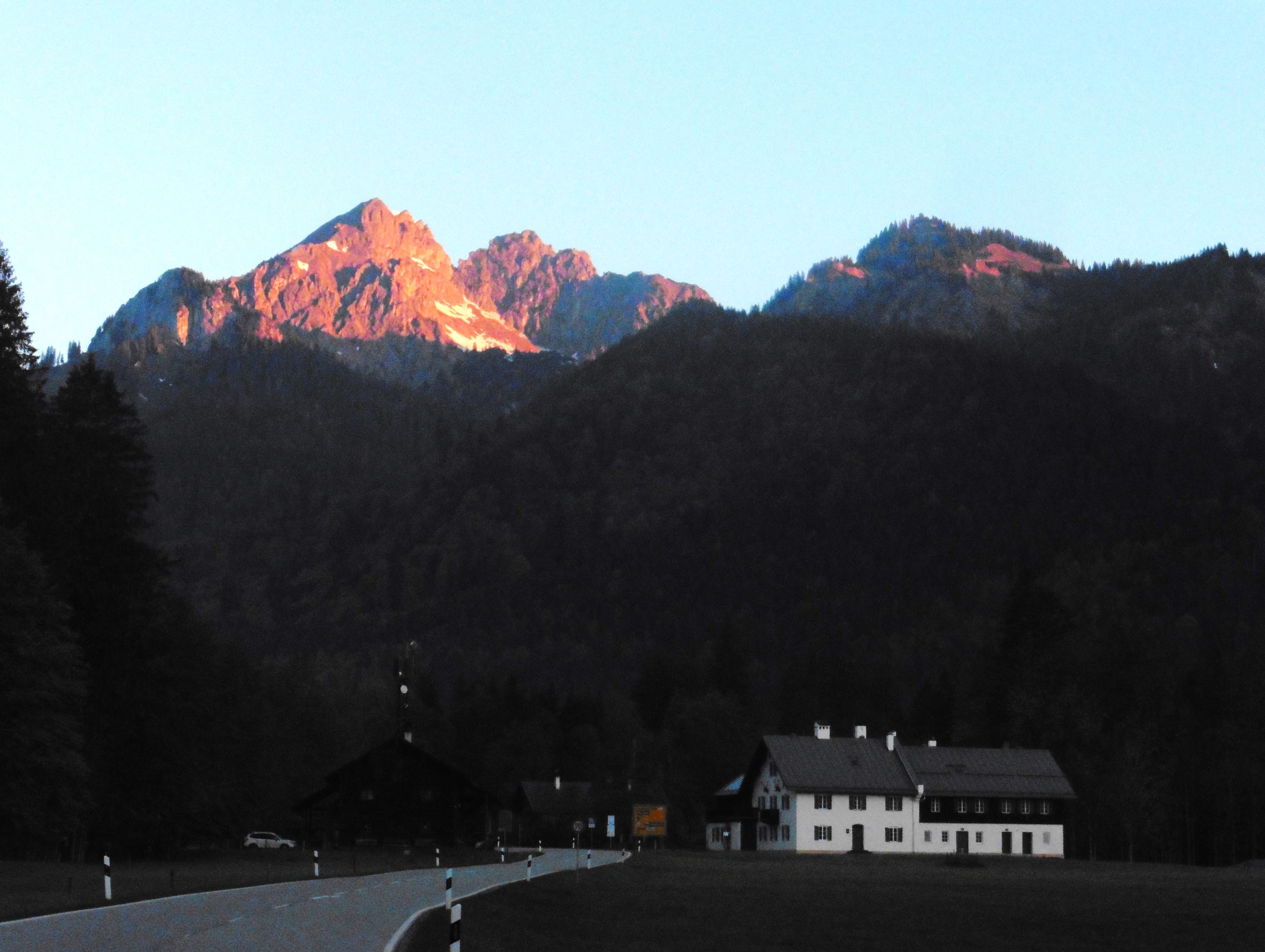 Bild 1: Kampenwand und Scheibenwand frühmorgens noch im Schatten;