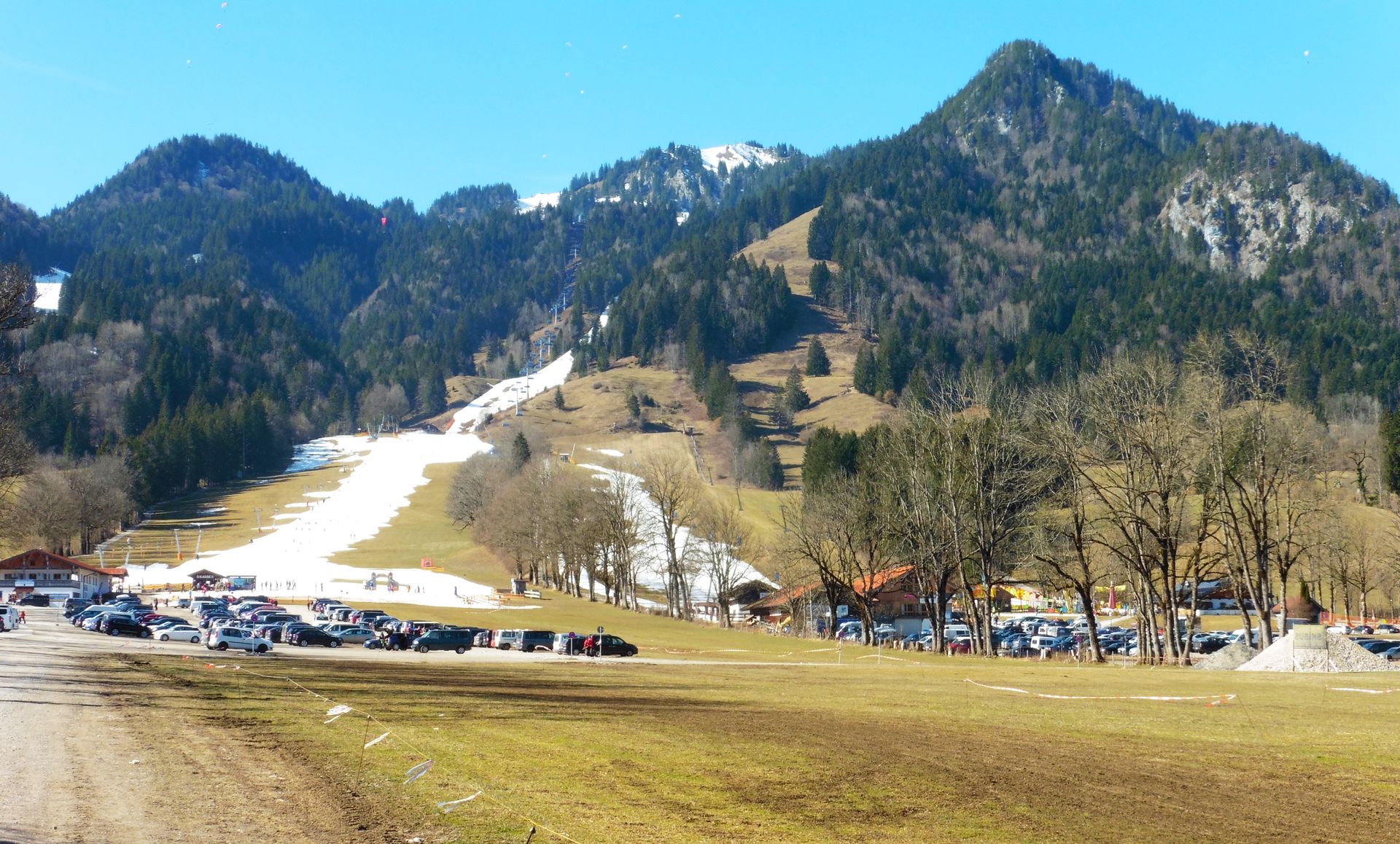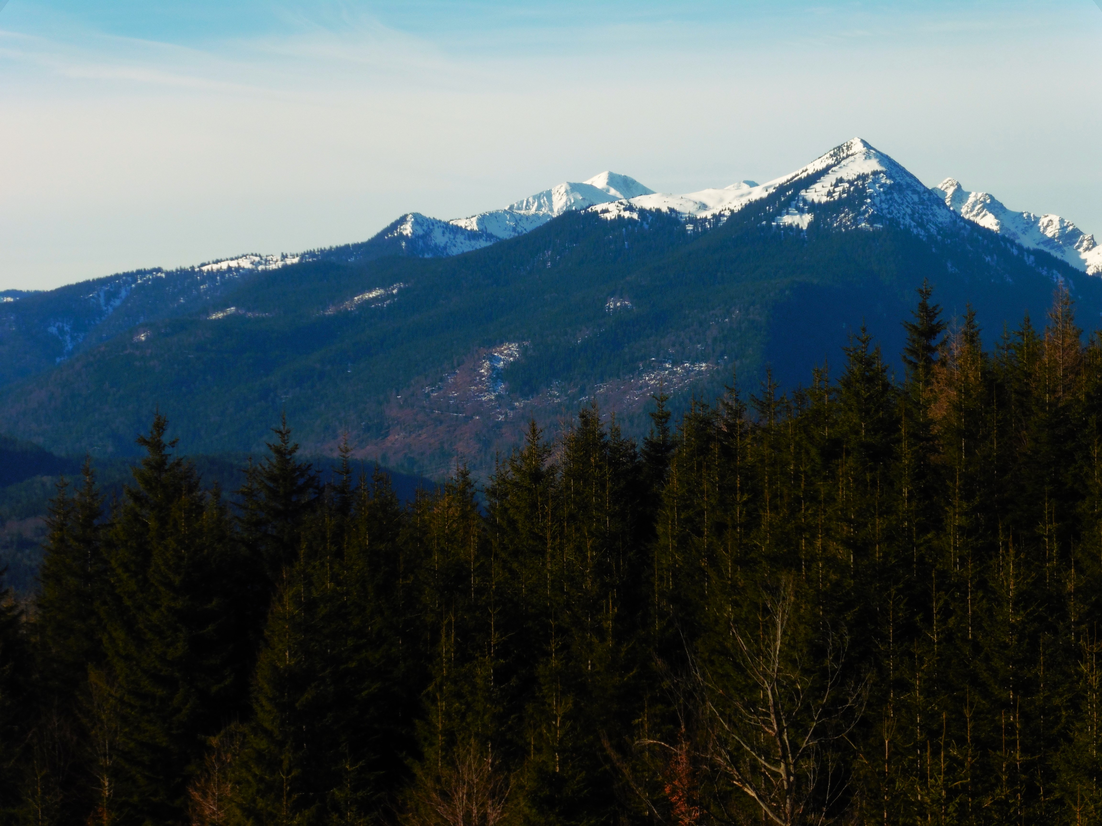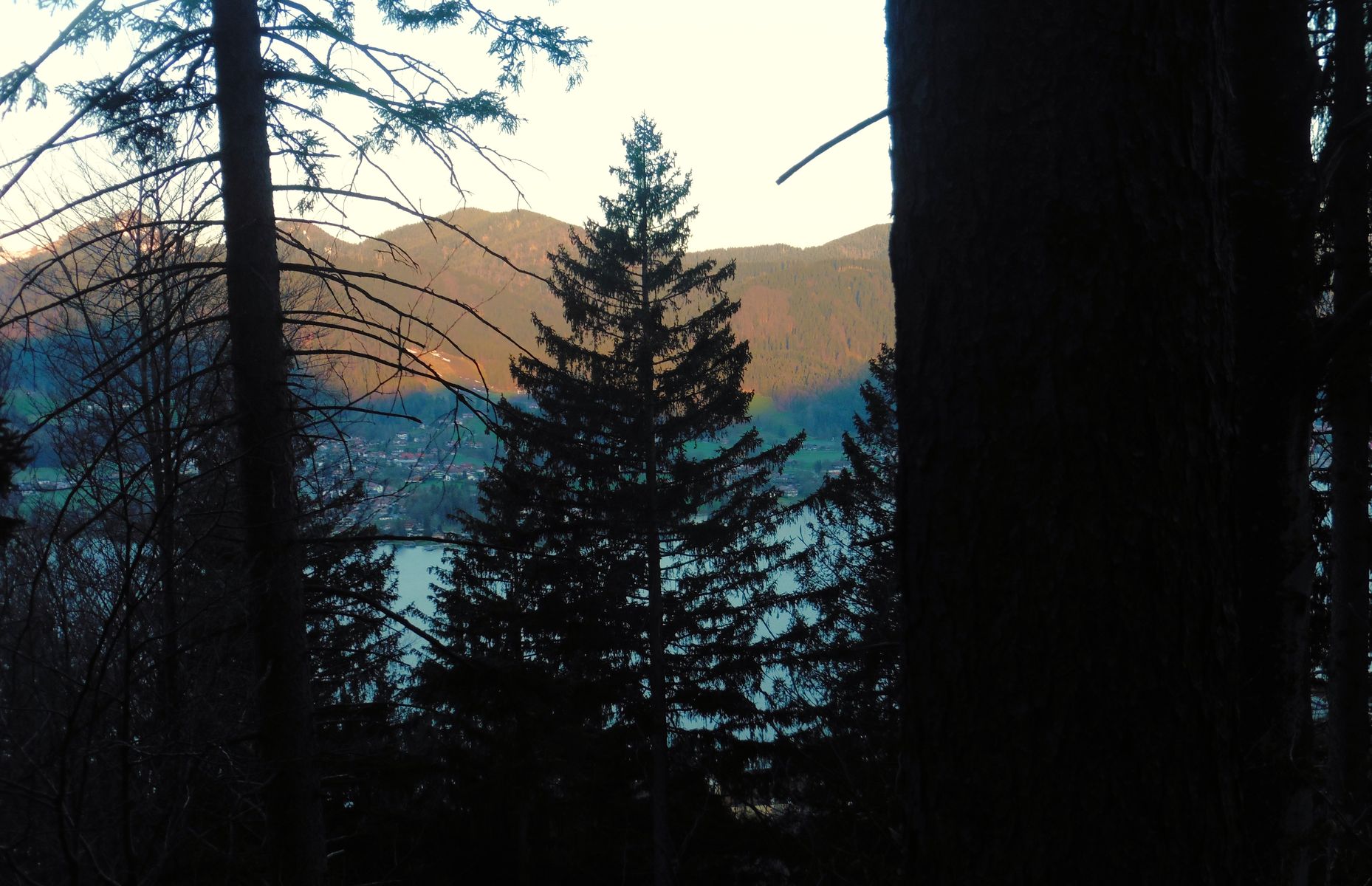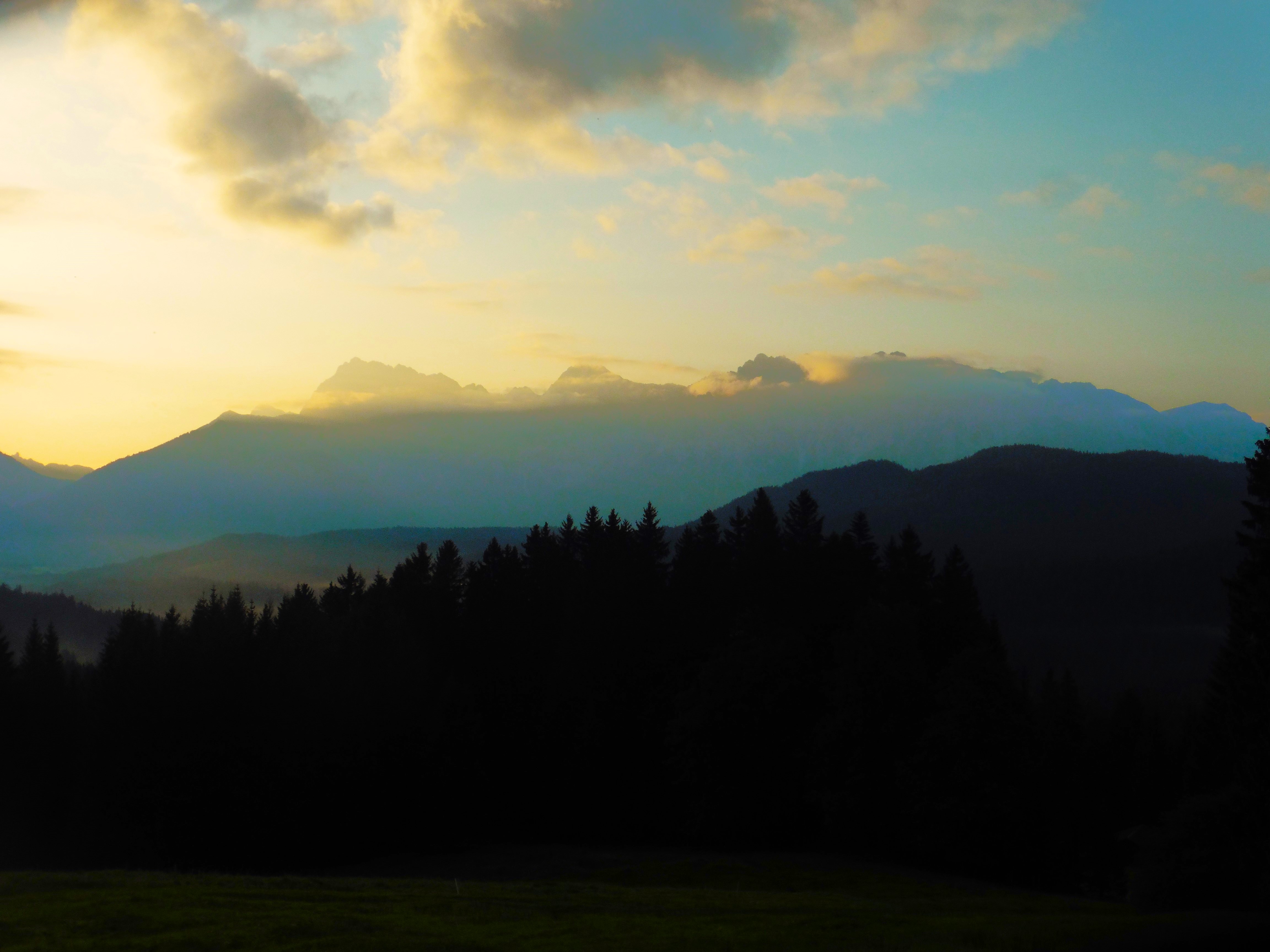 Bild 1: Kampenwand und Scheibenwand frühmorgens noch im Schatten;