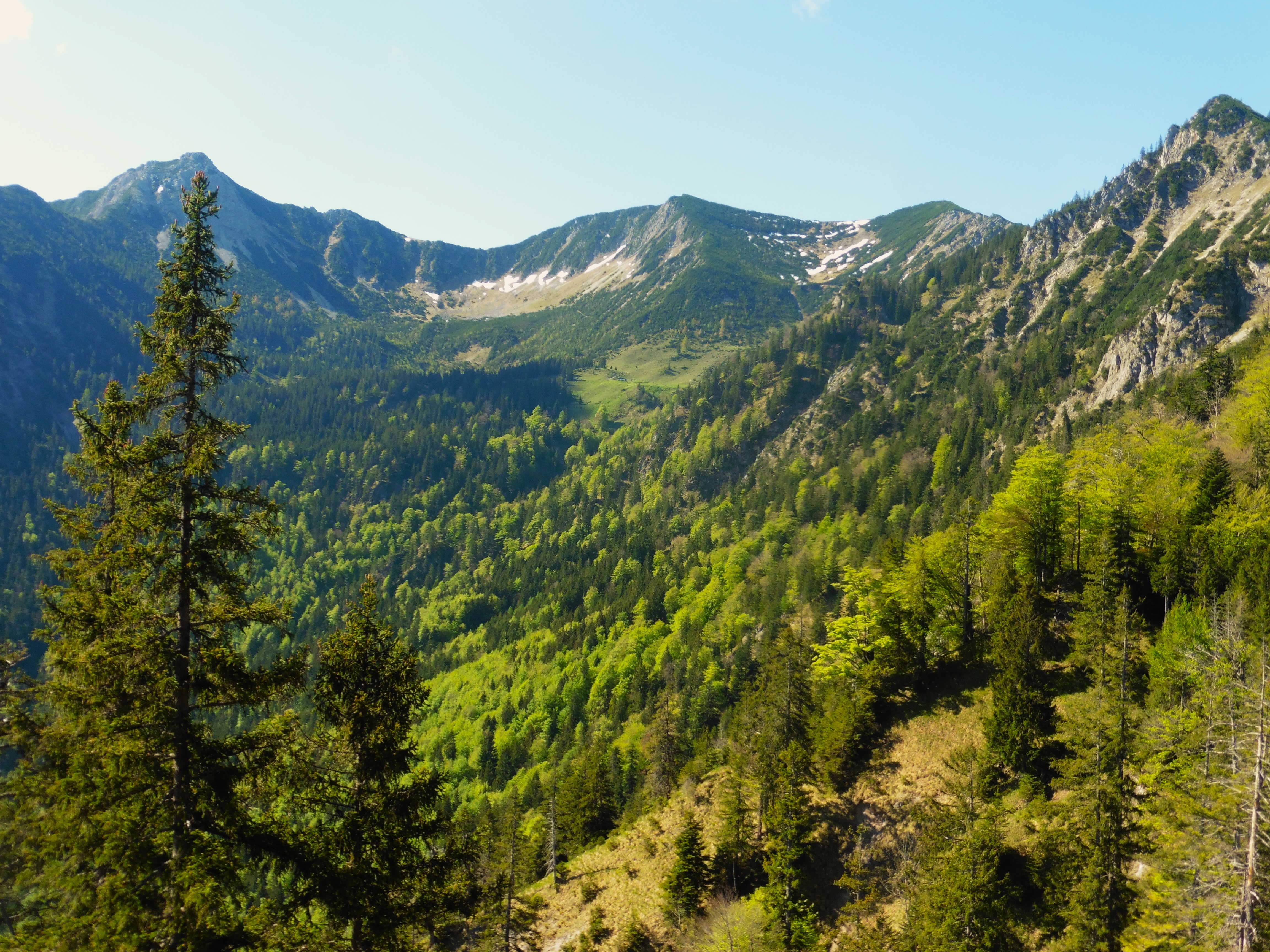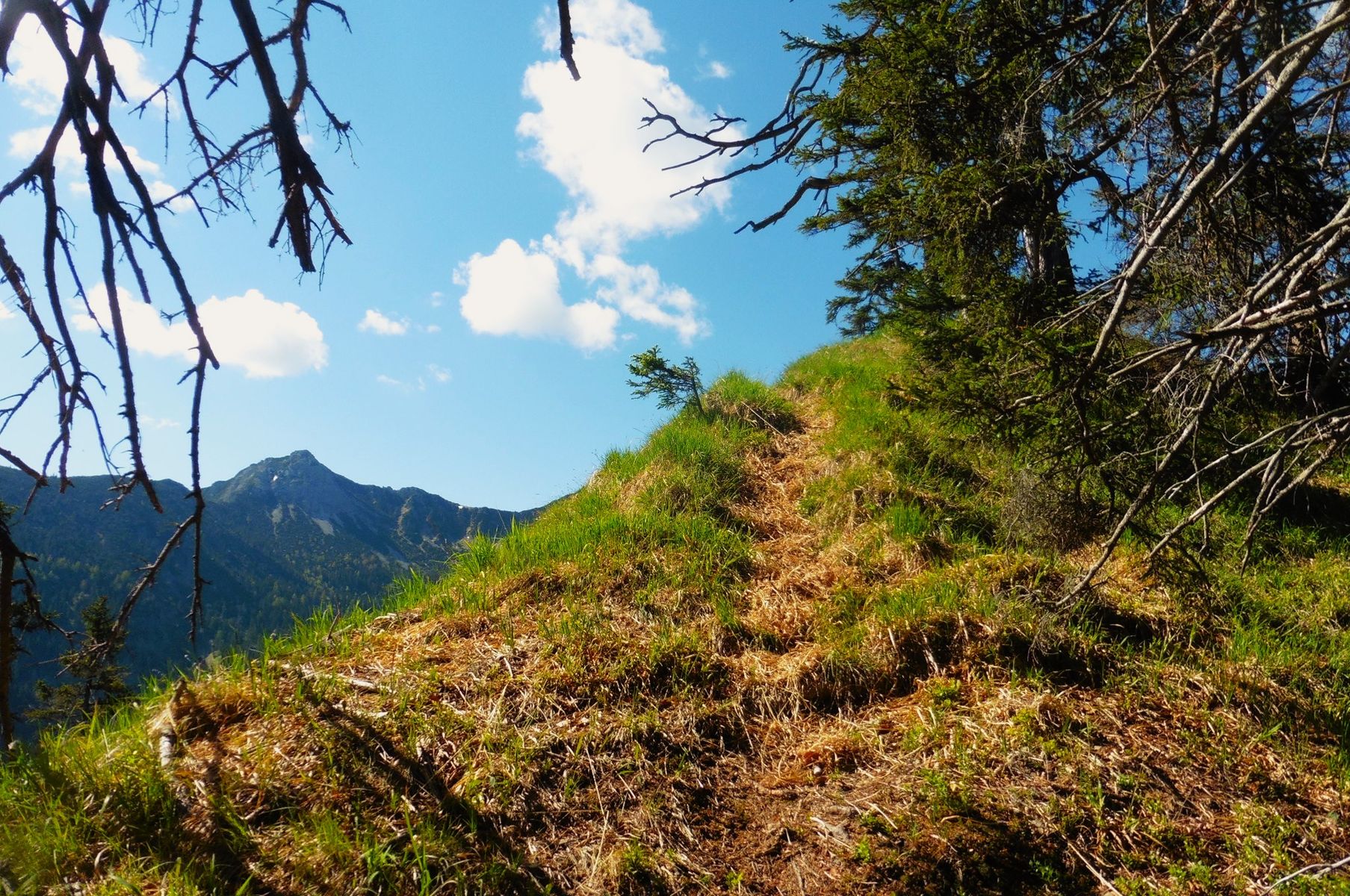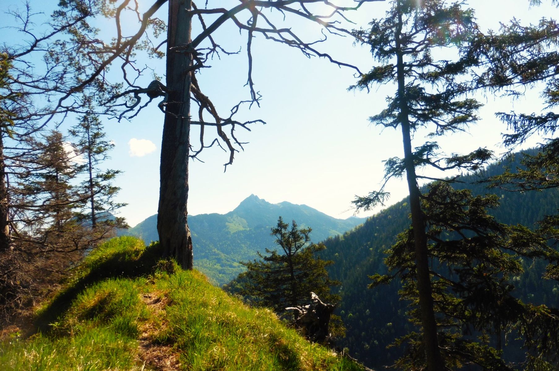 Vorab - dieser Bericht handelt nicht vom Schwarzenberg im Leitzachtal, sondern um einen Namensvetter im Chiemgau; es existiert ein beschilderter Wanderweg rund um den Schwarzenberg, zum Gipfel selbst gibt es weder Beschilderung noch einen Weg; auf einigen Karten ist eine punktierte Linie zum Gipfel eingezeichnet und eine Forststraße auf seiner Nordseite, die aber am SW-Rücken endet; meine Neugierde war geweckt, insofern - ob es nicht möglich wäre über diesen Rücken auch abzusteigen; (der Rundwanderweg ist trivial, da er ausschließlich über Forststraßen führt );