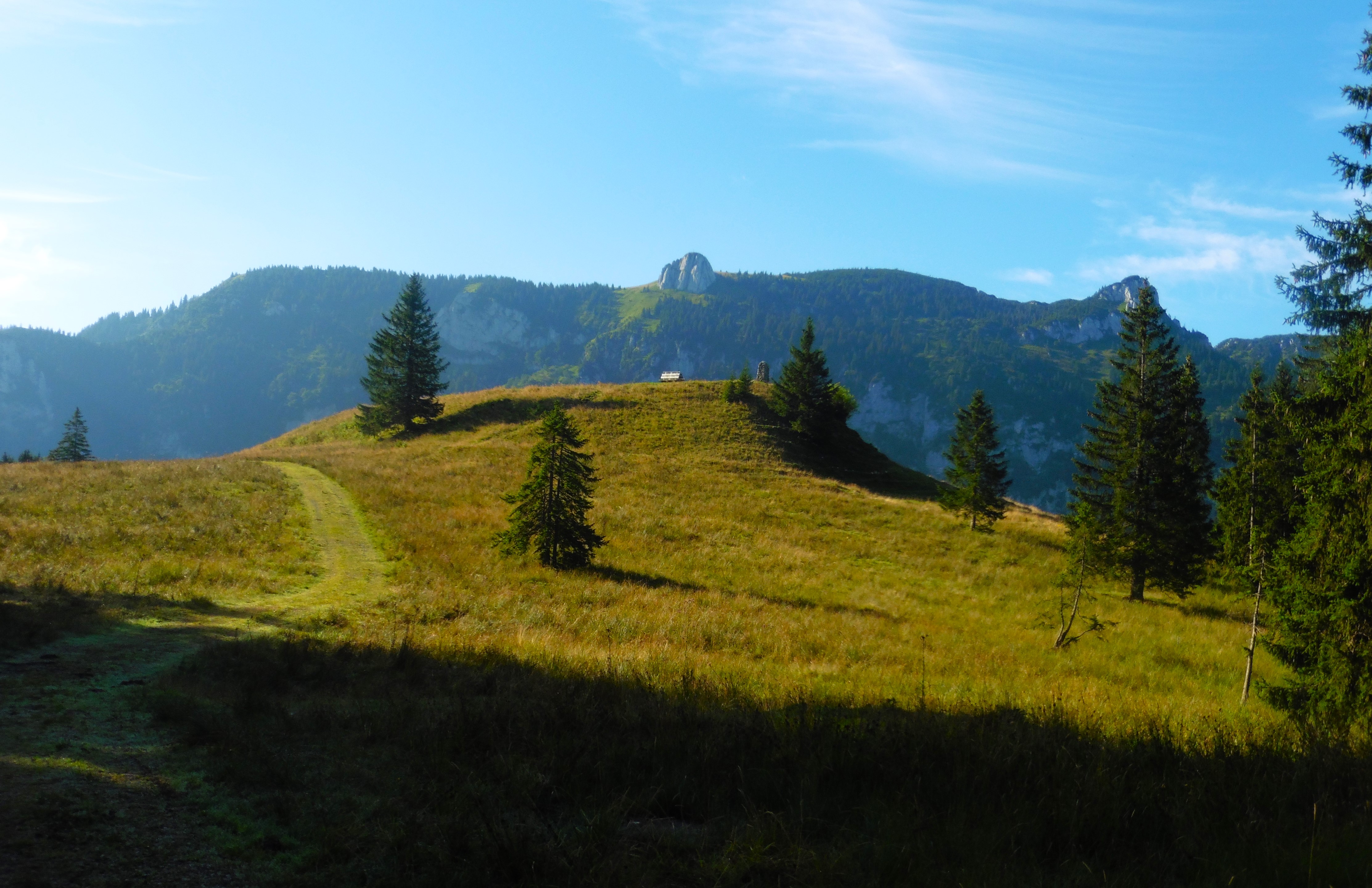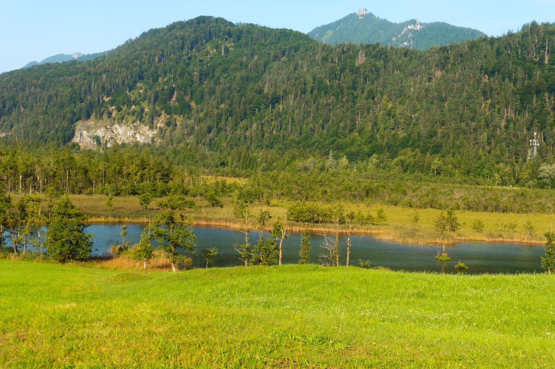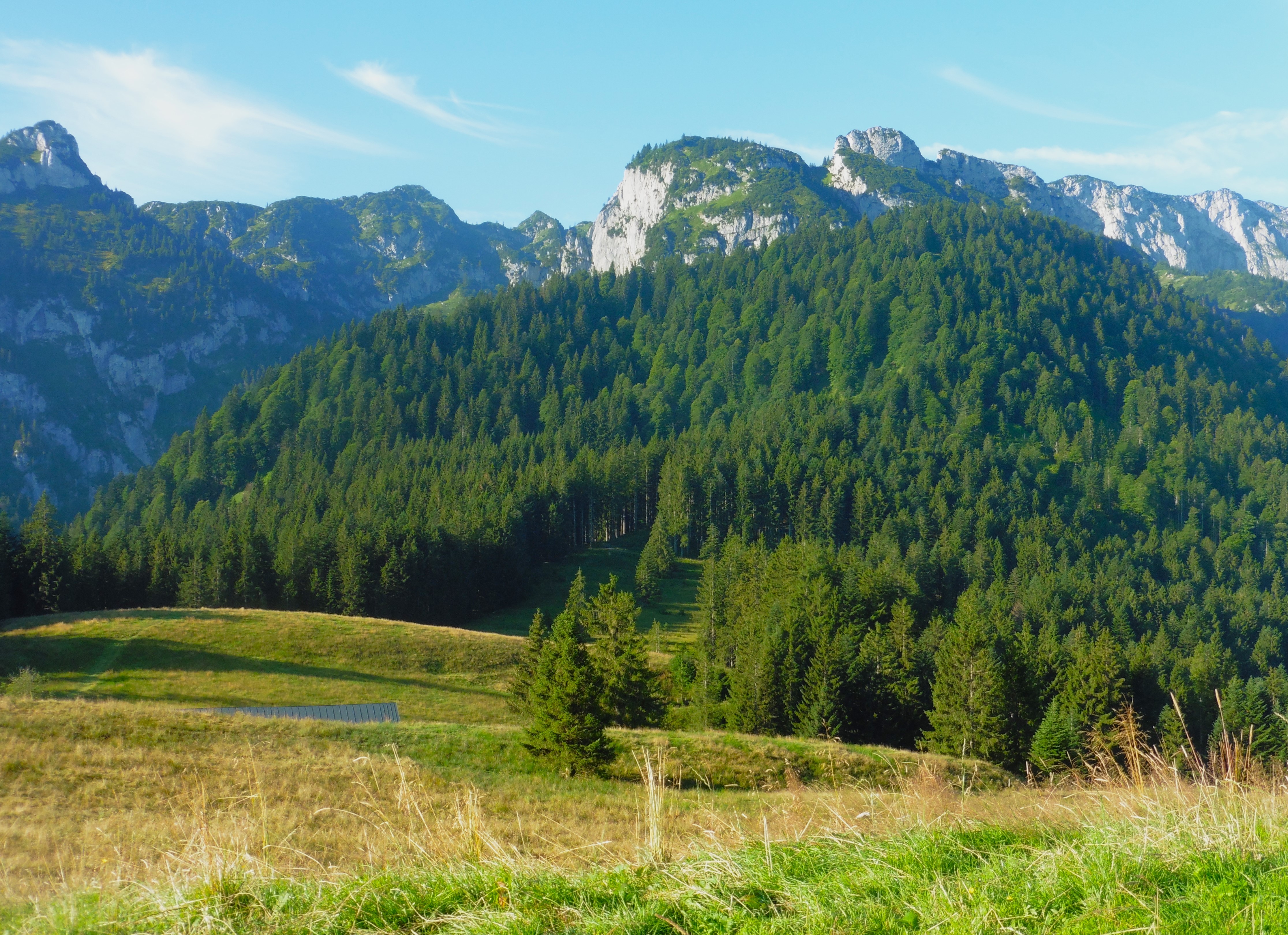 Vorab - dieser Bericht handelt nicht vom Schwarzenberg im Leitzachtal, sondern um einen Namensvetter im Chiemgau; es existiert ein beschilderter Wanderweg rund um den Schwarzenberg, zum Gipfel selbst gibt es weder Beschilderung noch einen Weg; auf einigen Karten ist eine punktierte Linie zum Gipfel eingezeichnet und eine Forststraße auf seiner Nordseite, die aber am SW-Rücken endet; meine Neugierde war geweckt, insofern - ob es nicht möglich wäre über diesen Rücken auch abzusteigen; (der Rundwanderweg ist trivial, da er ausschließlich über Forststraßen führt );