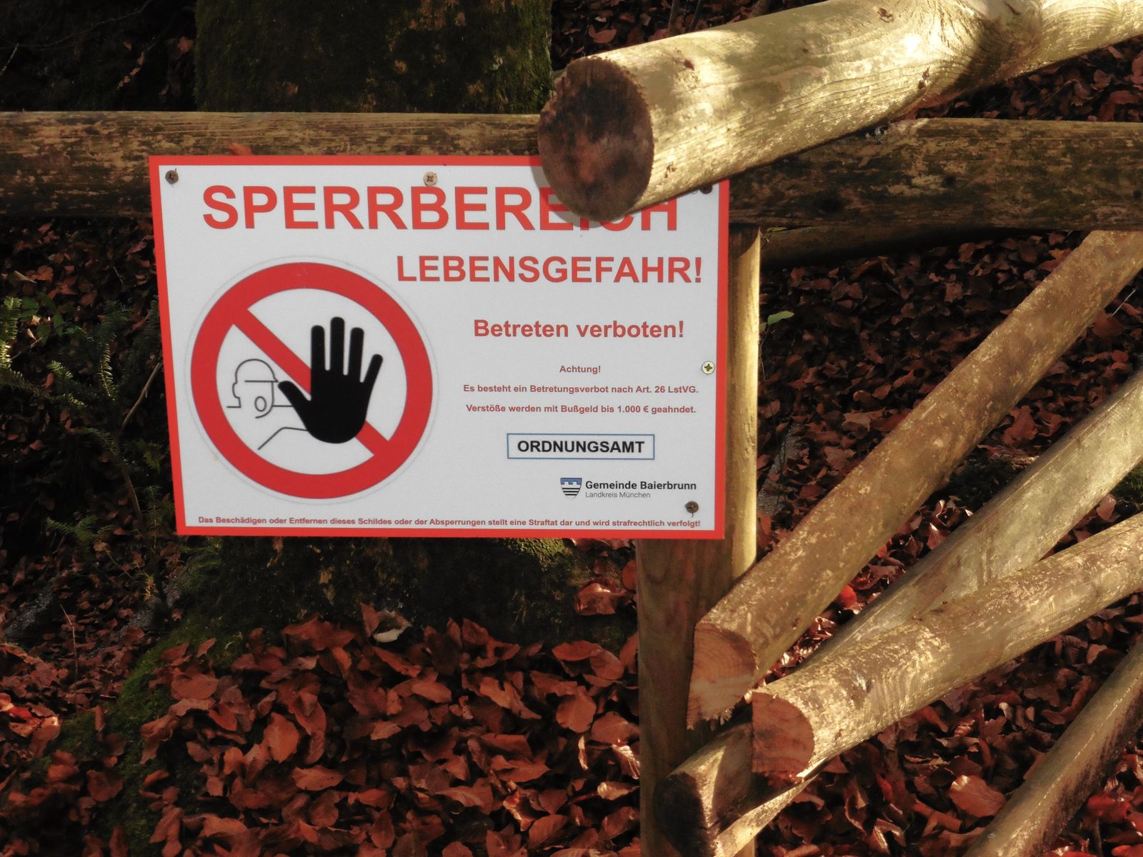 Bild 9: Hinweistafel am Ende des Weges (bei Begehung bitte Ruhe bewahren);