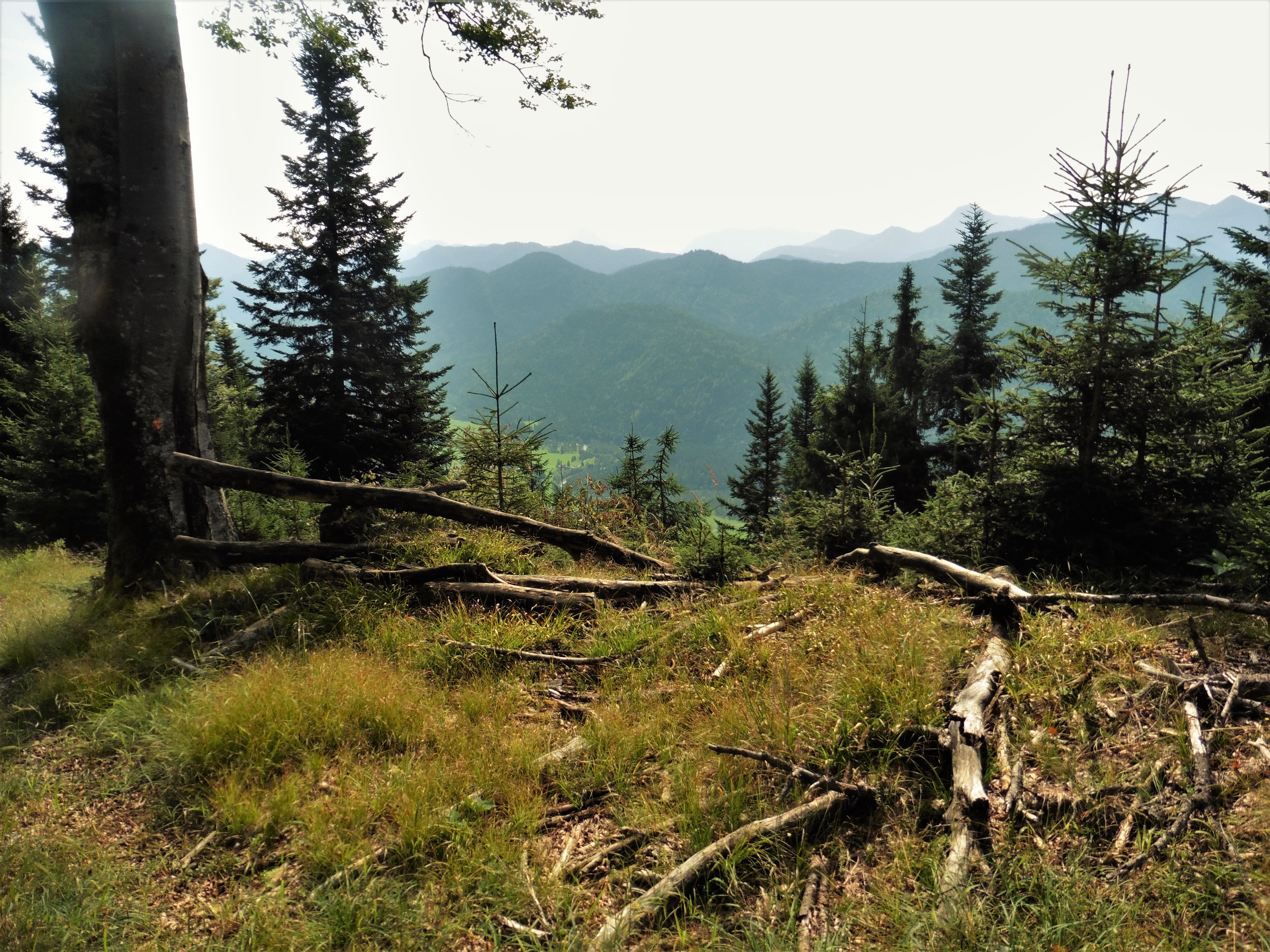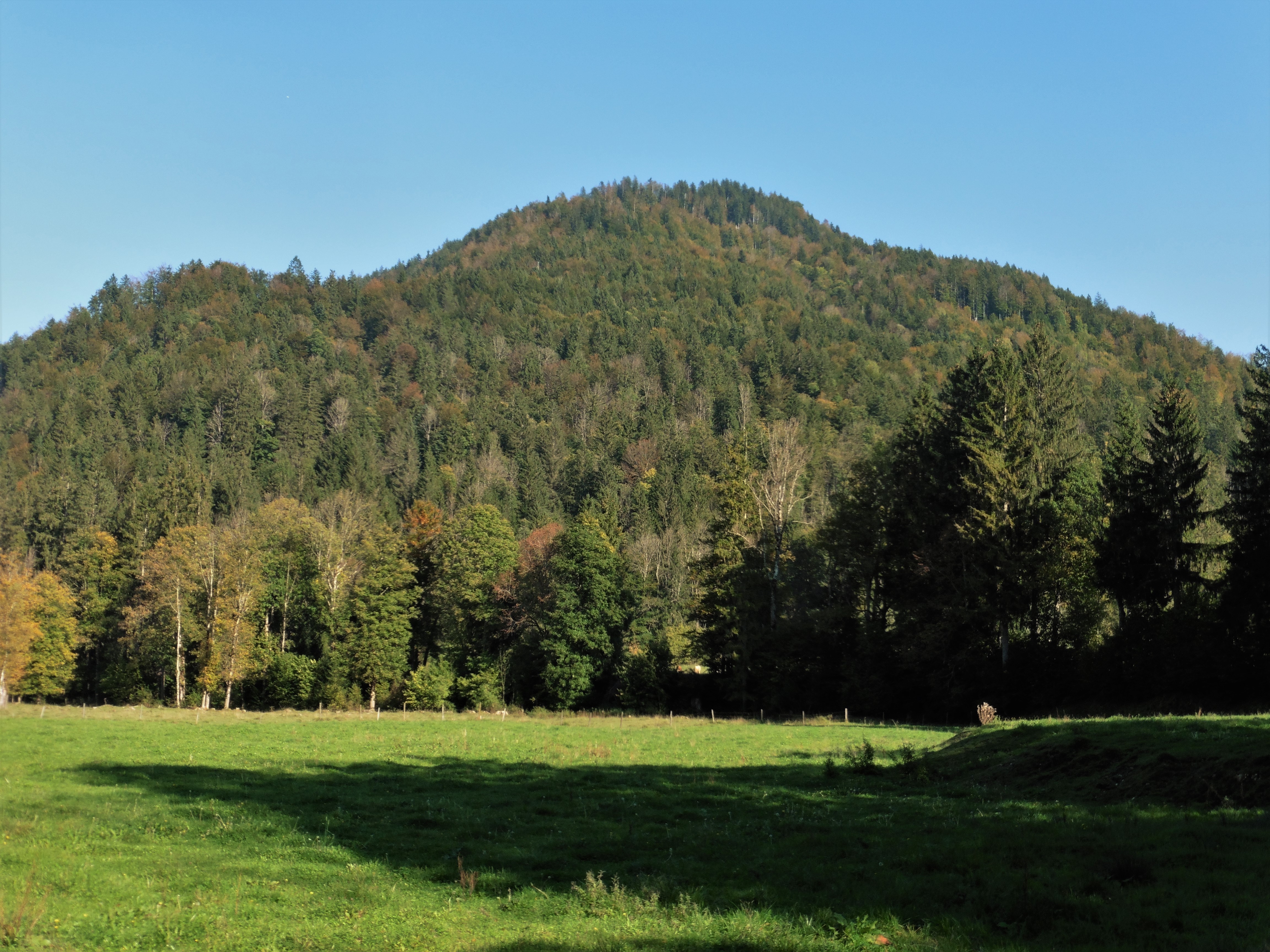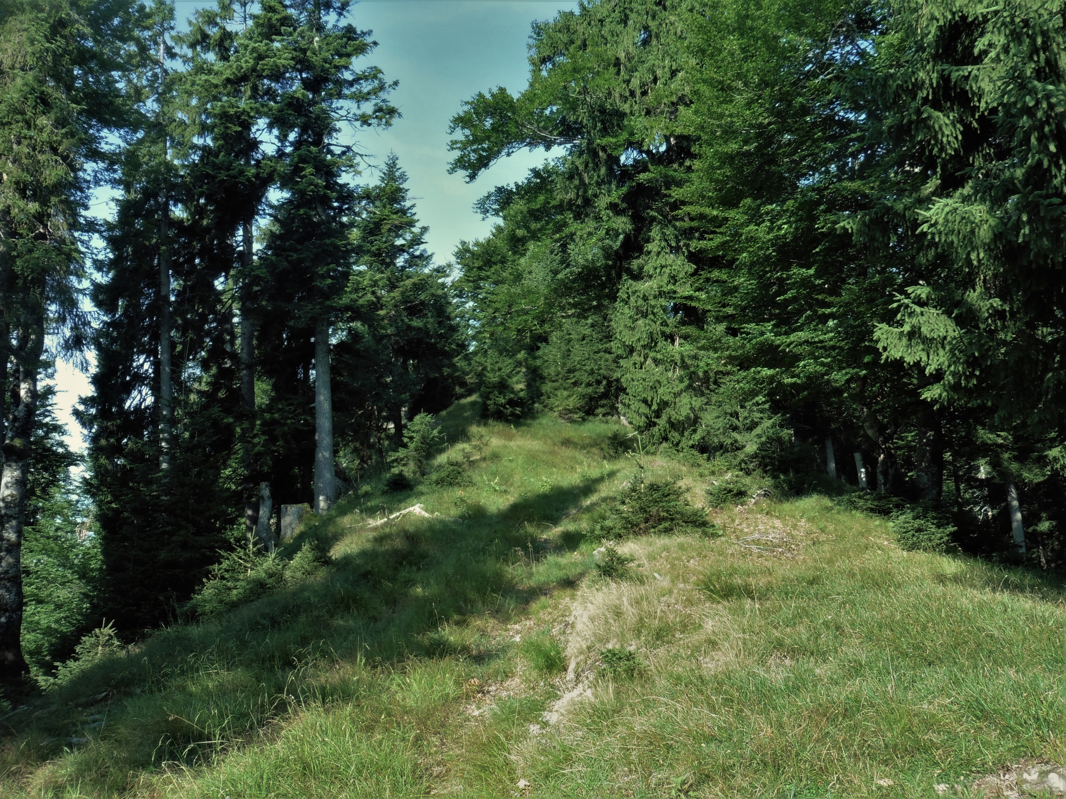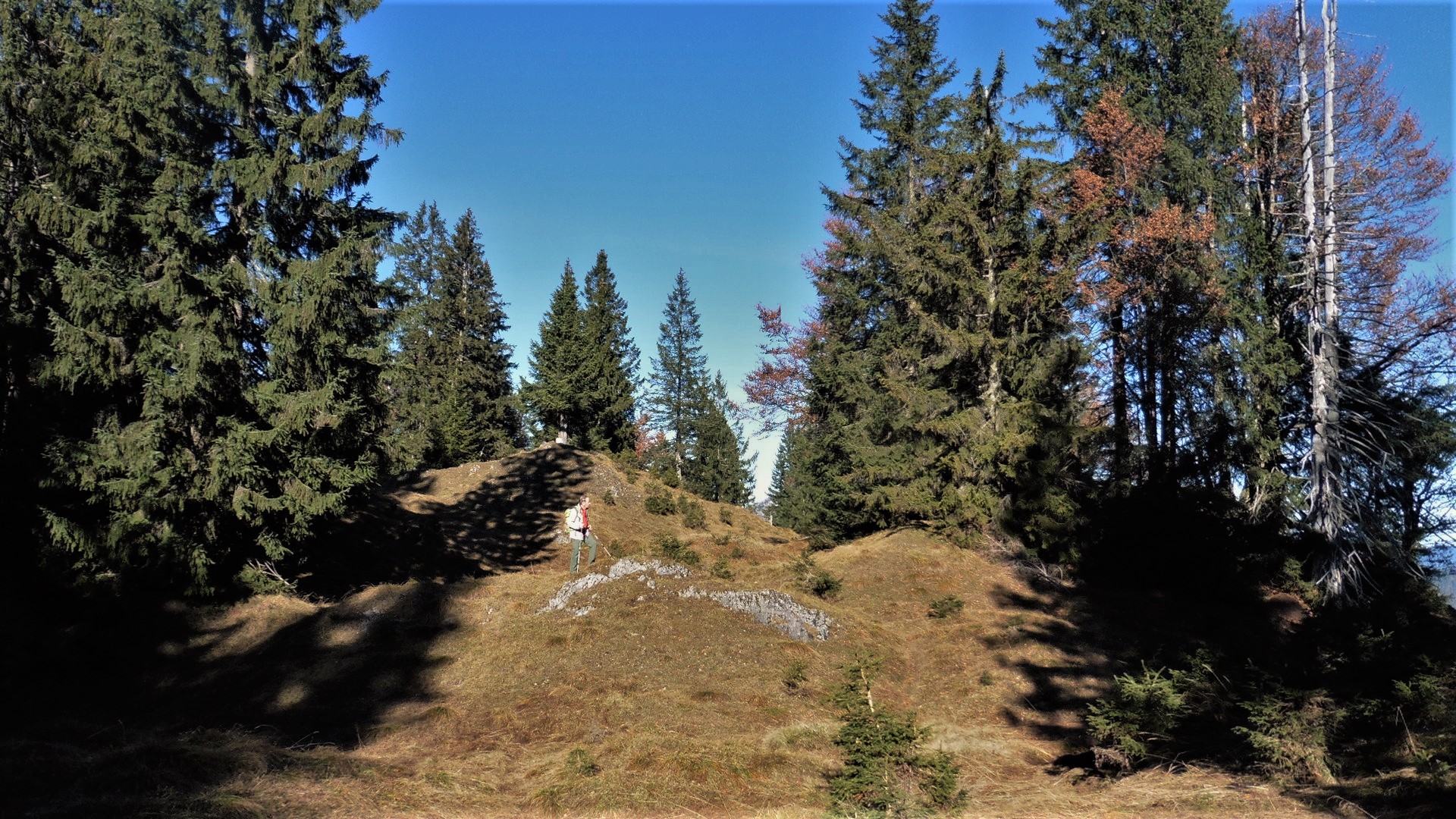 Bild 9: Rückblick zum Gipfel - die bewaldete Kuppe in der Bildmitte;