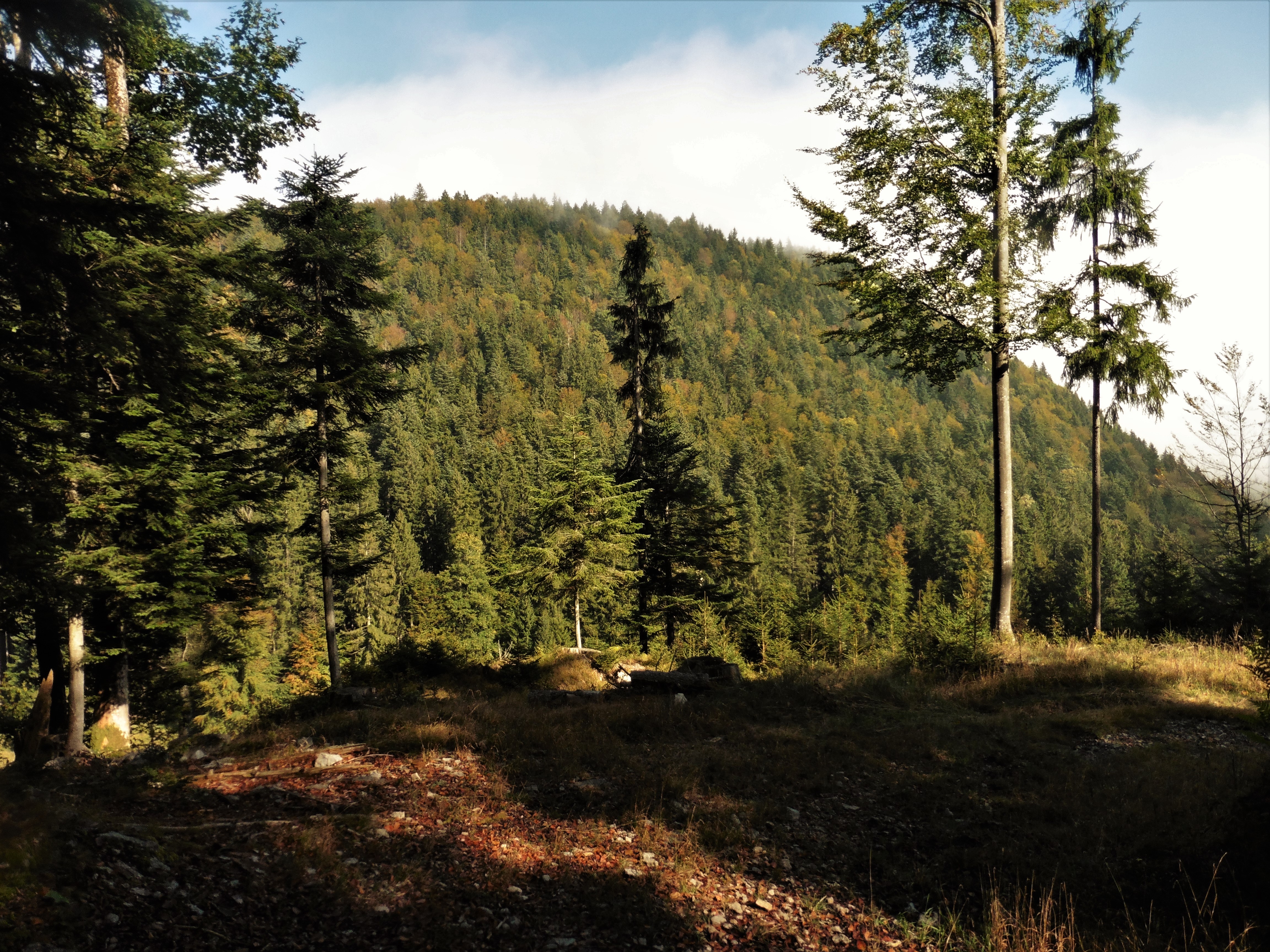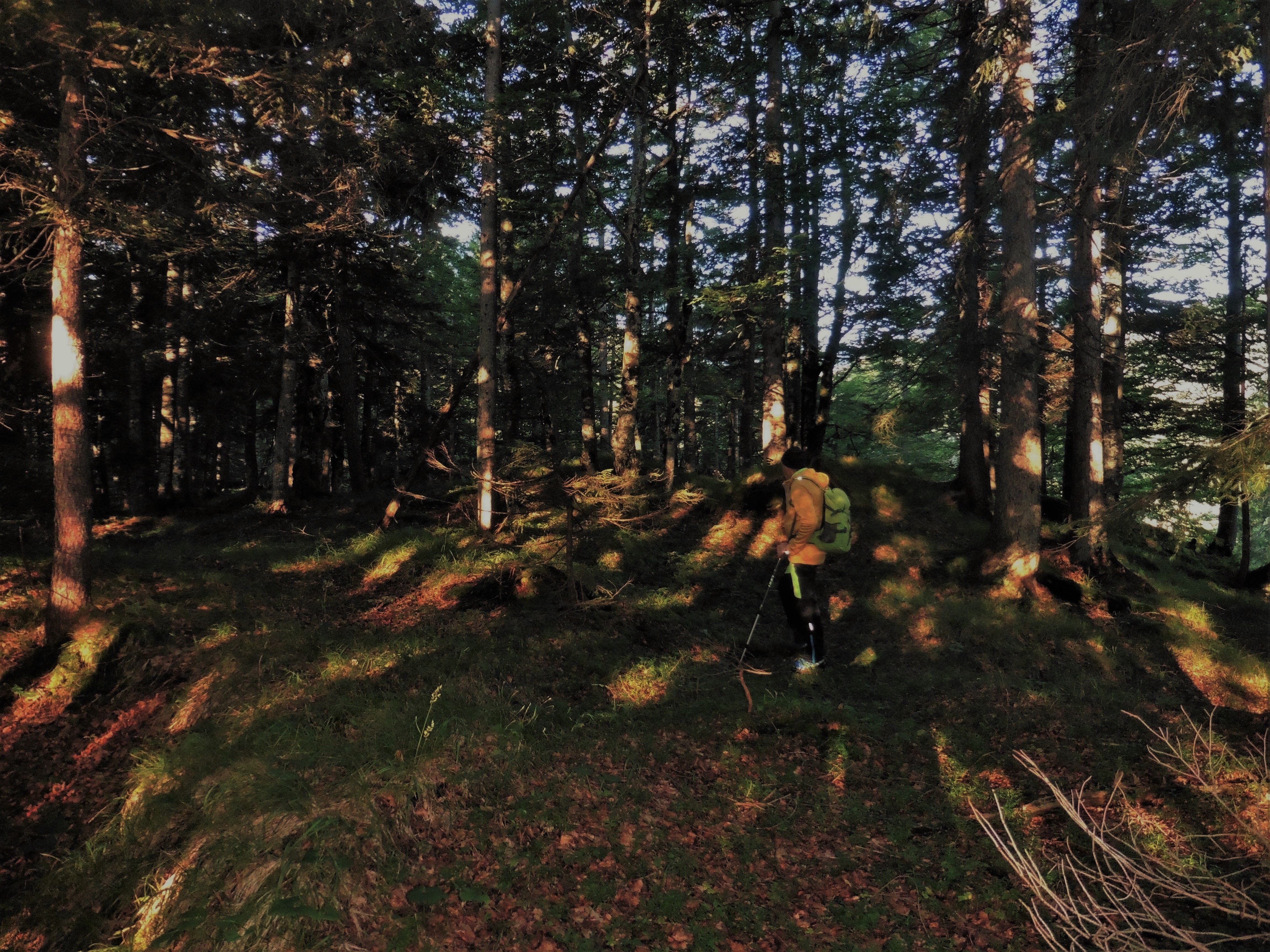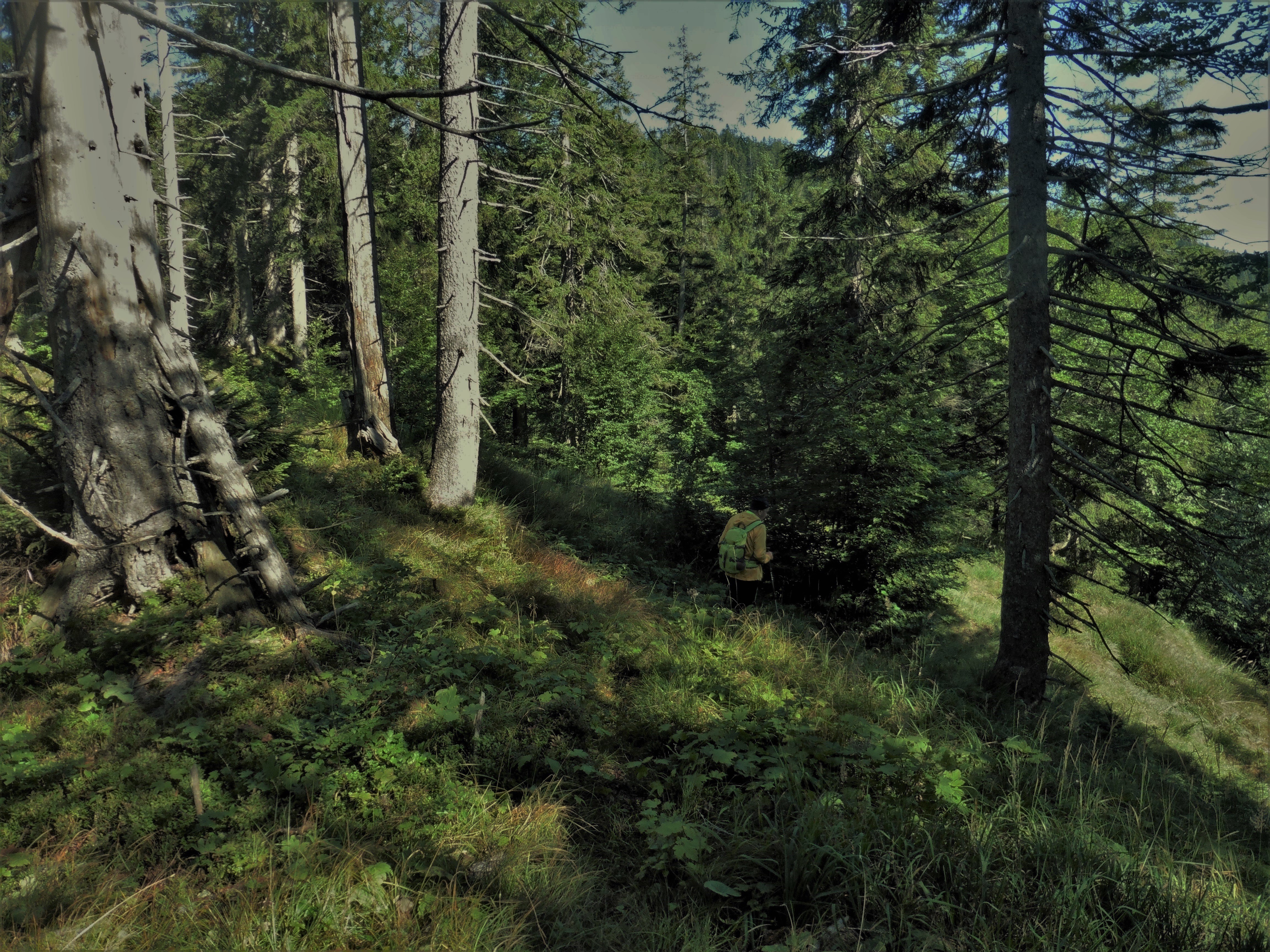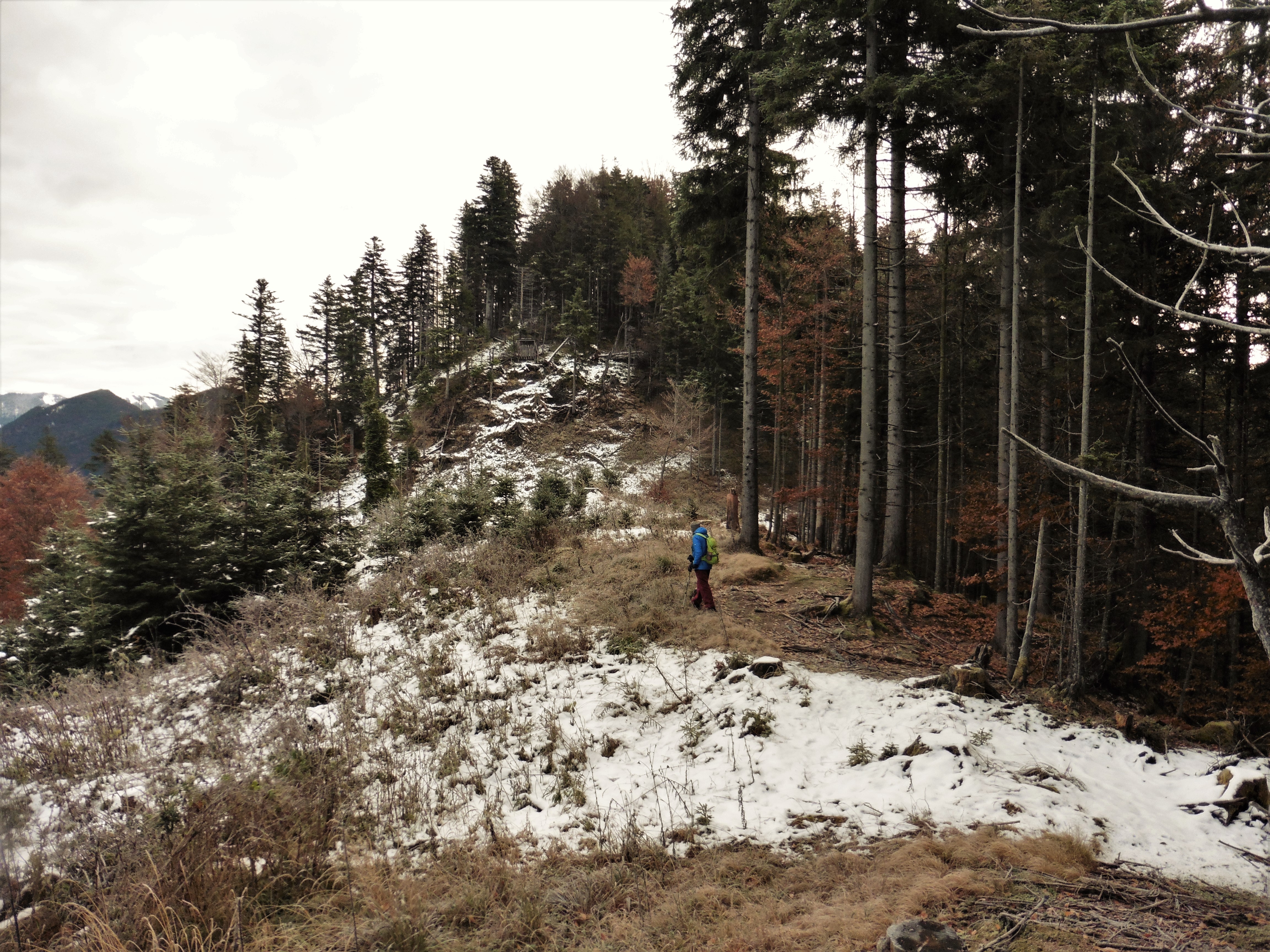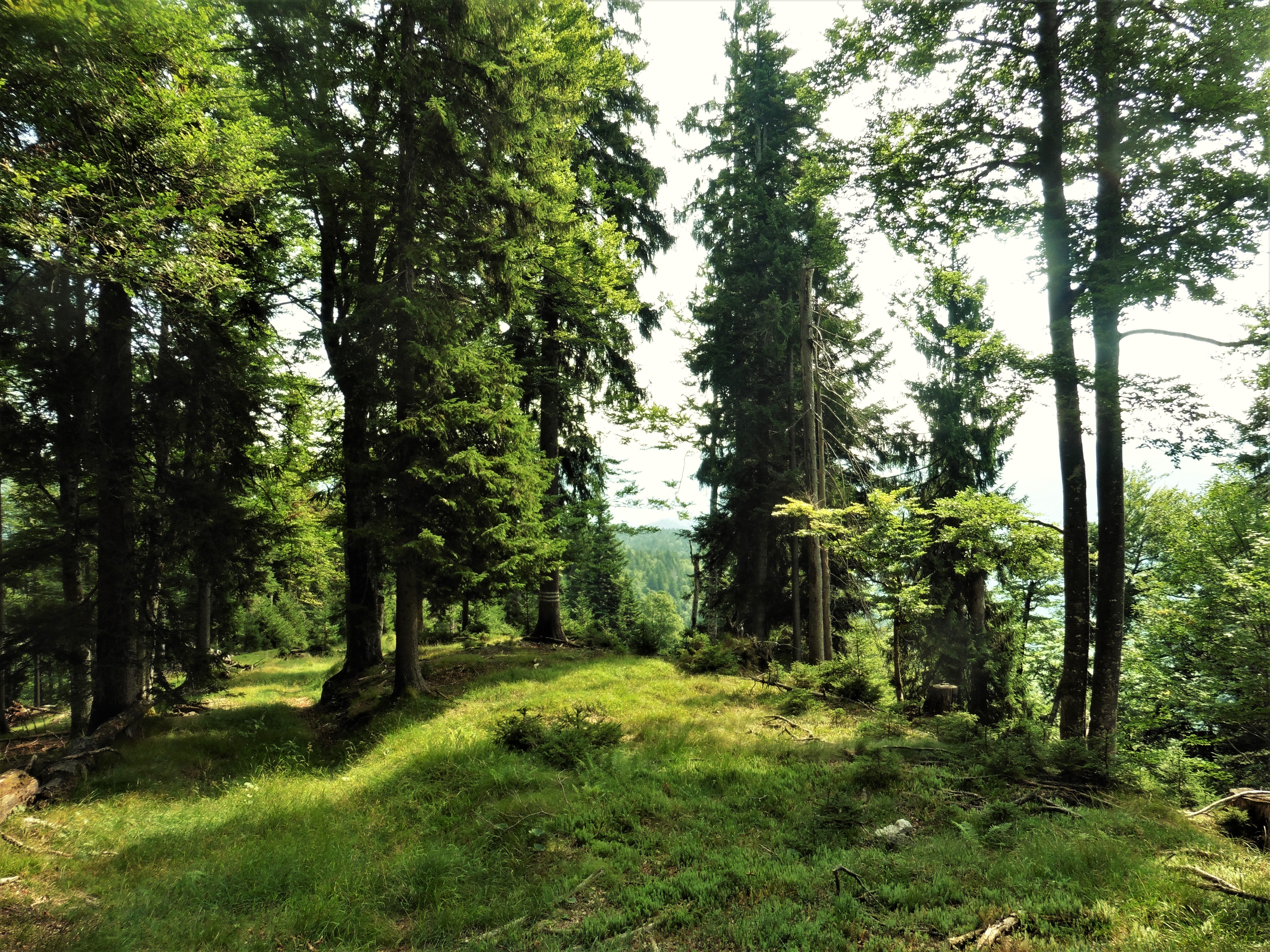 Bild 9: Rückblick zum Gipfel - die bewaldete Kuppe in der Bildmitte;