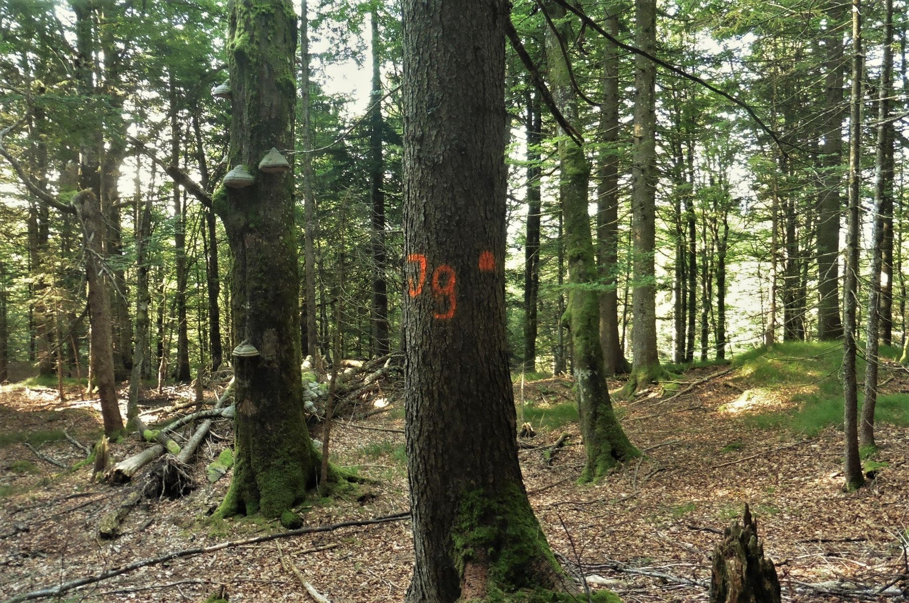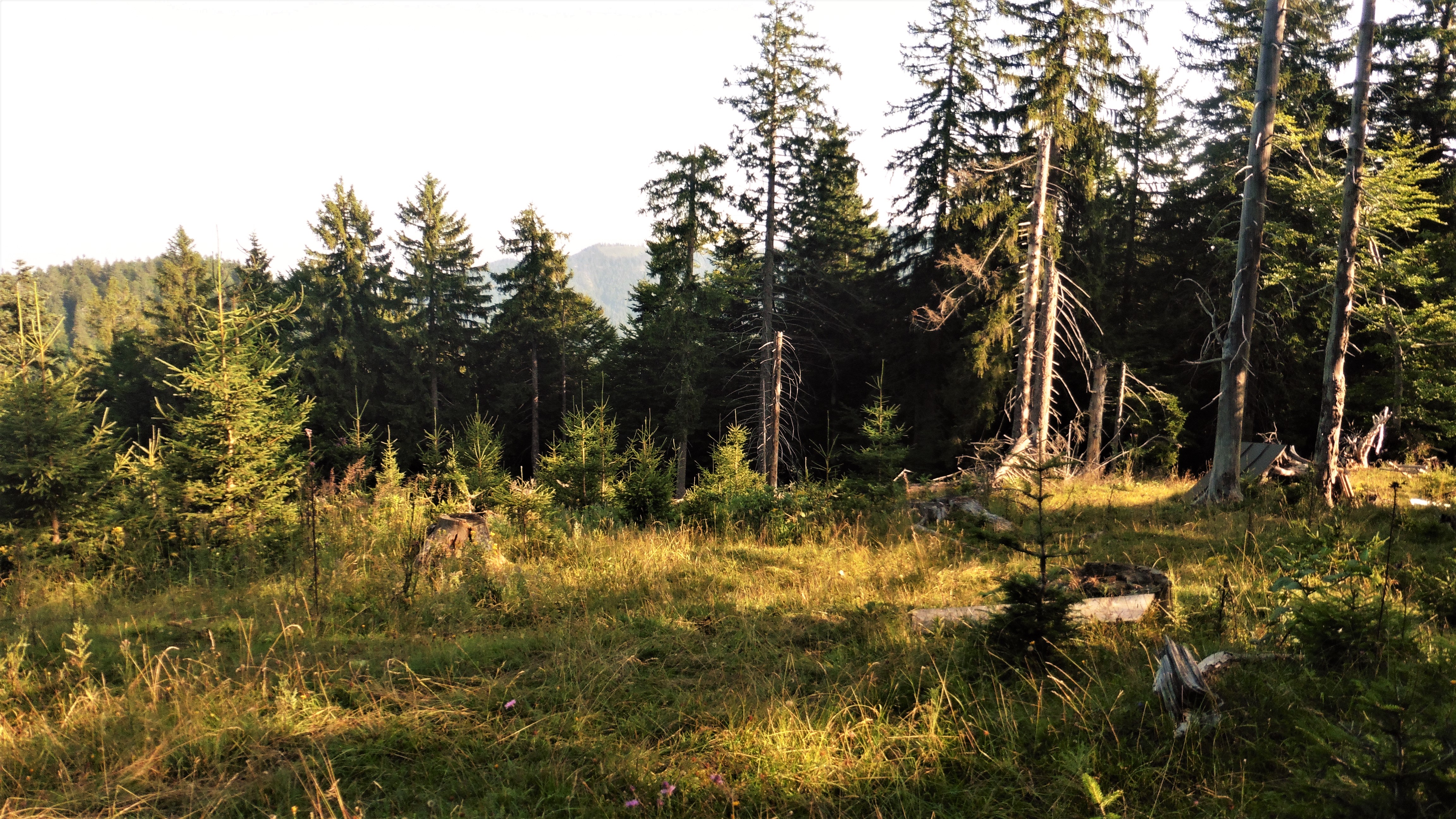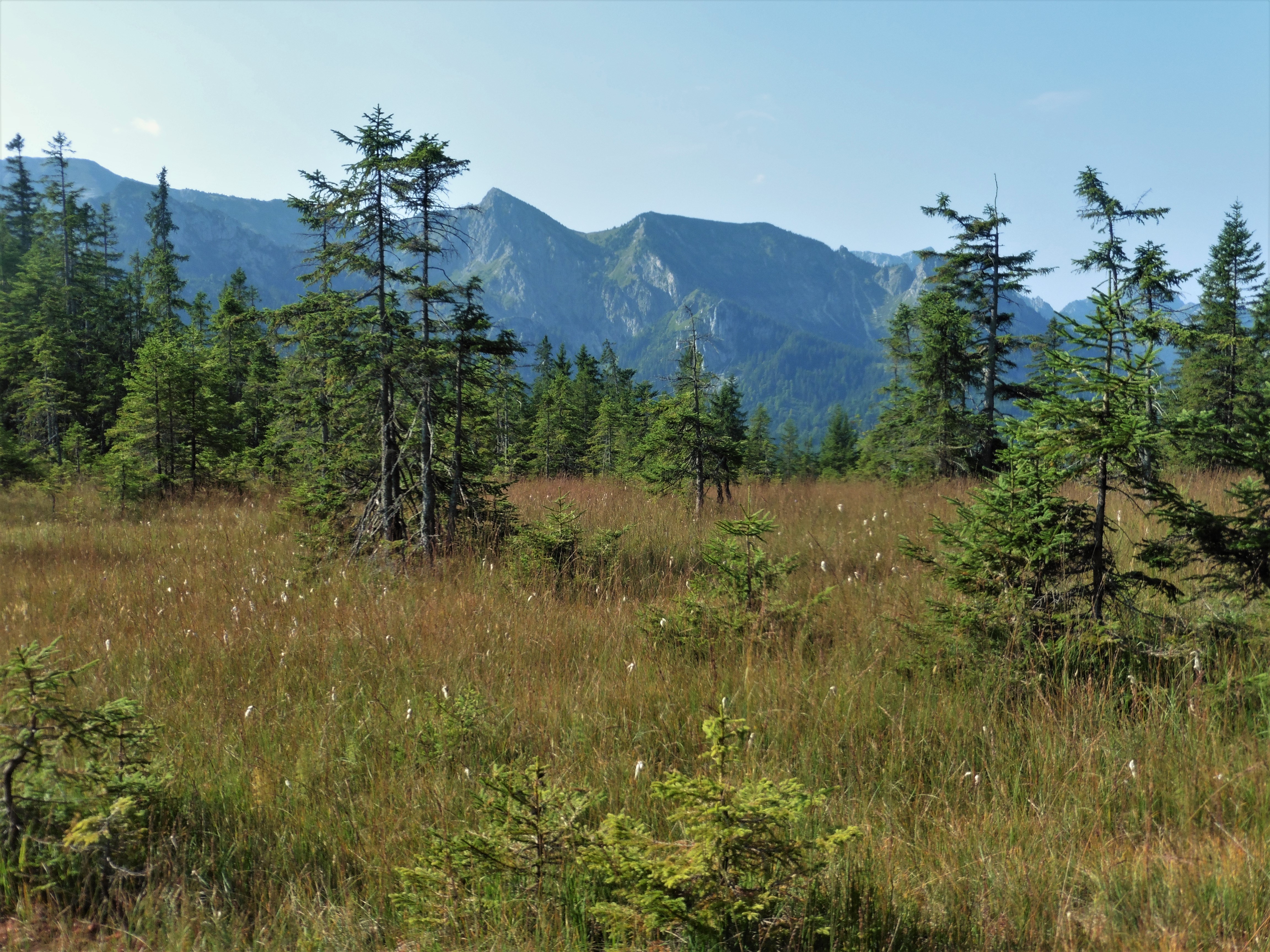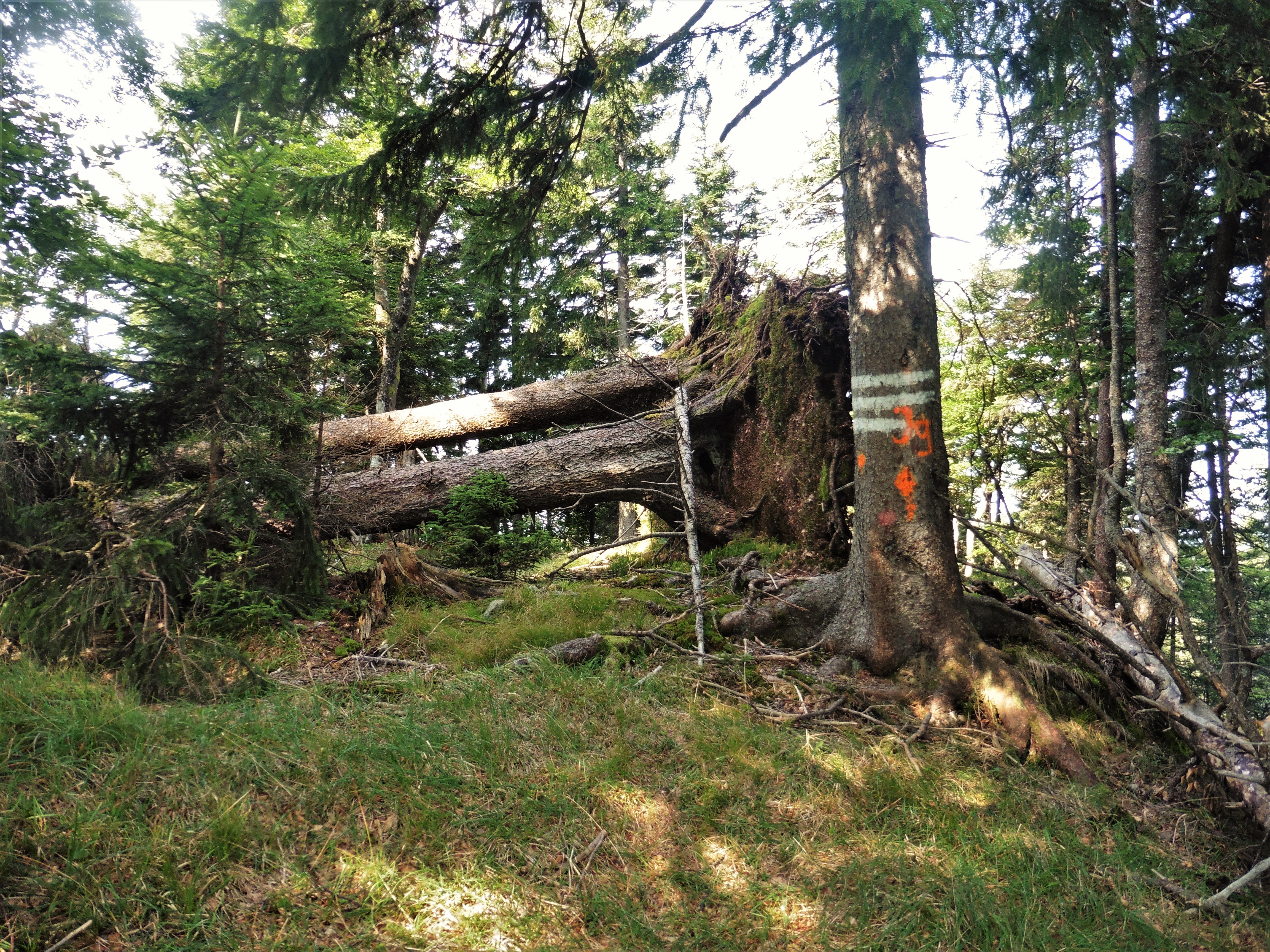 Bild 9: Rückblick zum Gipfel - die bewaldete Kuppe in der Bildmitte;