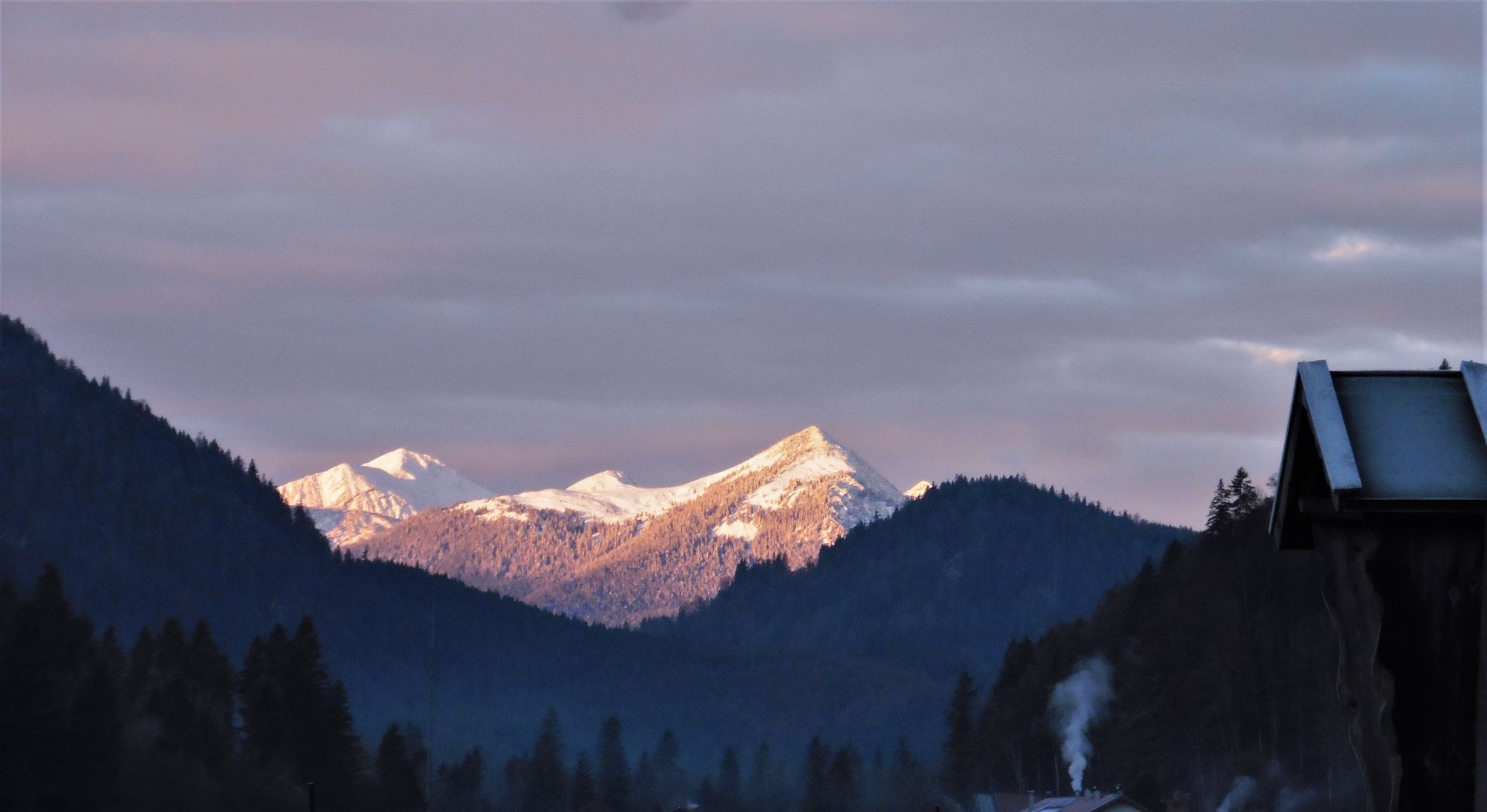 Bild 1: Sonnenaufgang über dem Torjoch und Stierjoch;