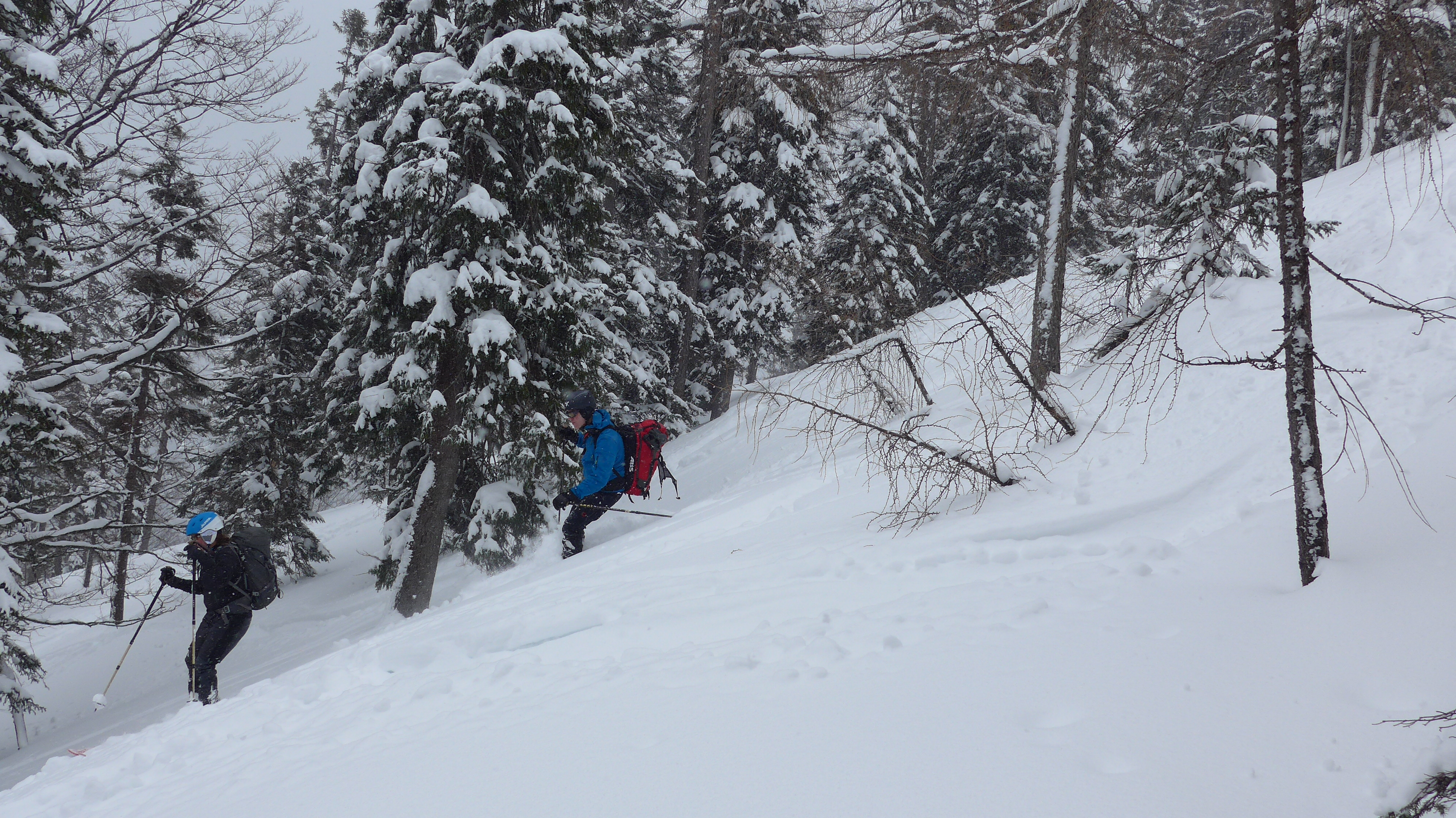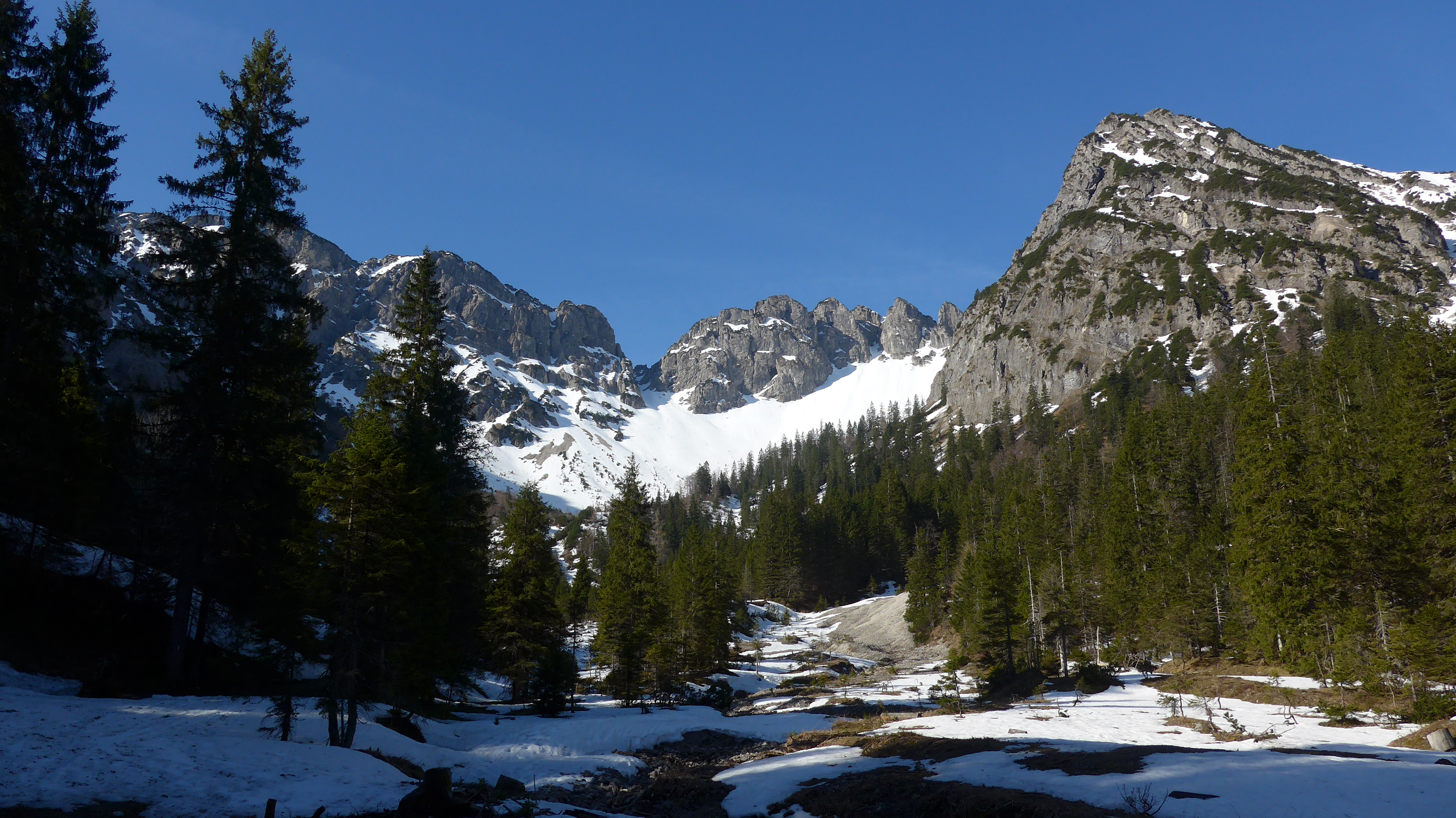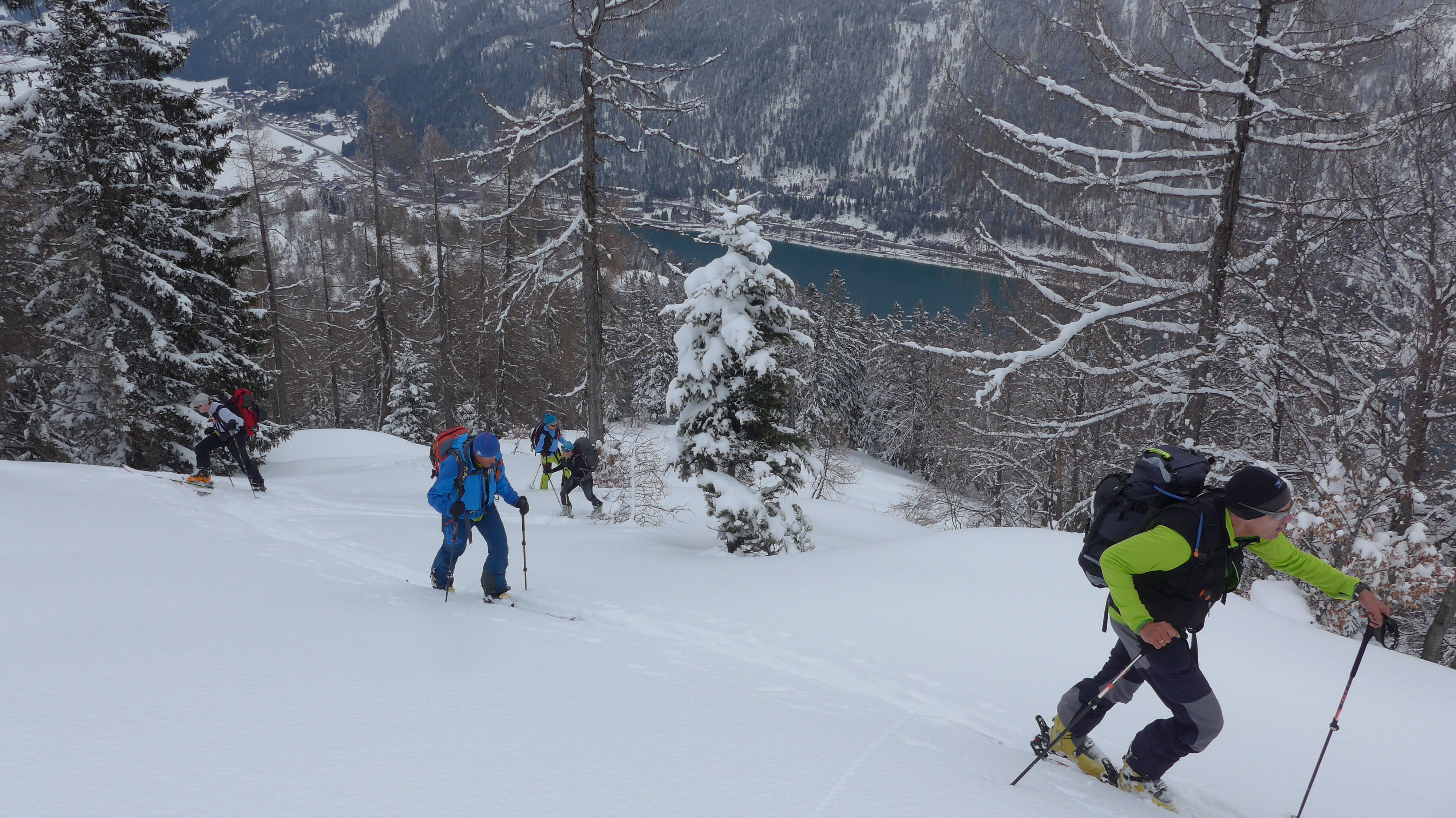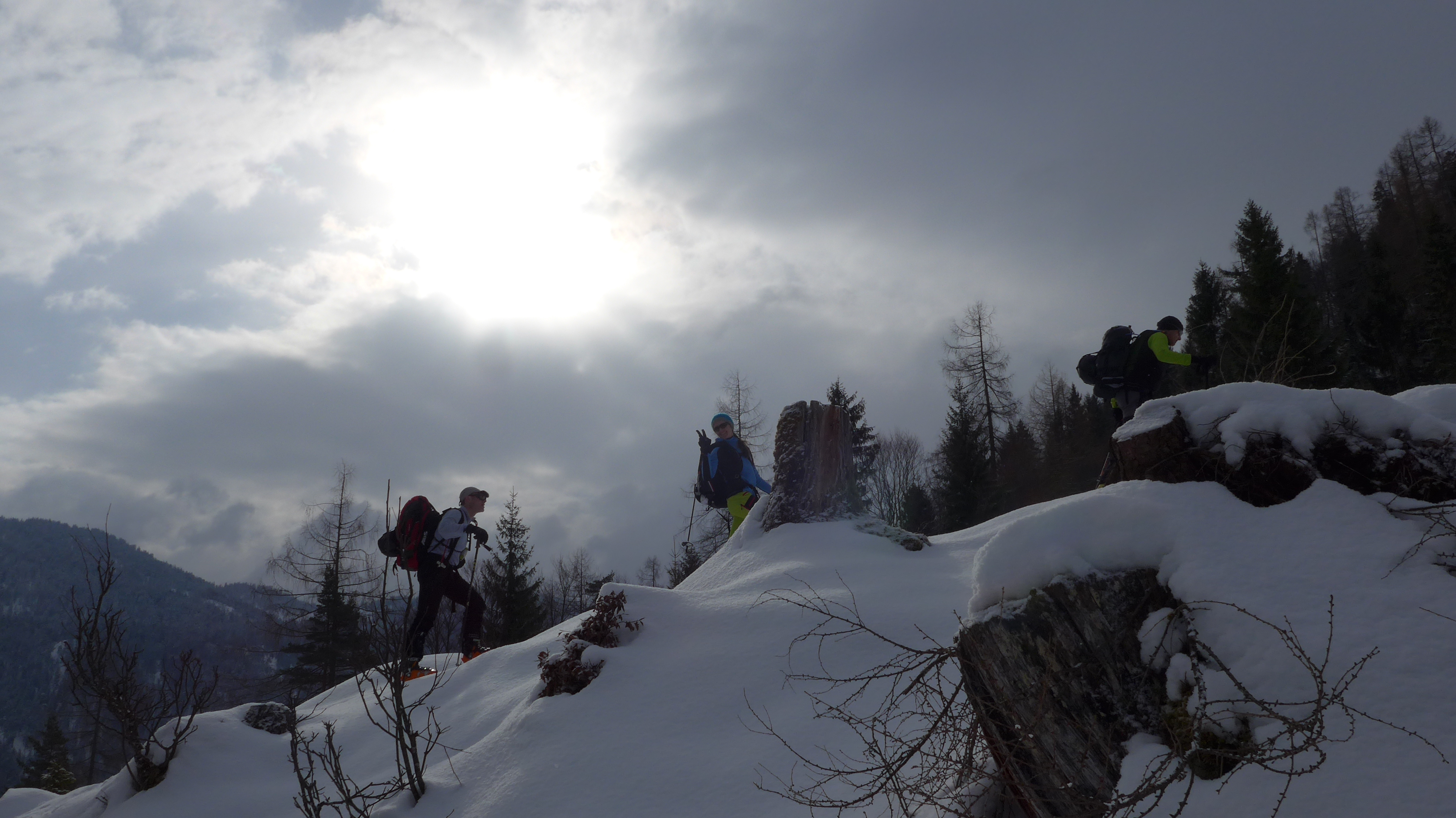 Hier haben wir uns die eigentliche Etappe zur Salbithütte (im Winter Selbstversorger) erspart, weil 1 Stunde Abstieg + 1 Std. Essen kaufen + 1,5 h Ski tragen (aperer Süd Waldhang) uns dann doch unlohnend erschien.