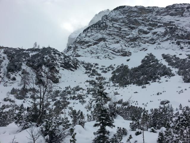 Es ist sicherlich geschickter, anfangs die Forststrasse aufzusteigen. Der direkte Weg (in AV-Karte eingezeichnet) durch den Wald ist eng, steil und akrobatisch. Zu Beginn ist die Unterlage durchfeuchtet.