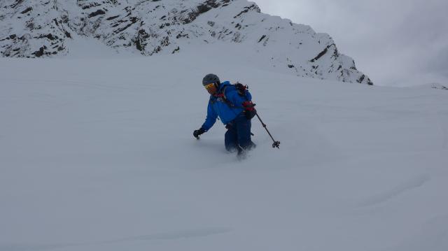 Sind auf 2200 m, wg. schlechter Sicht (20 m) umgedreht. Schneefall kam quer daher. Hier war es etwas abgeweht -Steinkontakt.