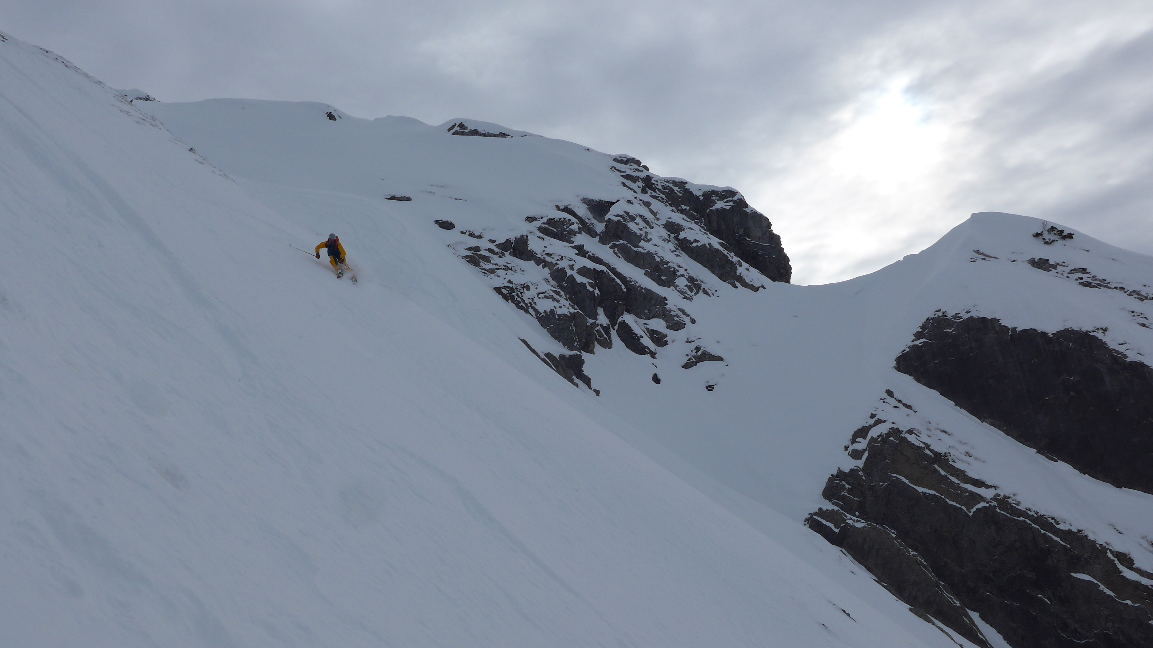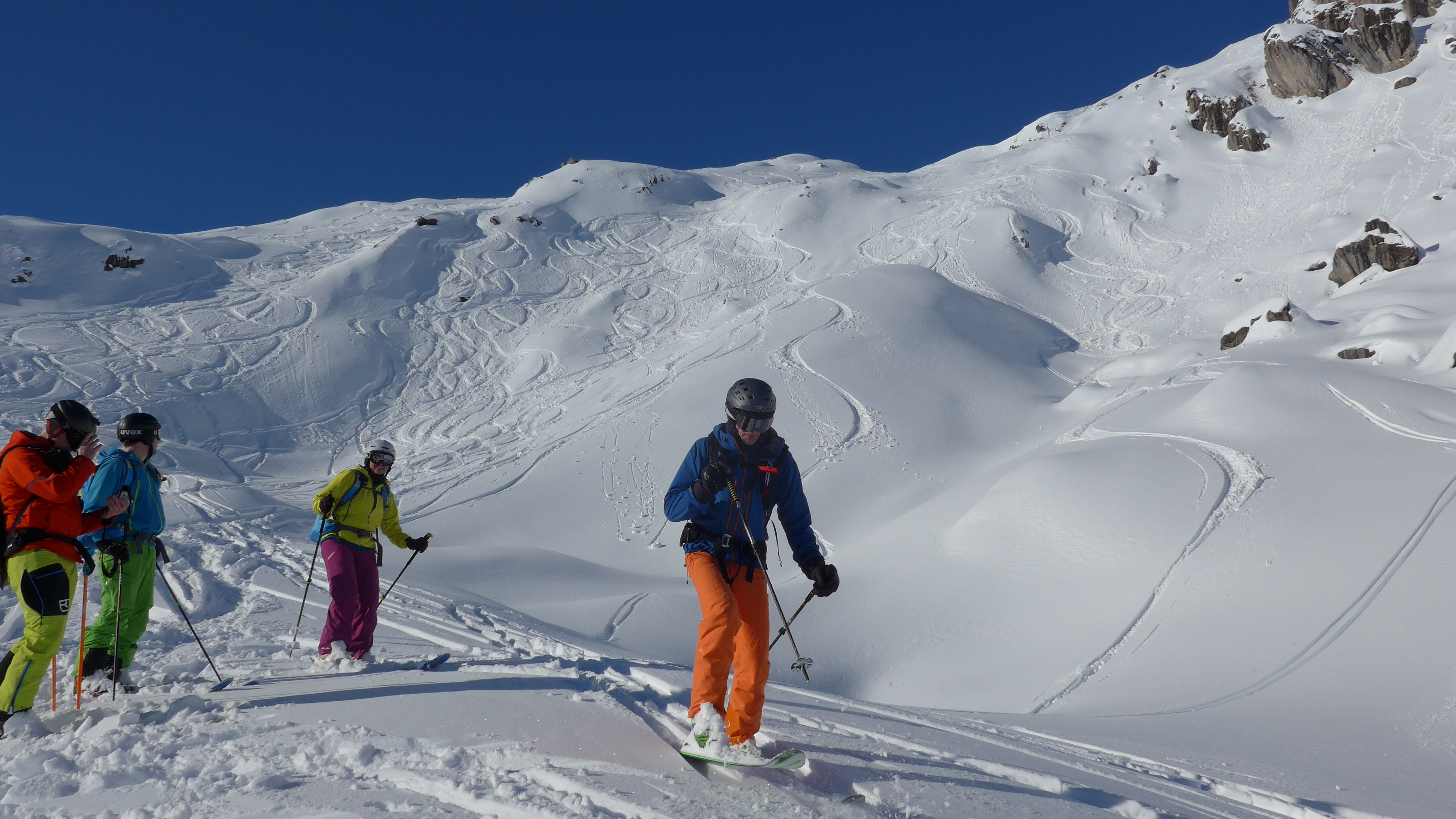Gefahreneinschätzung: Abfahrt um 12.15 Uhr - Schnee noch nicht allzu weich (10 cm aufgeweicht).