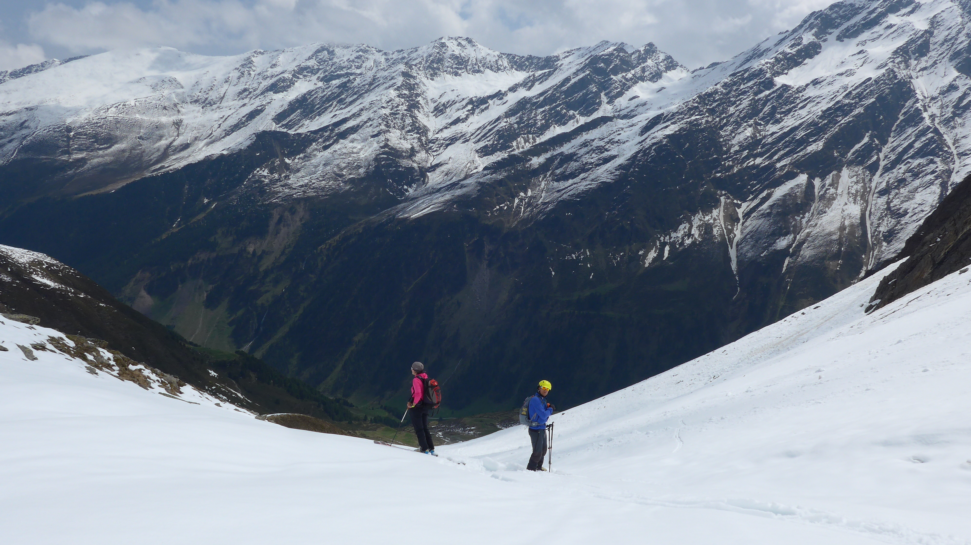 queren und die durchwegs geteerte Straße an Pratz vorbei ( nicht nach Trumsberg) bis zum Punkt 1505 m hochstrampeln. Bei 34 ° Grad sind die ca. 900 Hm am Stück eine Plackerei. Kaum Schatten.