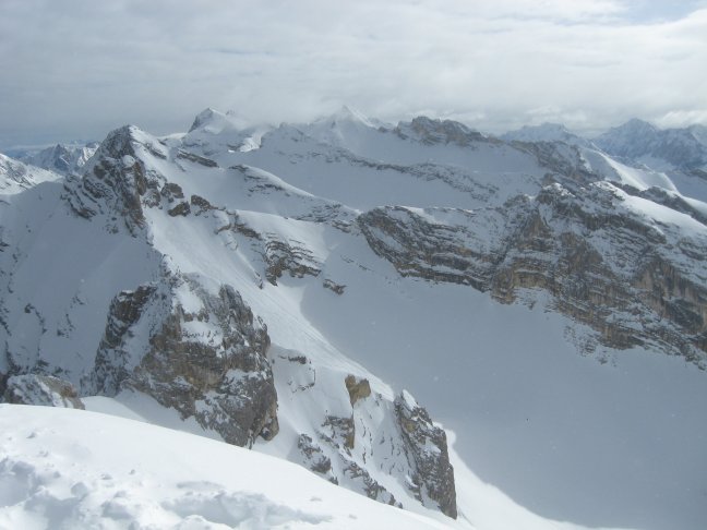 Höchster Punkt: 2569m Art der Tour: Skitour Datum der Tour: 22.03.2009 Gebirge: Karwendel Ausgangspunkt: Scharnitz Bahnhof Exposition der Tour: SW Tourenverhältnisse Aufstieg: Bis Gasthof Wiesenhof trockene Strasse. Waldweg ab hier geräumt bis zur Jagdhütte, zu Fuß oder mit Ski begehbar. Ab Jagdhaus Skispur. Mittlerweile viele Varianten, die aber höchstwahrscheinlich alle bei der Pleisenhütte enden. 07:00 Uhr: Ab Pleisenhütte Skispur bis Gipfel, aber für meinen Geschmack oft nicht optimal angelegt. Die Spur verläuft im unteren Teil zusammen mit Schneeschuhspur. Erst ab ca. Mitte Pleisengrat getrennte Spurführung. An mind. einer Stelle führt die Spur sehr nah an die ostseitige Wächten. Bei schlechter Sicht aufpassen! Im steilen Gipfelbereich sehr harter Untergrund (Harscheisen oder abschnallen). Tourenverhältnisse Abstieg/Abfahrt (10:00 Uhr): Im oberen Bereich Untergrund fest + ca. 15 cm. pulvrige Auflage. Im mittleren Bereich wechselhafte Schnee-Verhältnisse im Bereich innerhalb weniger Meter aber meißt gut. Einfahrt vom Grat ins vordere Pleisenkar mit sehr viel Schnee! super zu fahren. Bis zur Pleisenhütte öfters auch harschig. Abfahrt ab Pleisenhütte z.T. sehr eng und stark abgefahren. Wegen dem vielen Schnee können die Waldschneisen aber gut befahren werden. Waldweg ab Jagdhütte weit runter gut fahrbar. Das letzte Dritttel bis Gasthof Wiesenhof aber nur noch mit viel Motivation. Gefahreneinschätzung: Lawinenwarnstufe *2* lt. http://www.lawine.at/tirol/ am 22.03.2009 Prognose: Optisch "unverspurtes" Gelände an der Pleisenspitze wird knapp werden, bis es wieder ordentlich draufschneit. Die Abfahrt von der Hütte ins Tal war eh schon recht "wild". Mit kurzen Ski ;-) und flinken Beinen und Freude am "pflügen" lässt sich aber noch eine Weile Spass an der Abfahrt haben weil viel Schnee liegt. Sonstiges: Eine frische Spur führt auch an die Larchetkarspitze Bilder zur Tour: