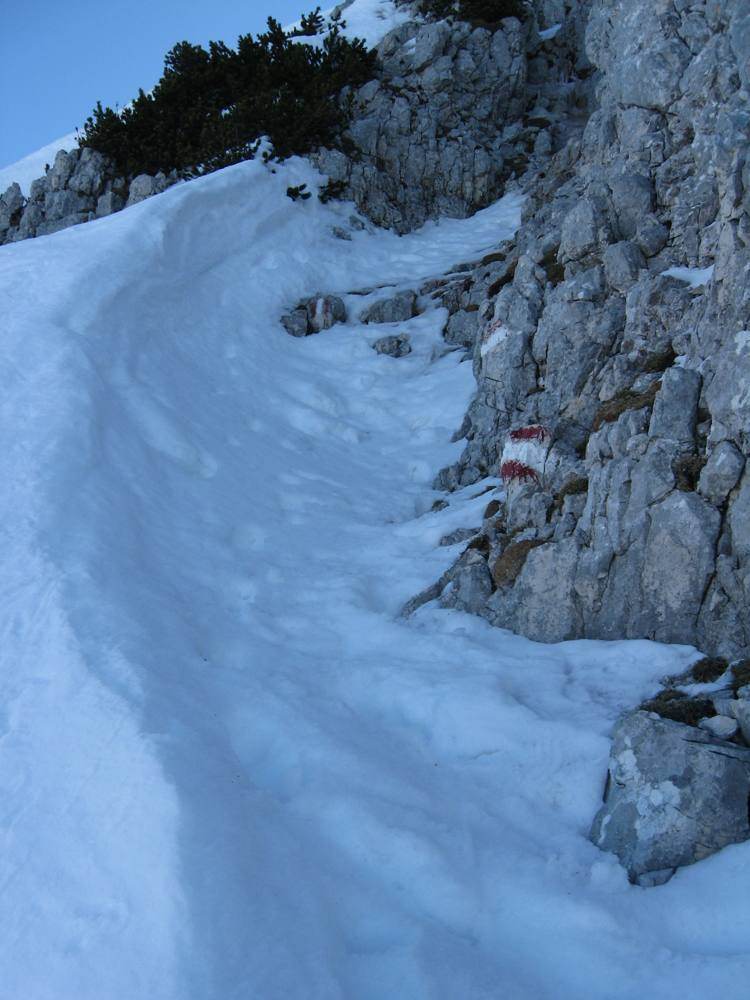 • Der Steig ist an den meißten "kritischen" Stellen (Querung durch Gräben) mit Drahtseil gesichert. Es gibt jedoch mindestens eine Stelle wo der Steig frisch abgerutscht ist und im Moment Absturzgefahr herrscht.