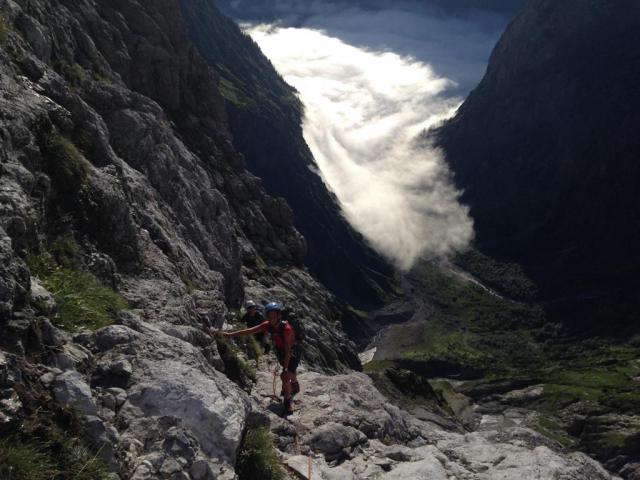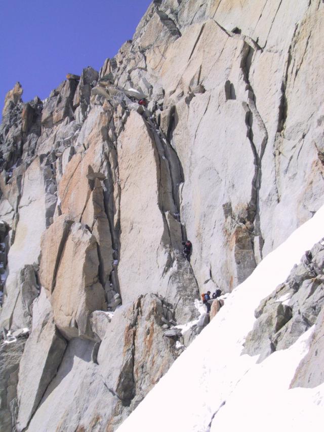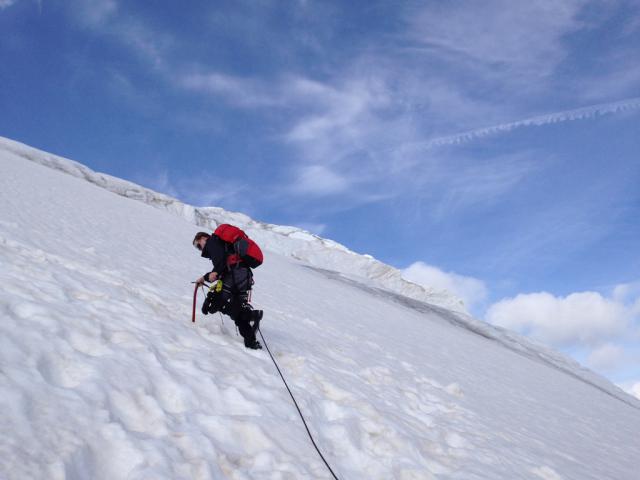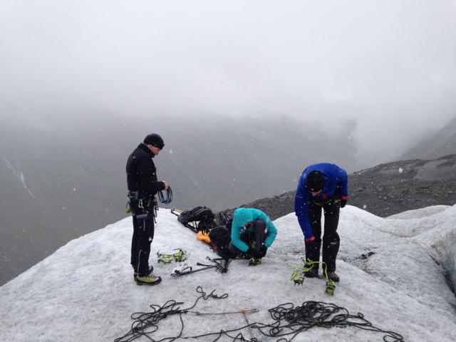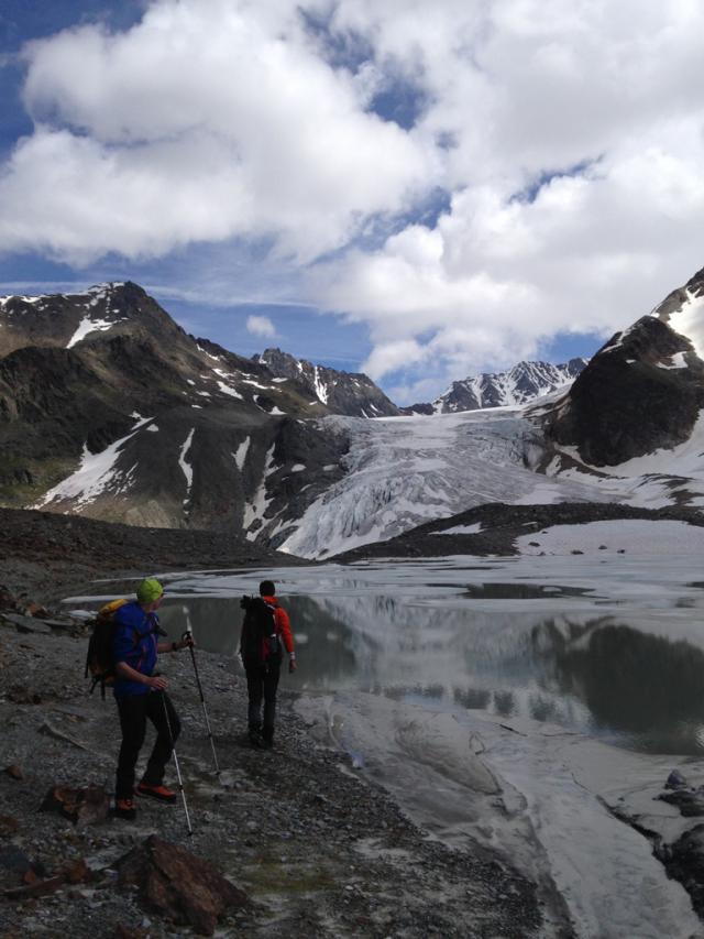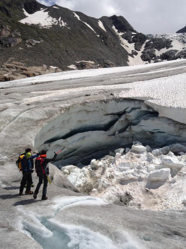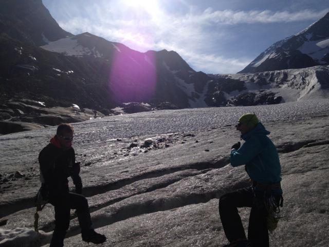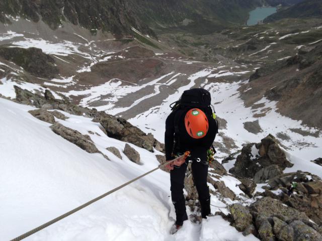 Auch die in den letzten Jahren vom Gletscher frei gegebenen Felsteile, die nun Schneefrei sind, werden um diese Jahreszeit immer unangenehmer zu begehen und sind zudem meist ebenso Steinschlag gefährdet.