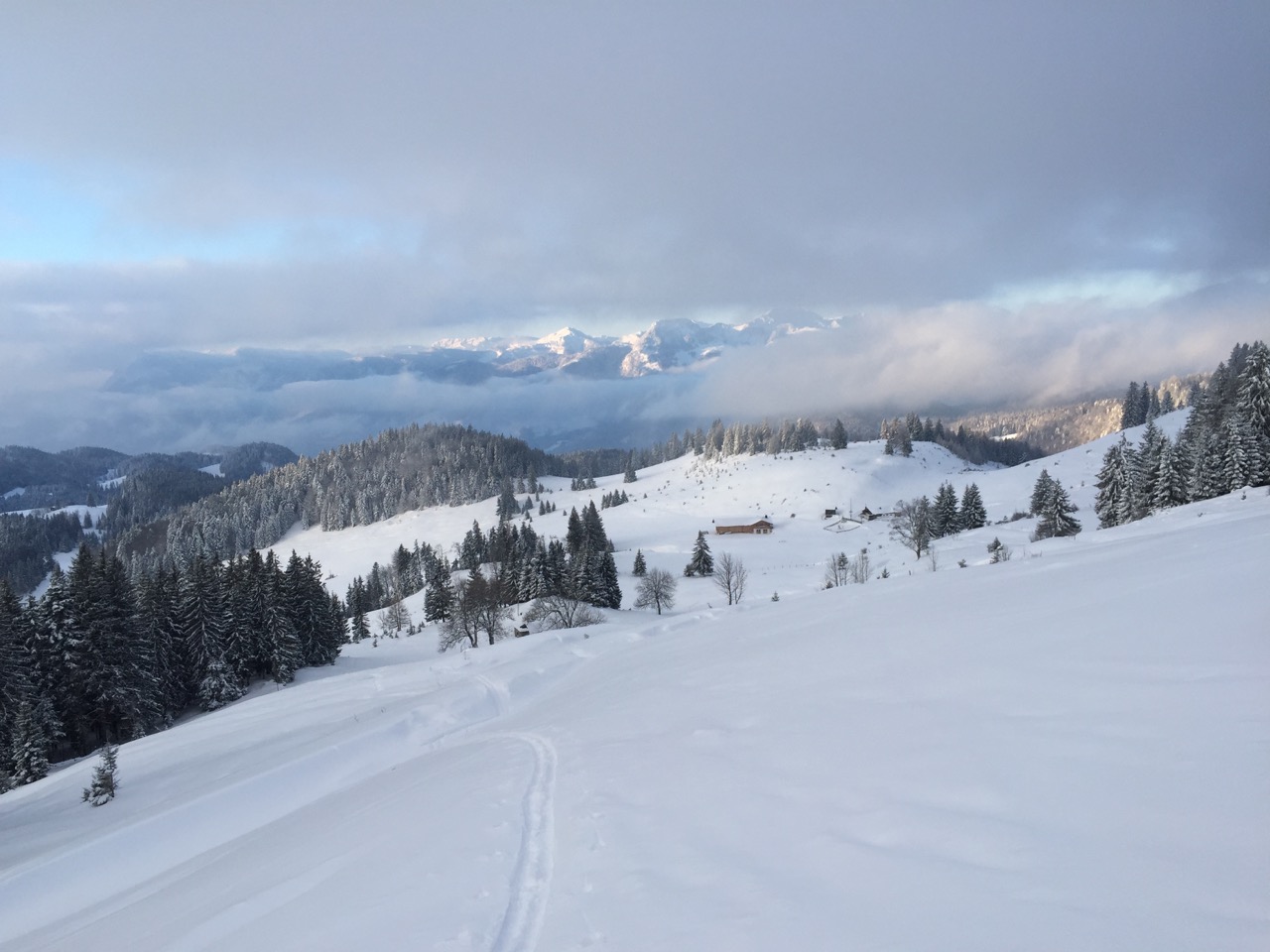 Tourenverhältnisse: Nachdem der Parkplatz an der Lederstube um 10 Uhr schon mehr als voll war habe ich mich statt Laubenstein/Aberg kurzfristig umentschieden und bin nach Soilach gefahren. Von dort dann über die WInterstube Richtung Paradies. Nachdem der Nordhang der Riesen mich schon sehr angelacht hat habe ich entsprechend mein Ziel geändert. War sicher auch eine gute Entscheidung weil fast alle anderen Tourengeher Richtung Laubenstein und Aberg gespurt sind. Die Spur zum östlichen Bereich des Riesenbergs war ganz gut angelegt aber teilweise schon etwas glatt. Der Schnee dort in der Südseite hat schon einen ziemlichen Stich und es war bei weitem nicht mehr so kalt wie im Tal. Die ersten Meter der Abfahrt gehen etwas 50 meter durch ein Waldstück. Generell ist die Nordabfahrt insgesamt schon eher steil und auch anspruchsvoller. Die Bedingungen waren aber echt Top. 40cm Pulver und darunter auch schon gesetzter Schnee. Dadurch auch kein Feindkontakt. Der Hang hatte auch noch Platz für eigene Spuren somit also ein absoluter Traumtag.