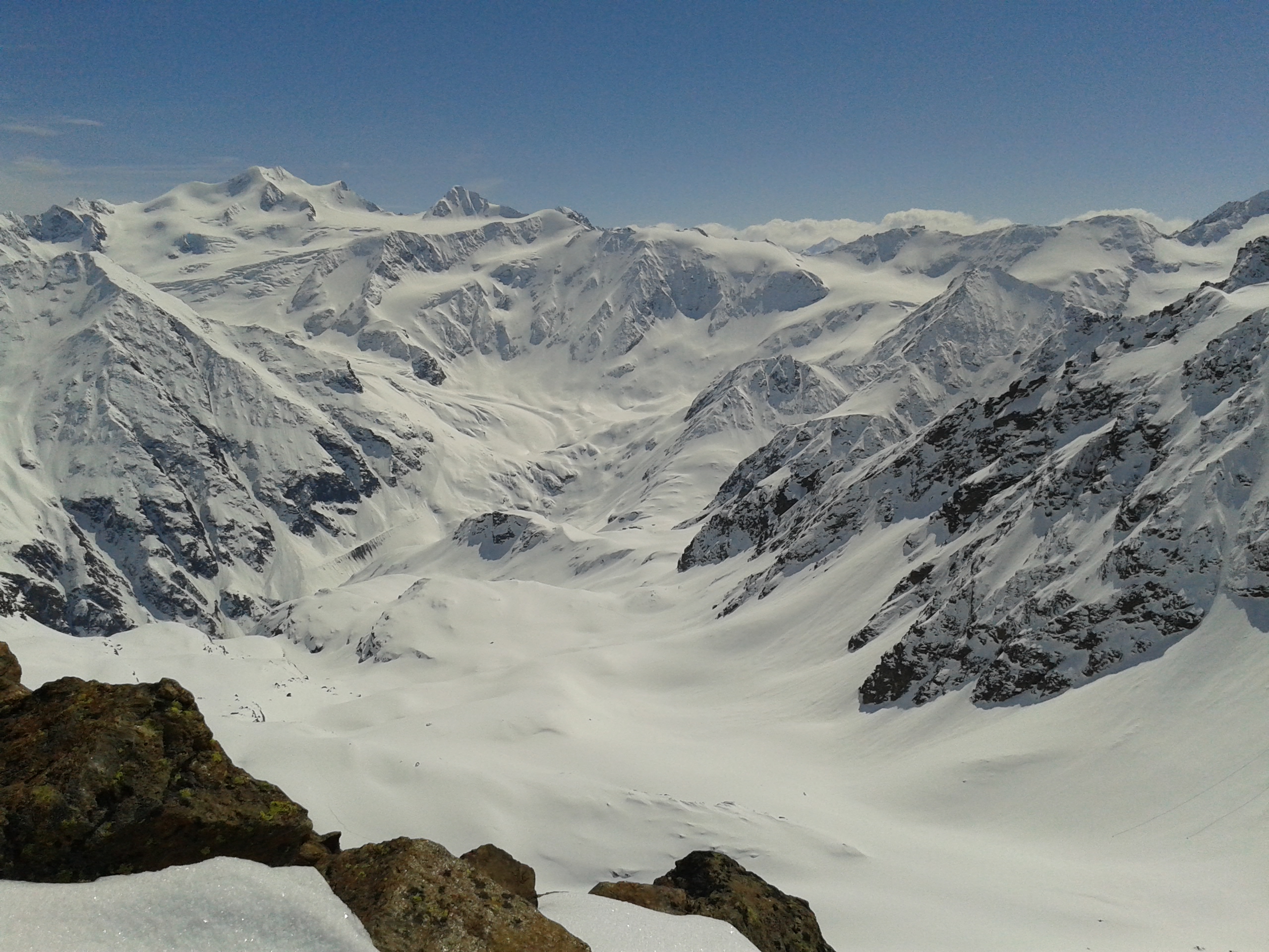 Perfekt! Sonnenschein, aber noch ausreichend kühl am Vormittag. Die Route geht mehr oder weniger steil bis zum Riffelferner. Die eh wenigen Spalten sind gut verschneit, werden aber in einem großen Bogen rechts und links umgangen. Der letzte Aufschwung zum Gipfelgrat zieht sich etwas. Der Grat zum Gipfel ist kurz und nicht schwer. Die ehem. Biwakschachtel bietet einen schönen Rastplatz. Bei der Abfahrt hatten wir beinahe Traumpulver, besonders auf dem Ferner. Weiter unten war es schon recht verspurt, aber immer noch toll. Als Zeitpunkt für die Abfahrt ist 13:00-13:30 Uhr noch gut, ab dann wirds unten schwerer.