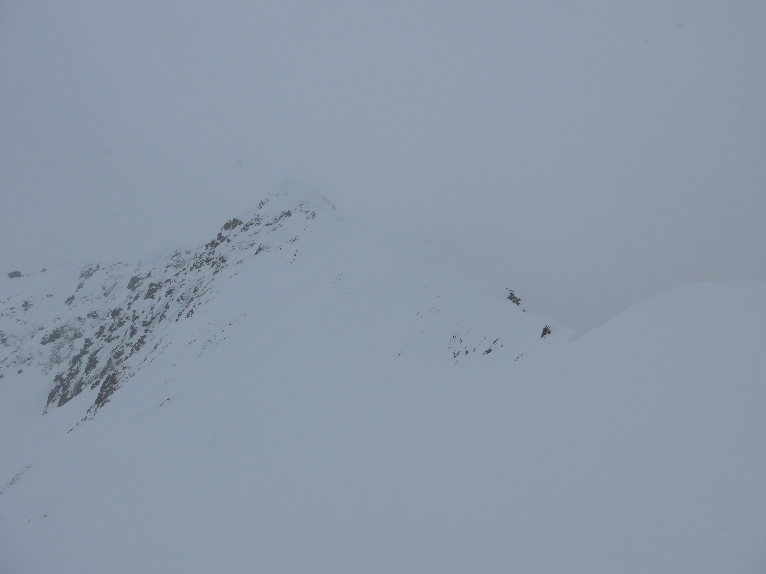 Gefahreneinschätzung: Die Verhältnisse bestätigten Stufe 2 gem. LLB: In kammnahen Bereichen mäßige Lawinengefahr durch Triebschnee im Wechsel mit geringer Schneeauflage. Bei einigen steileren, stark eingewehten Hangbereichen würde ich die Gefahr partiell höher einschätzen. Dies war neben der ungünstigen Witterung / schlechter Sicht auch der Grund, warum wir den ursprünglich geplanten Rietzer Grießkogel nicht gemacht haben.