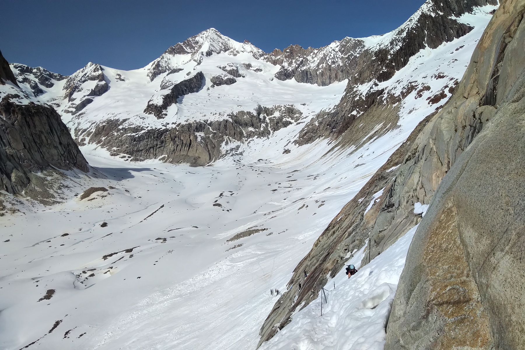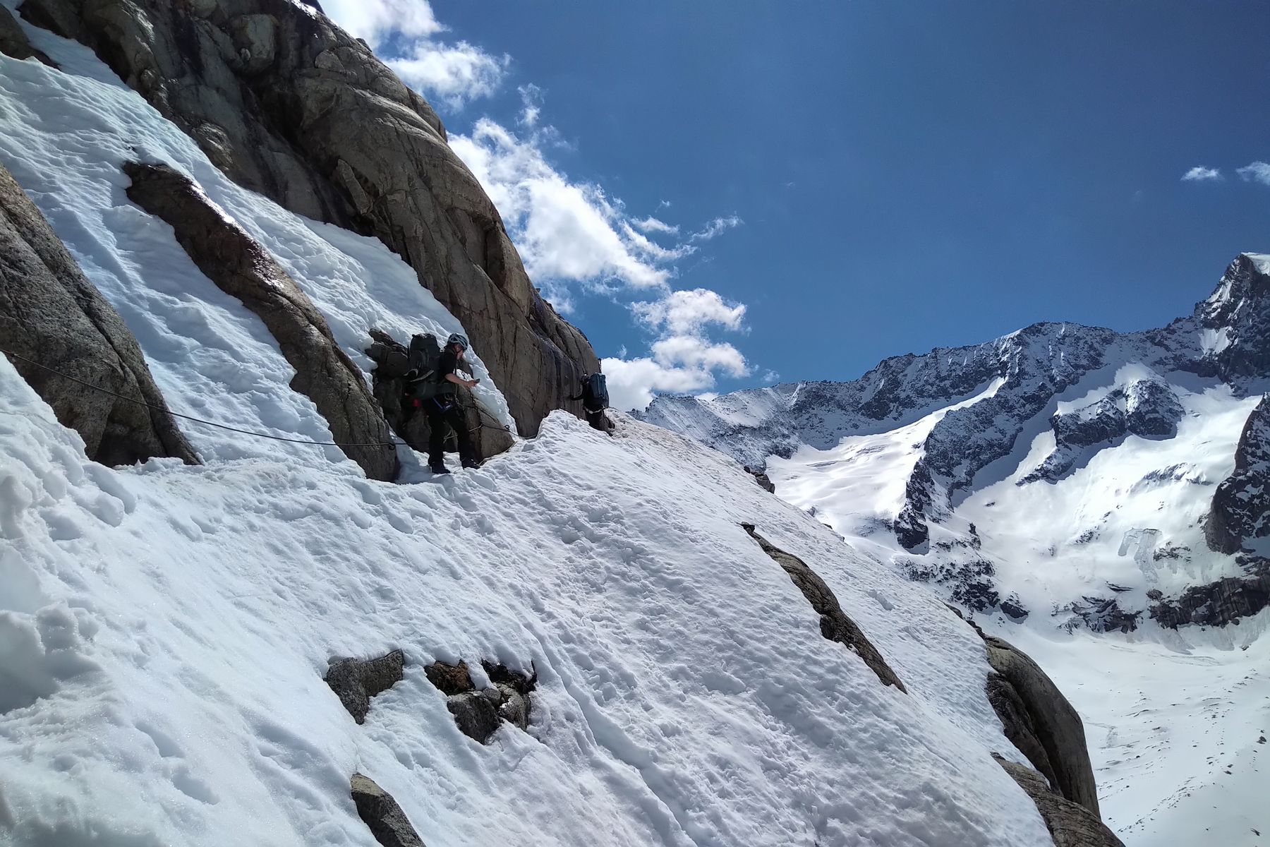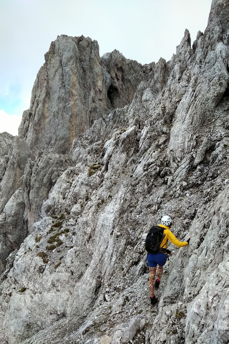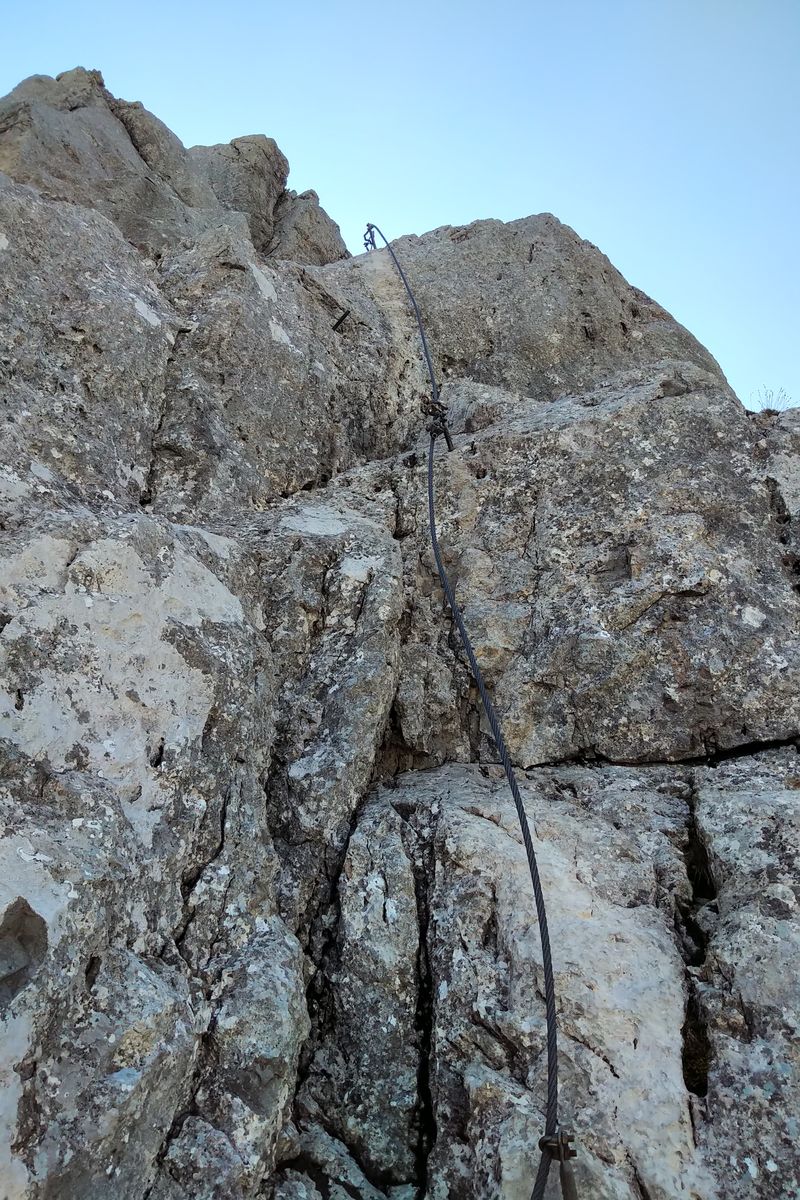 Tag 3: Vor dem Übergang zur Verónica-Biwakschachtel (Horcaos Rojos) wird oft gewarnt, aber das ist hauptsächlich an die Wanderer gerichtet. Dort ist die Warnung auch berechtigt. Die Sicherungen am Übergang waren beschädigt und wurden abgebaut. Jetzt muss man die Steilflanke ohne versichterte Stellen überwinden, aber für geübte Bergsteiger ist das gut machbar (Kraxelei bis SG 2).