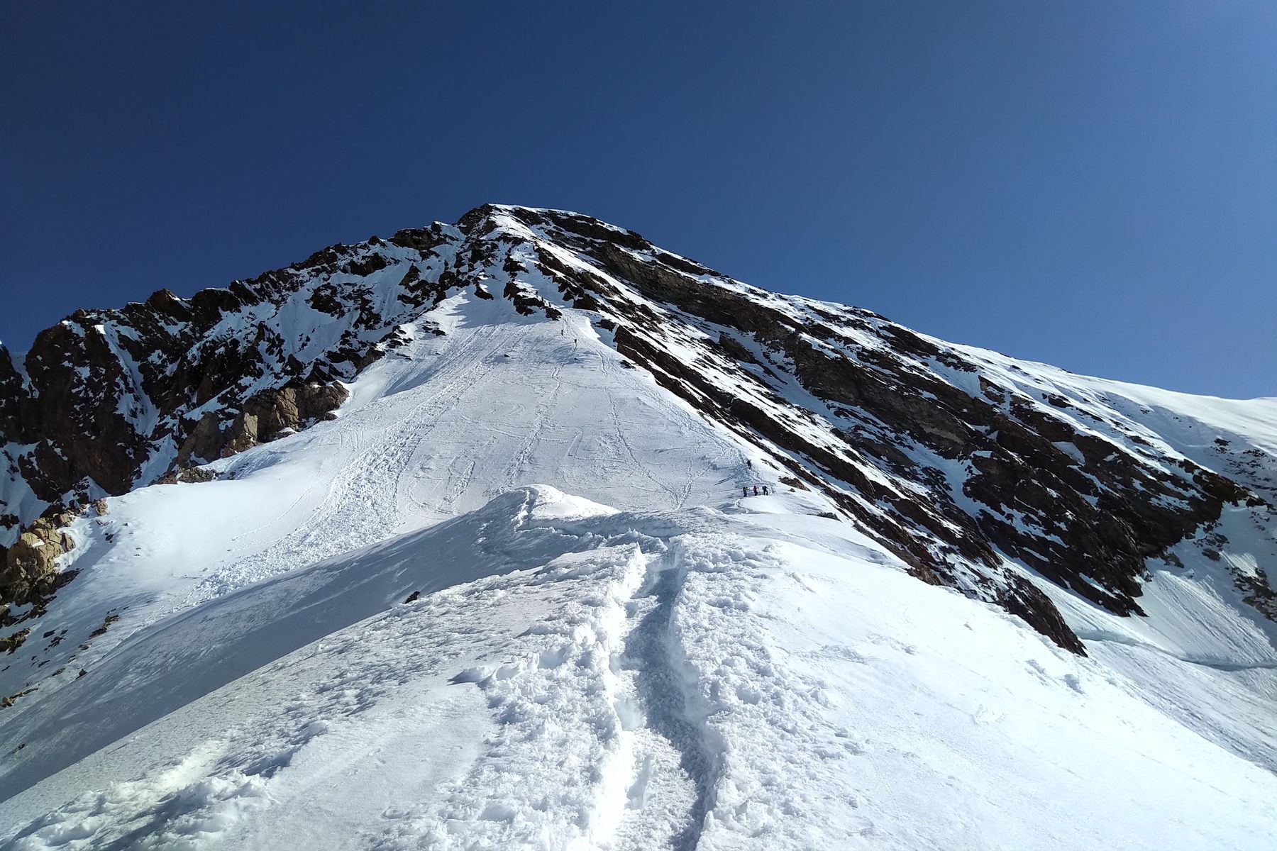 Nahaufnahme vom Torreceredo-Gipfelbereich 2 Tage später. Mitte rechts sieht man noch 2 Personen im Aufstieg:
